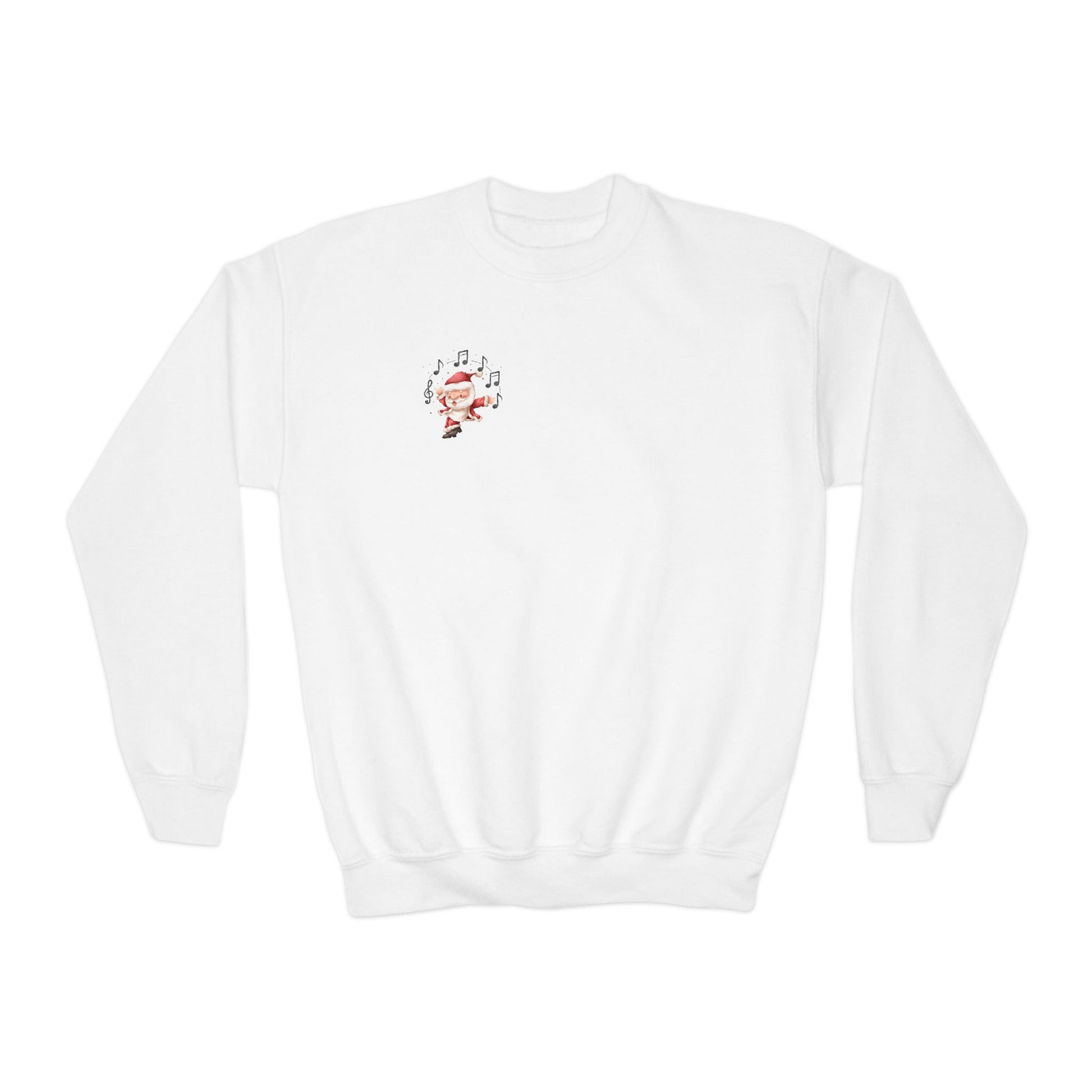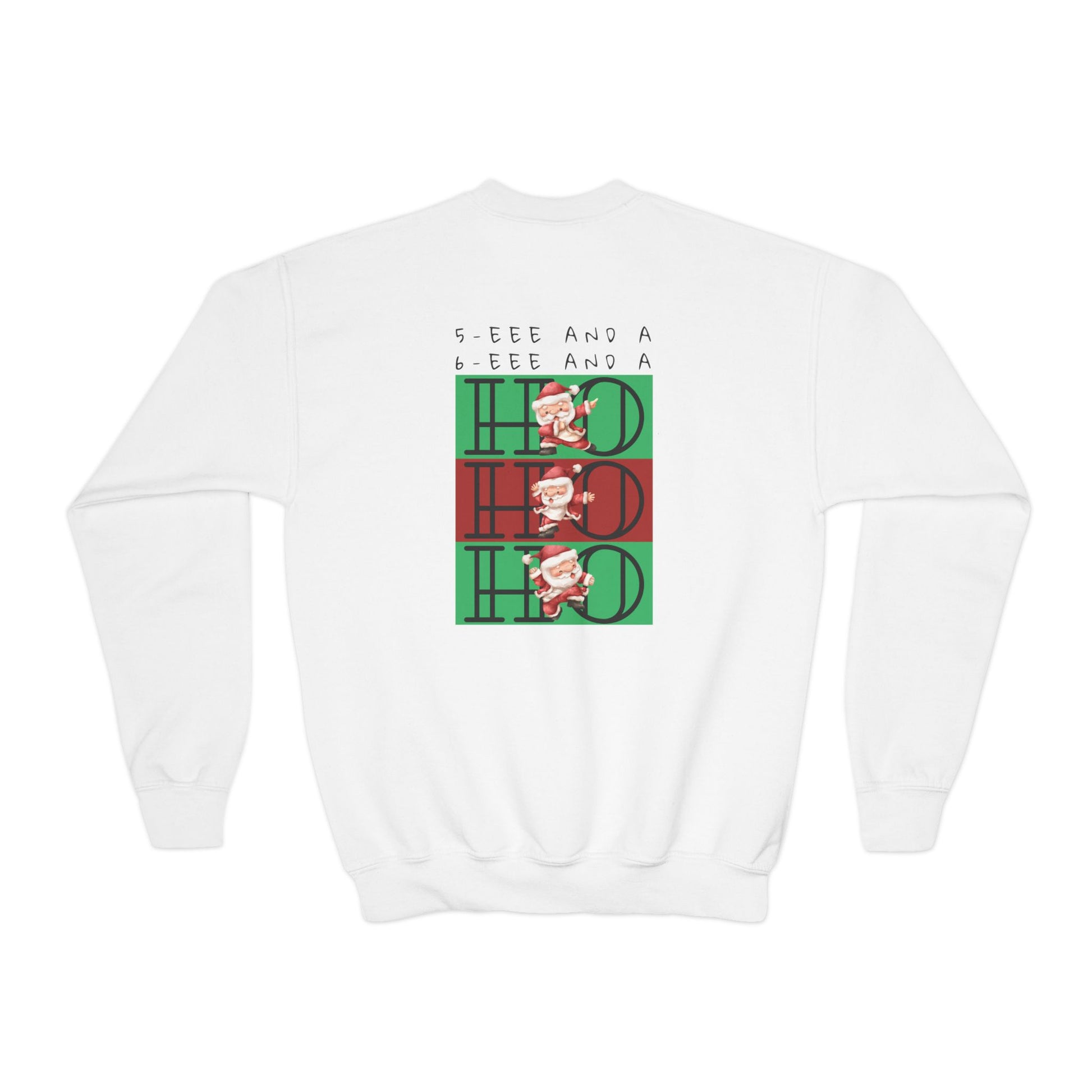 “5-eee and a 6-eee and a Ho, Ho, Ho” YOUTH SWEATSHIRT Crewneck with Playful Dancing Santa Front & Back – Festive Christmas Dance Sweatshirt for Dancers & Studios