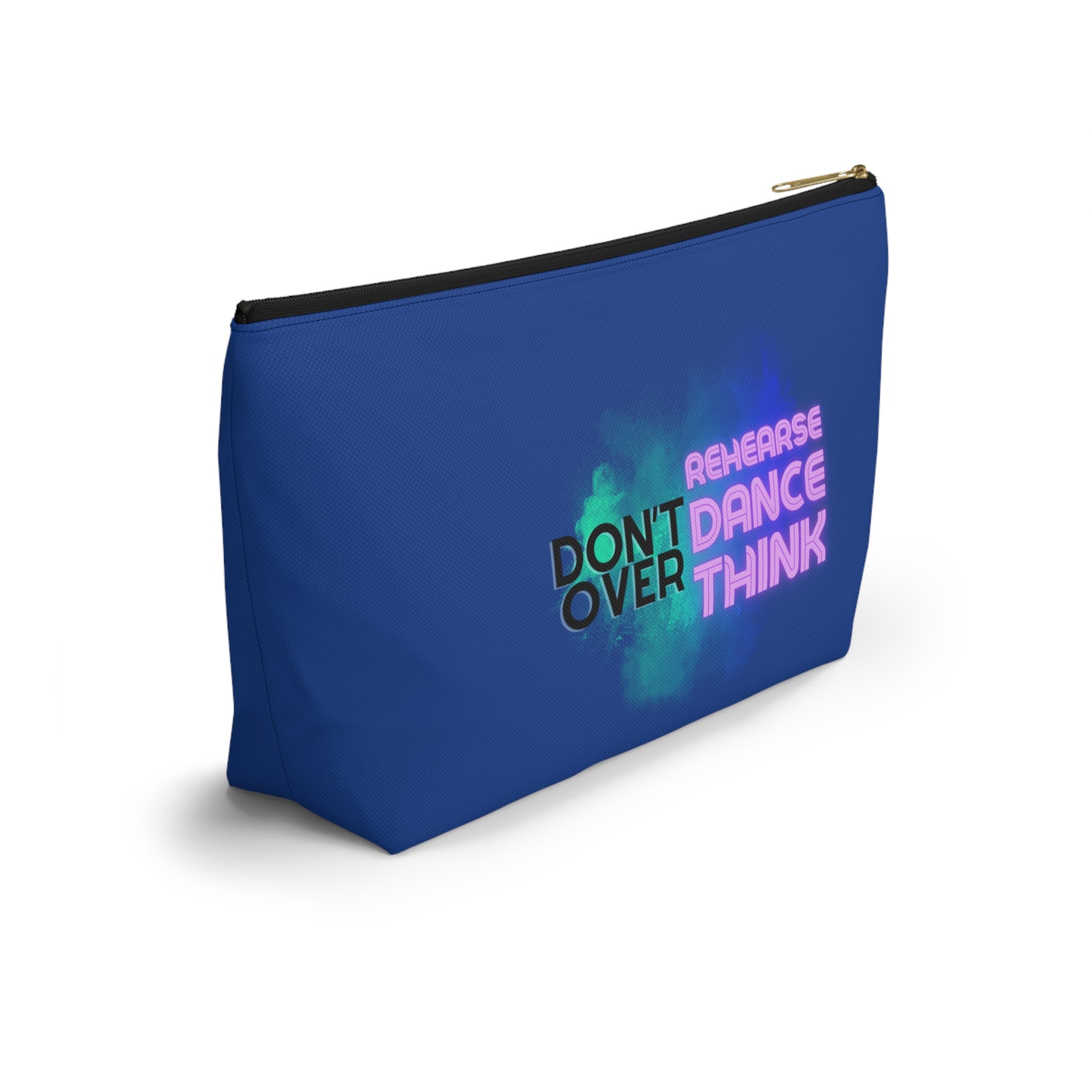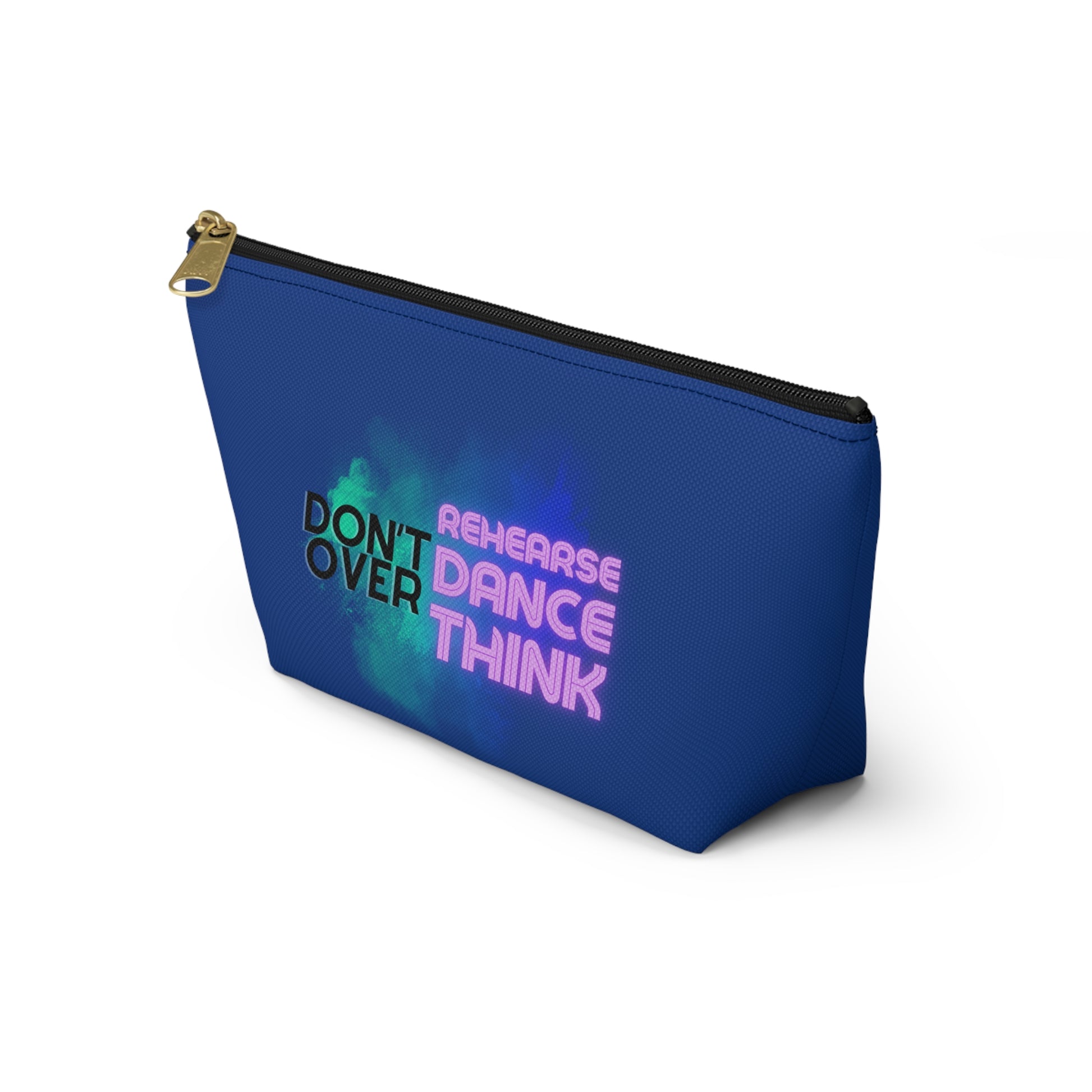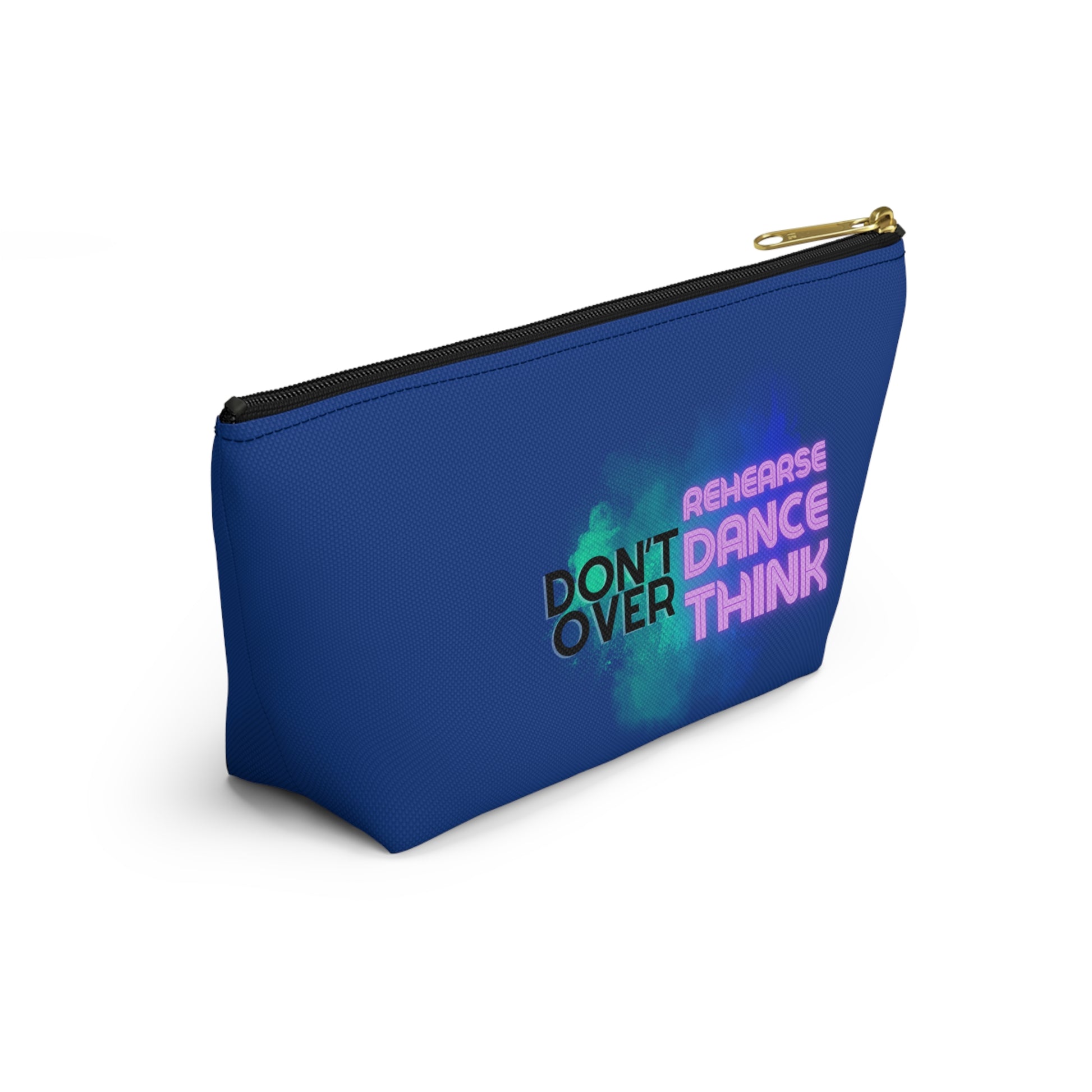"Don’t Over Rehearse Dance Think" Makeup Bag – Bold Text-Based Dance Graphic – Motivational Dance-Themed Zipper Pouch for Cosmetics, Accessories & Studio Essentials