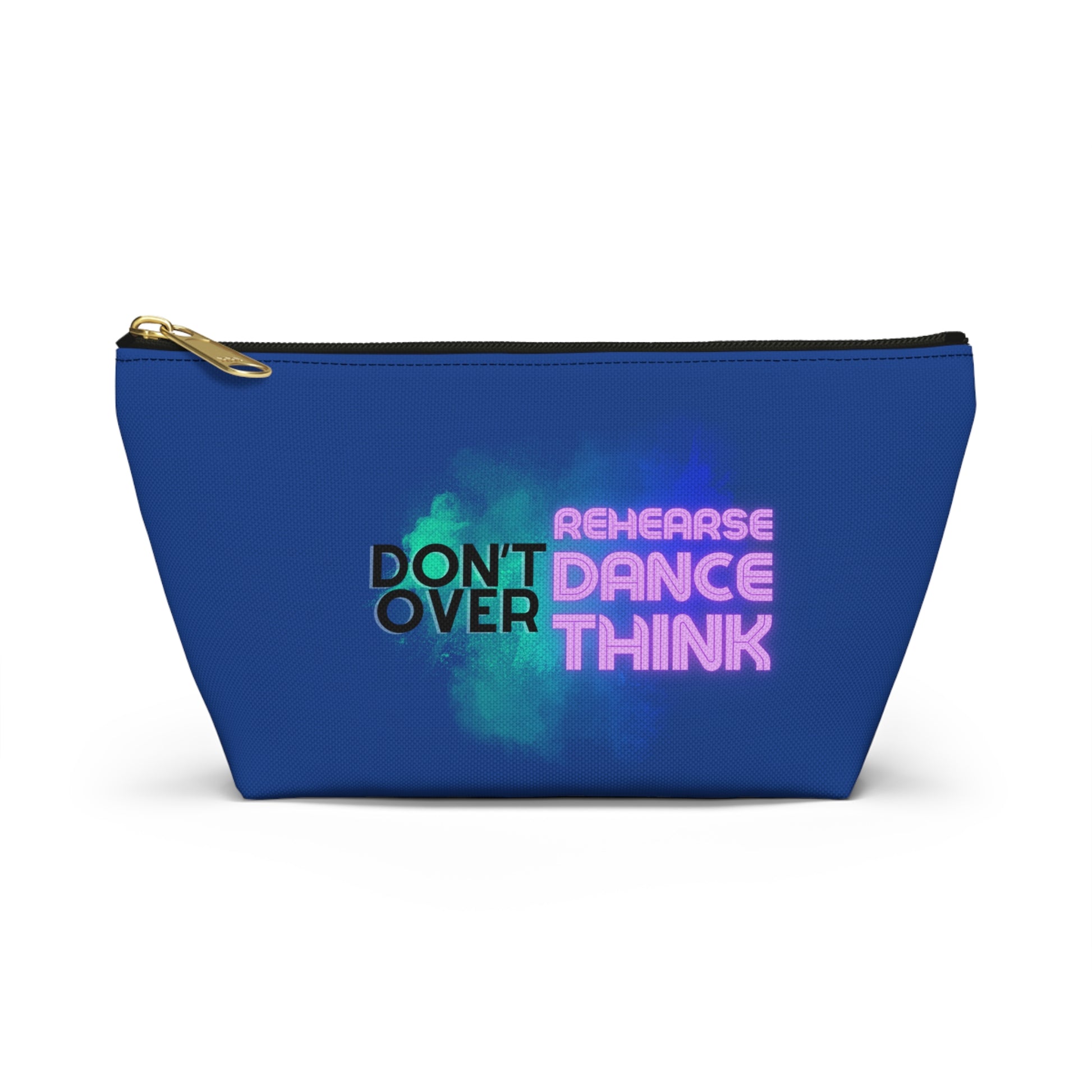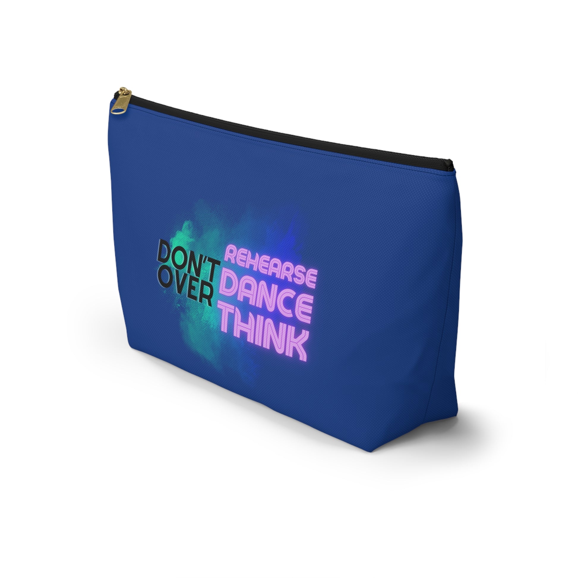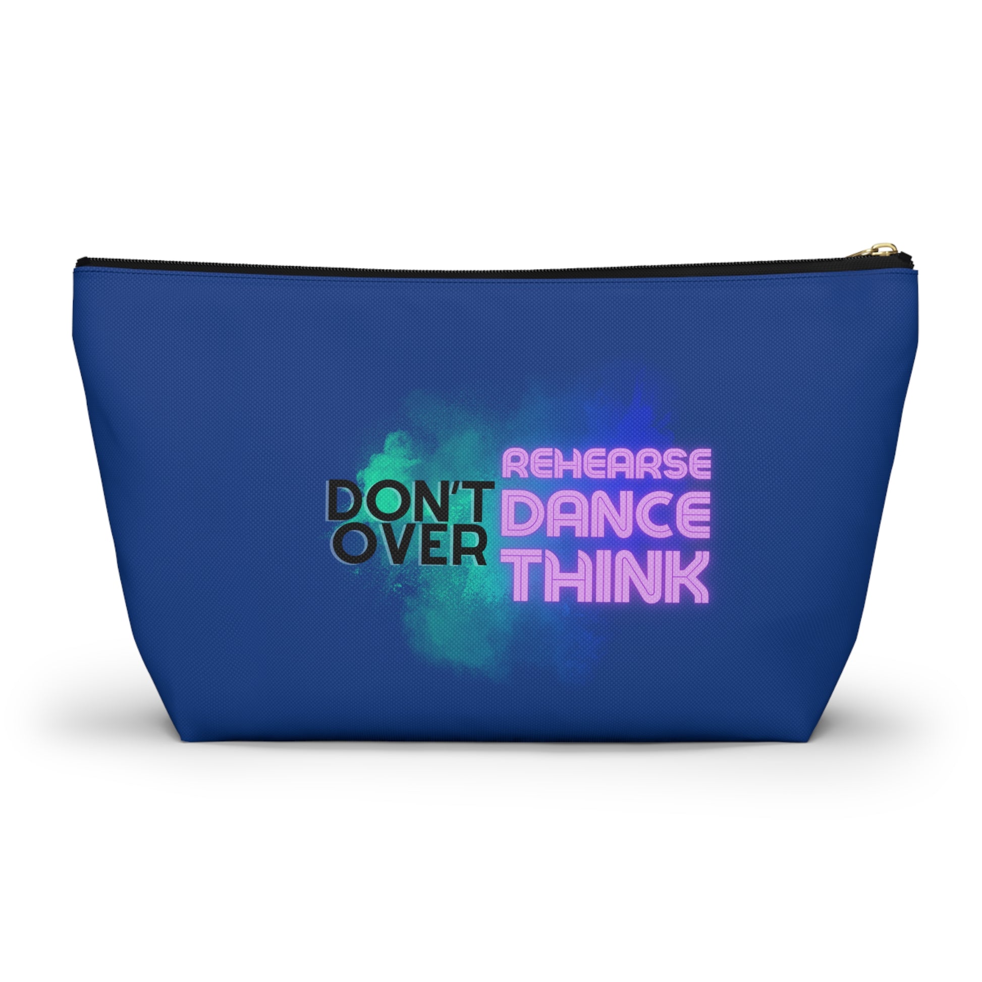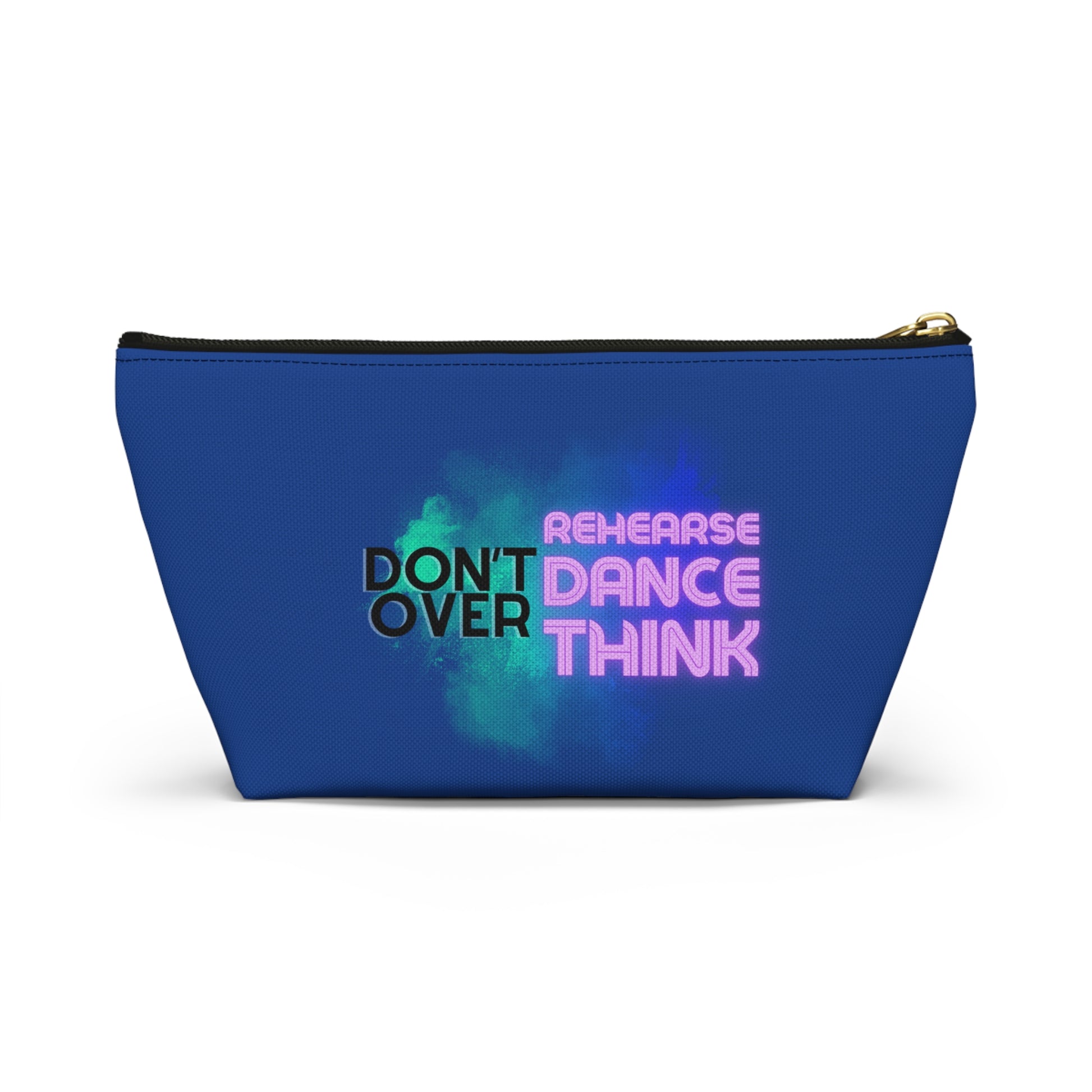 "Don’t Over Rehearse Dance Think" Makeup Bag – Bold Text-Based Dance Graphic – Motivational Dance-Themed Zipper Pouch for Cosmetics, Accessories & Studio Essentials
