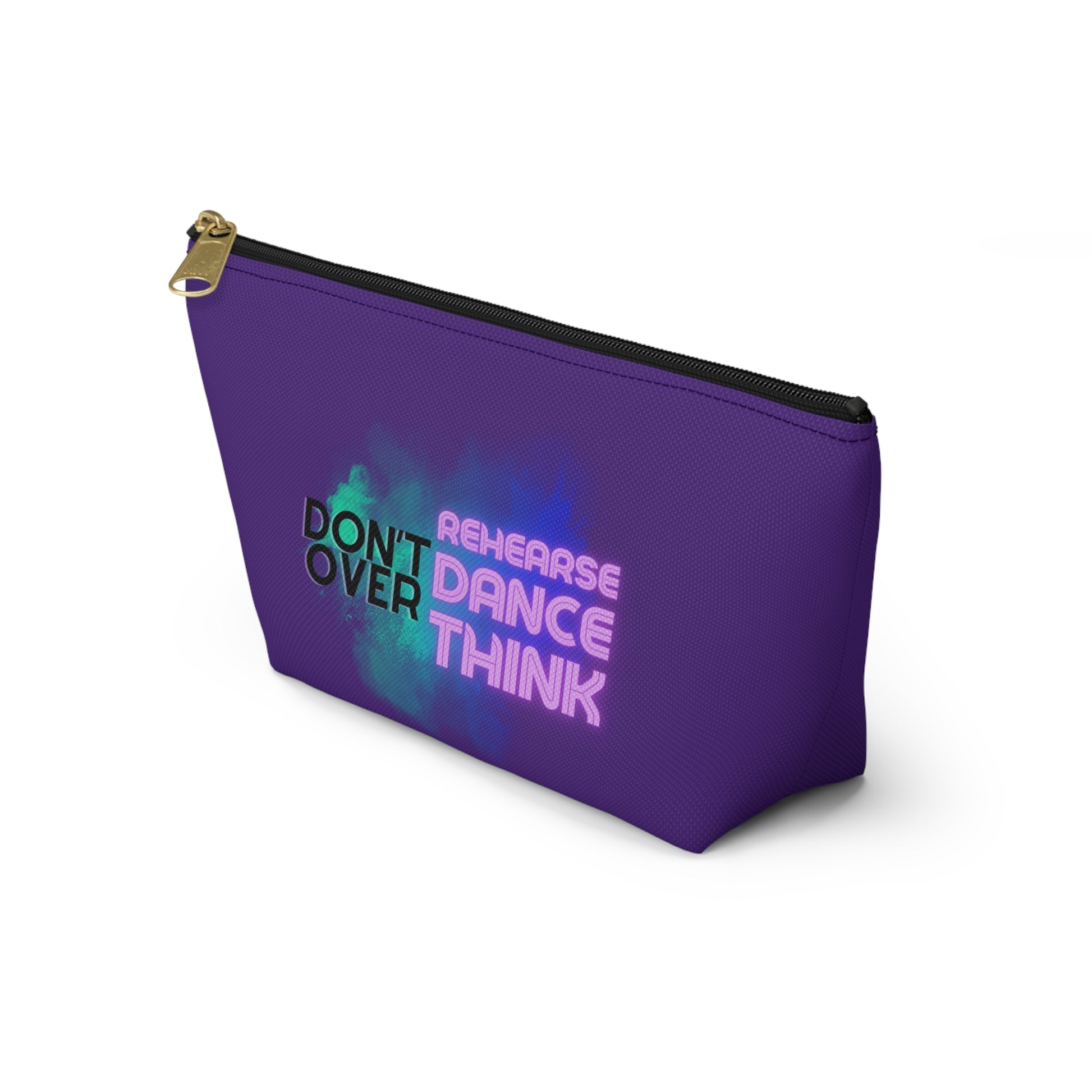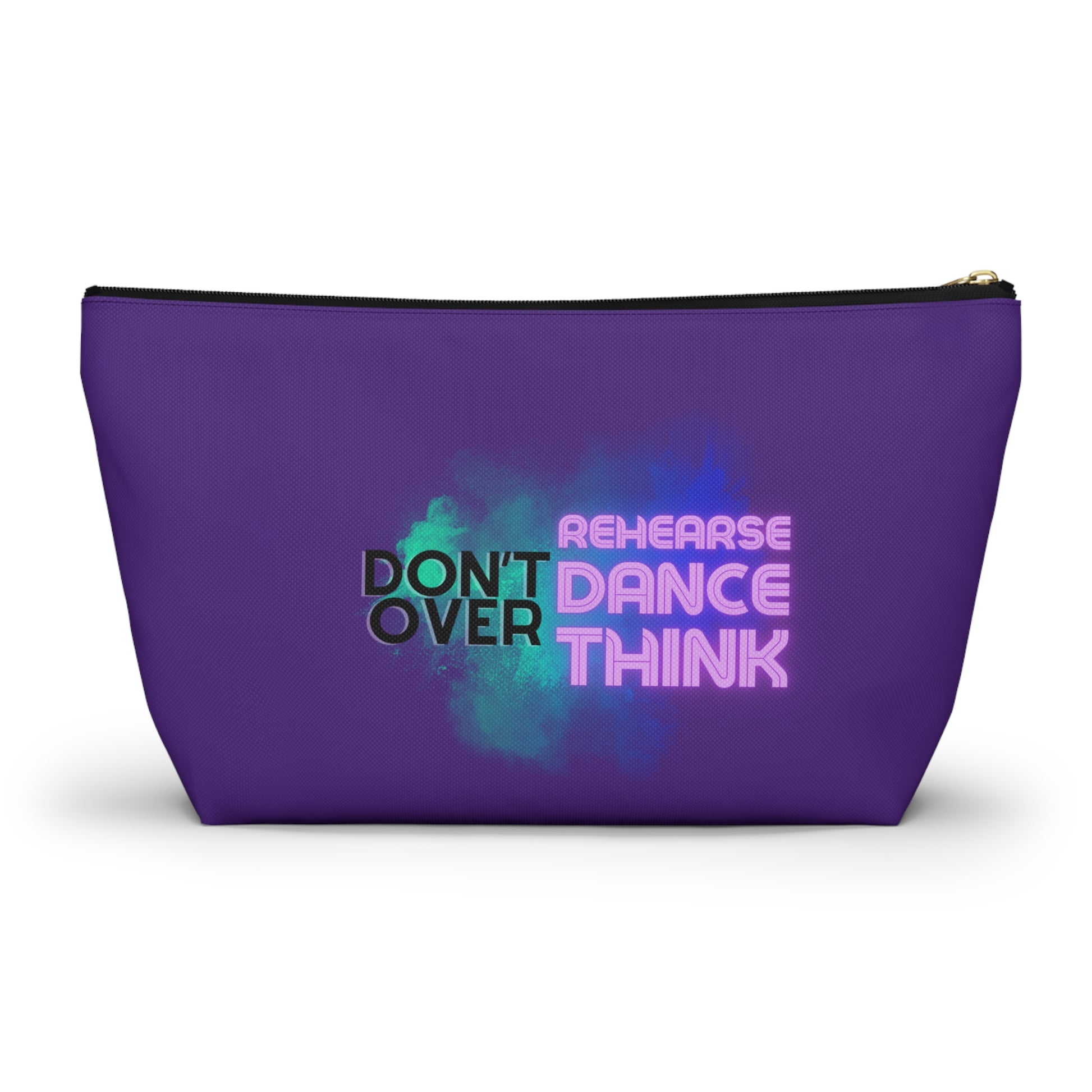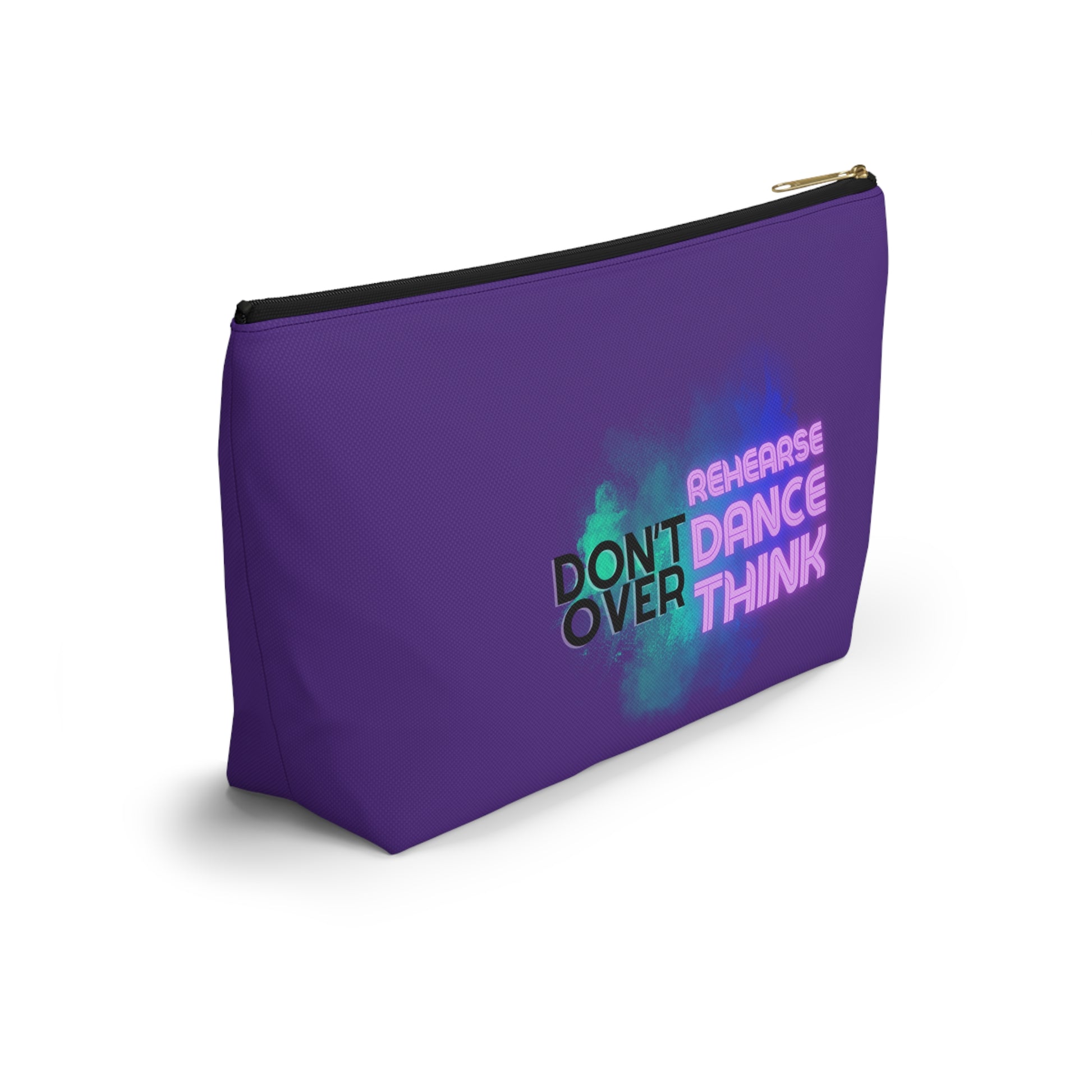 "Don’t Over Rehearse Dance Think" Makeup Bag – Bold Text-Based Dance Graphic – Motivational Dance-Themed Zipper Pouch for Cosmetics, Accessories & Studio Essentials