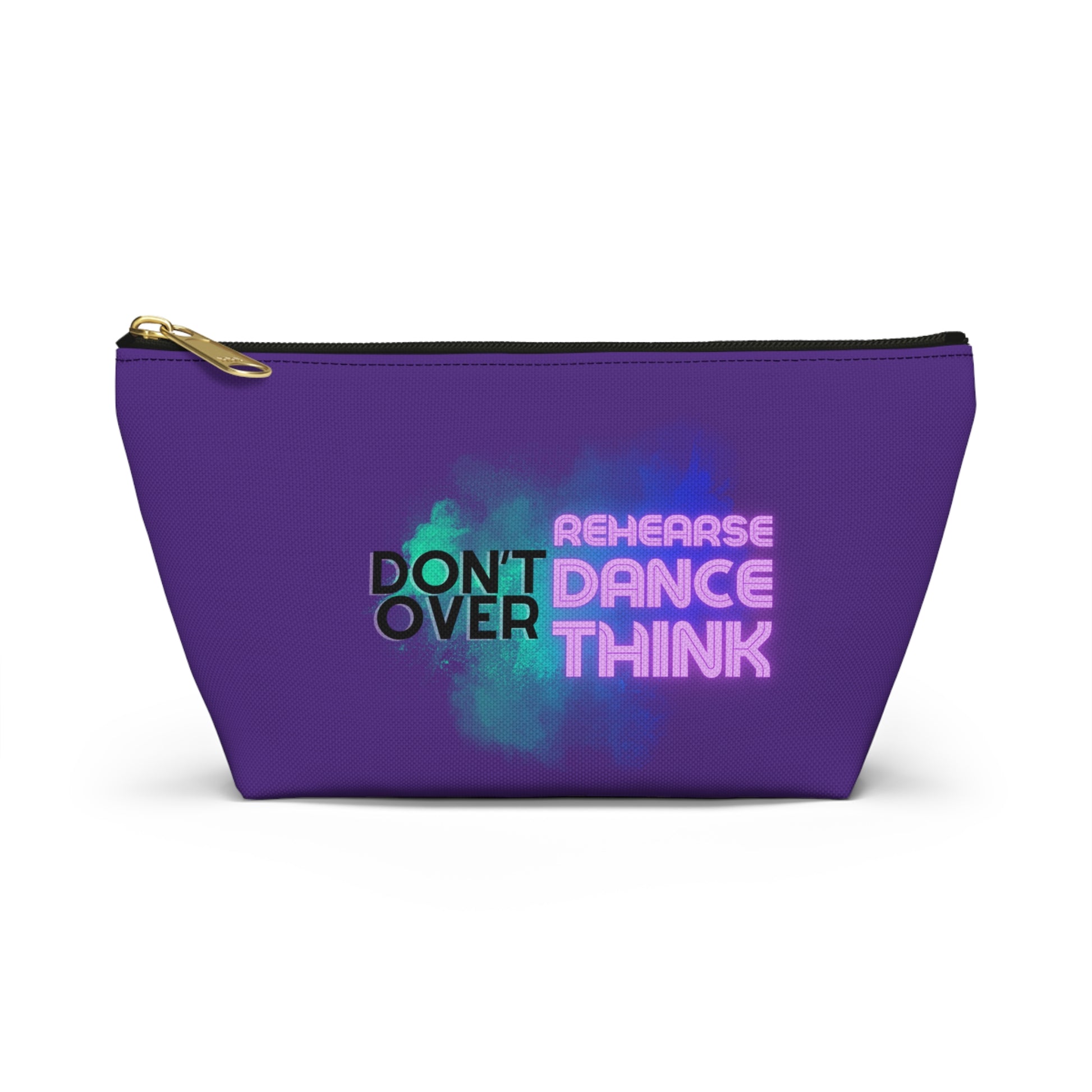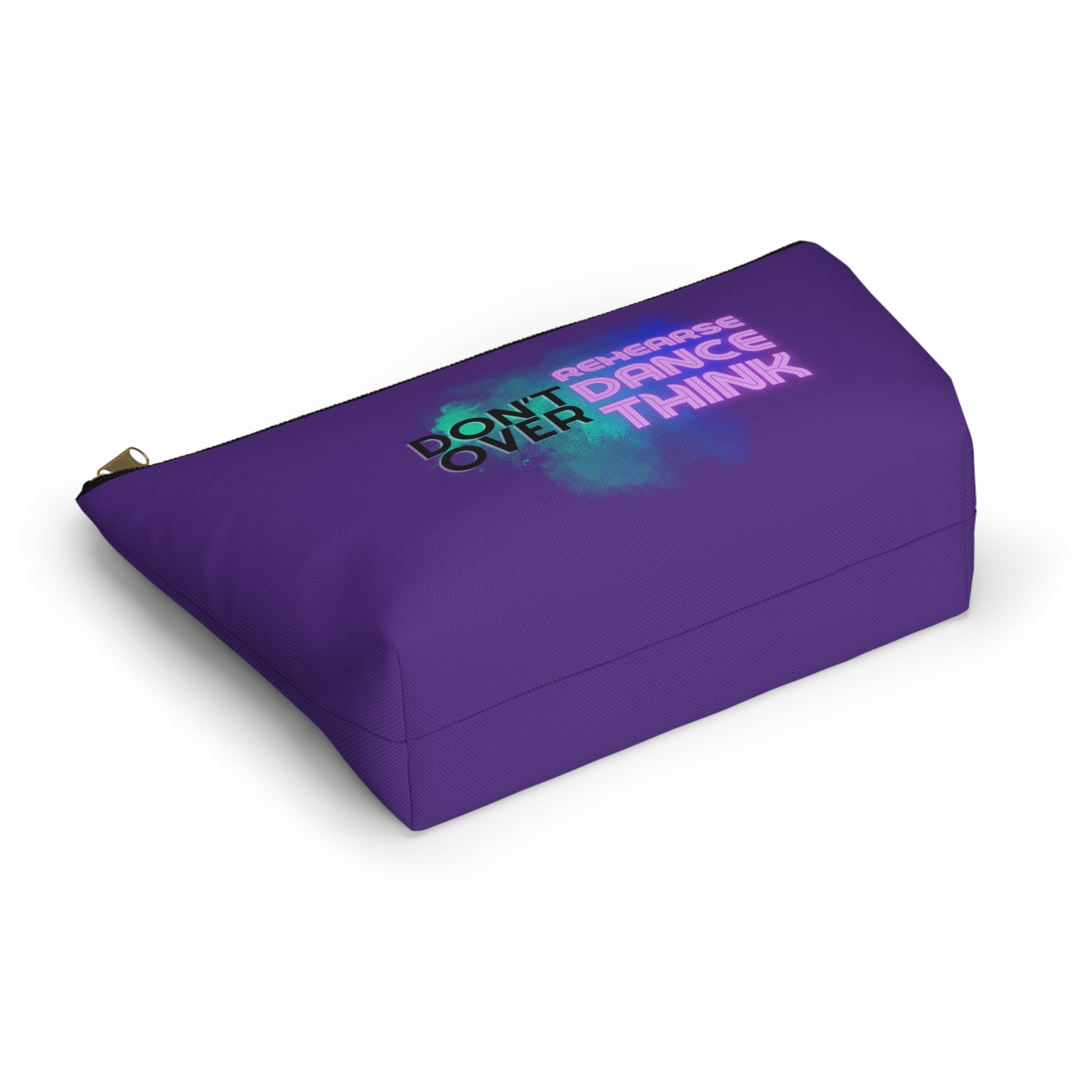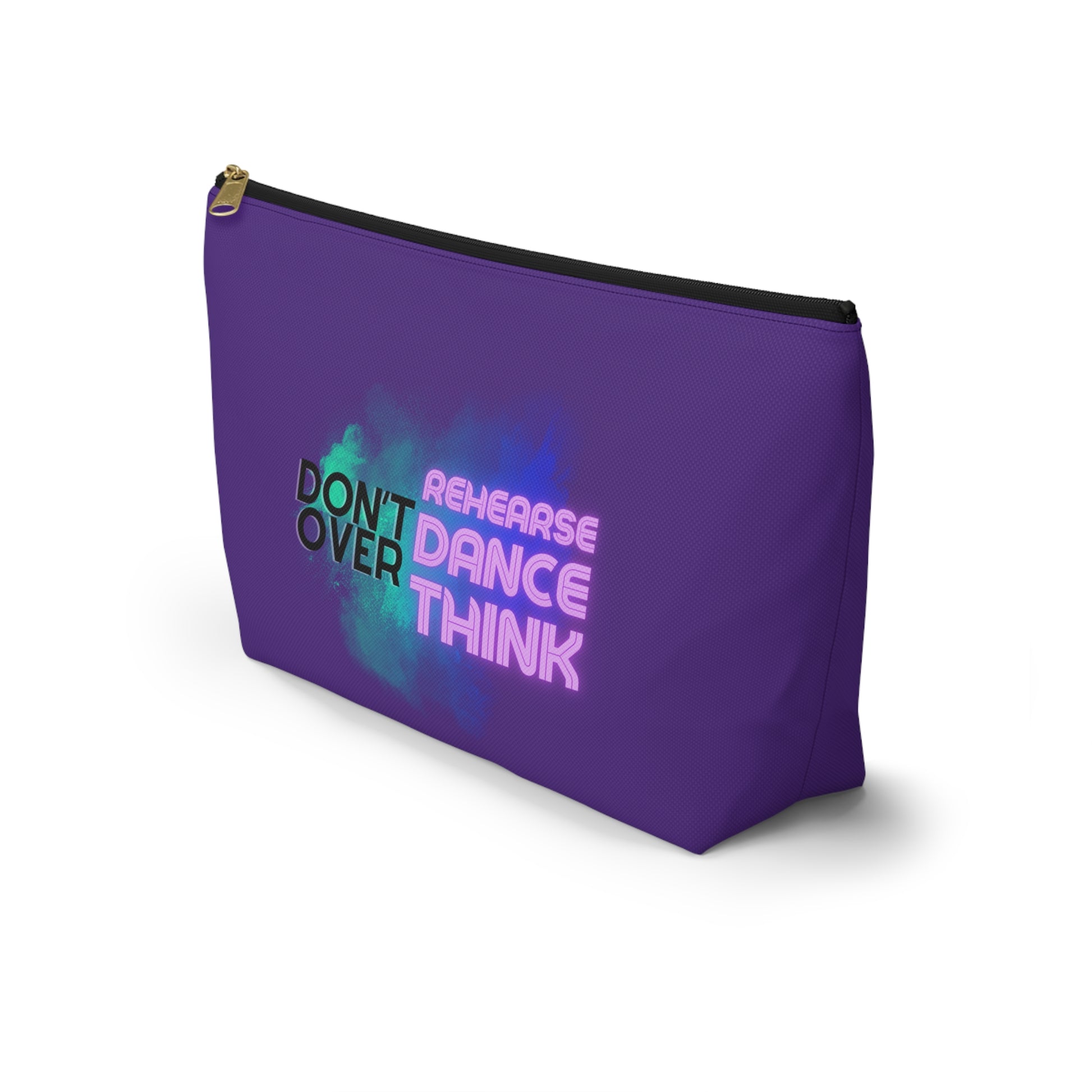 "Don’t Over Rehearse Dance Think" Makeup Bag – Bold Text-Based Dance Graphic – Motivational Dance-Themed Zipper Pouch for Cosmetics, Accessories & Studio Essentials