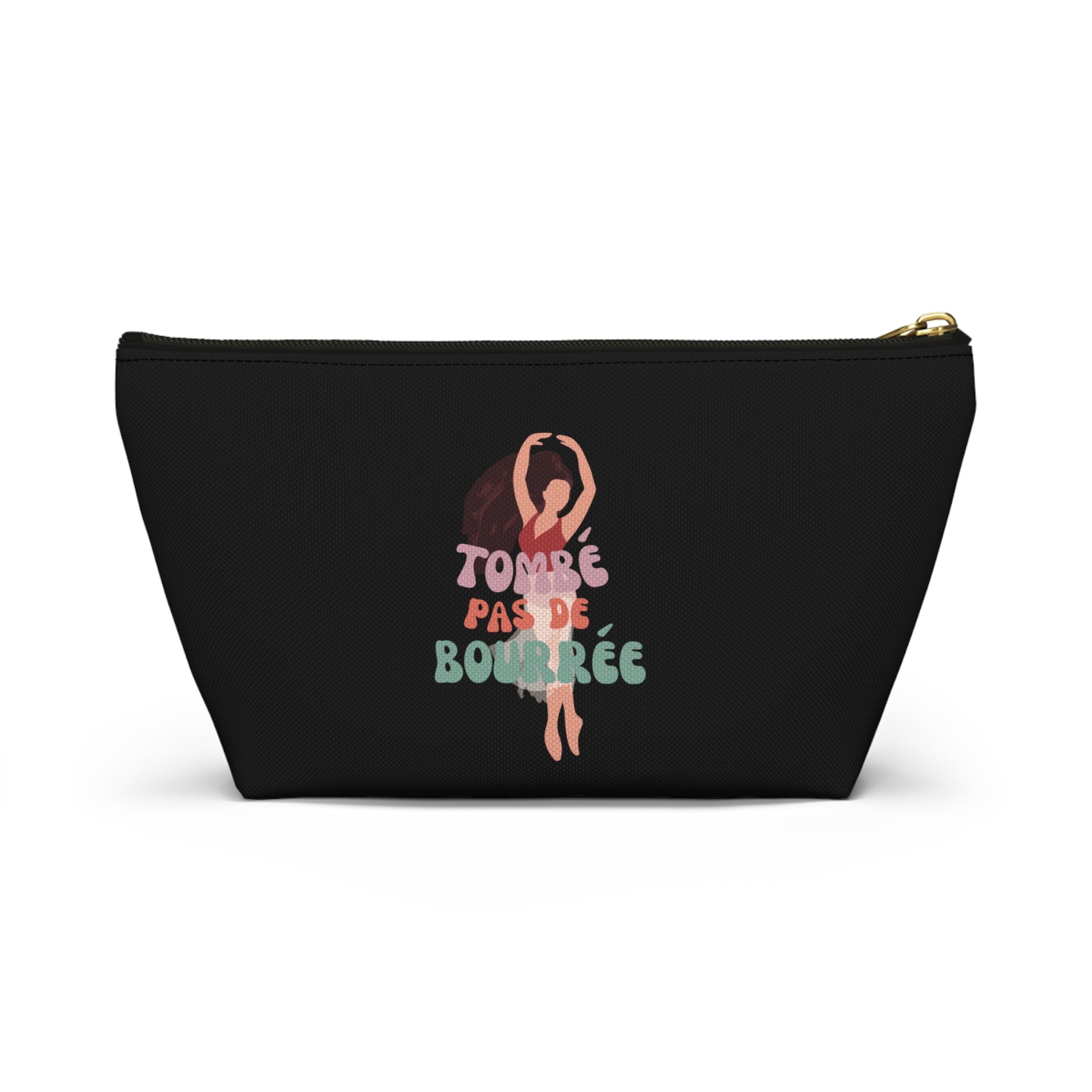 "Tombé Pas de Bourrée" Makeup Bag – Elegant Ballet Dancer Graphic – Ballet-Themed Zipper Pouch for Cosmetics, Accessories & Dance Gifts