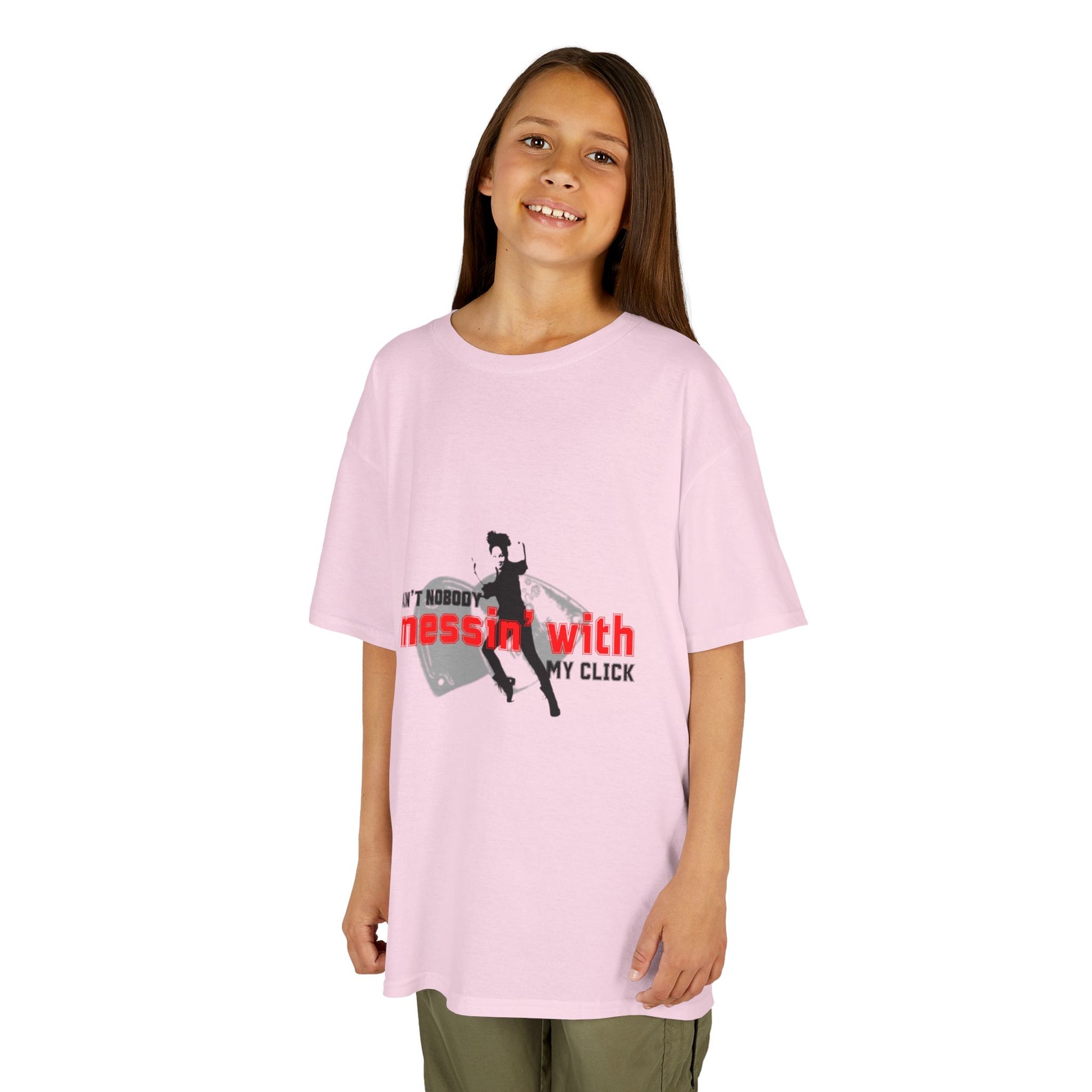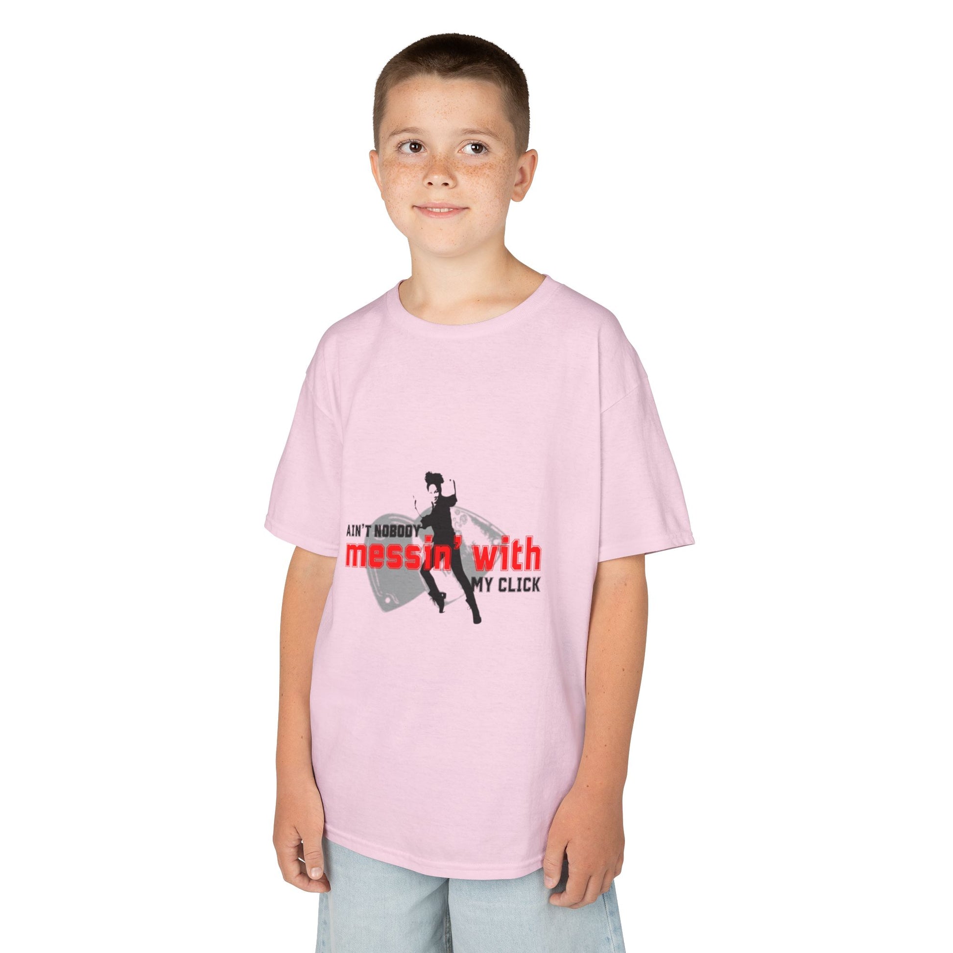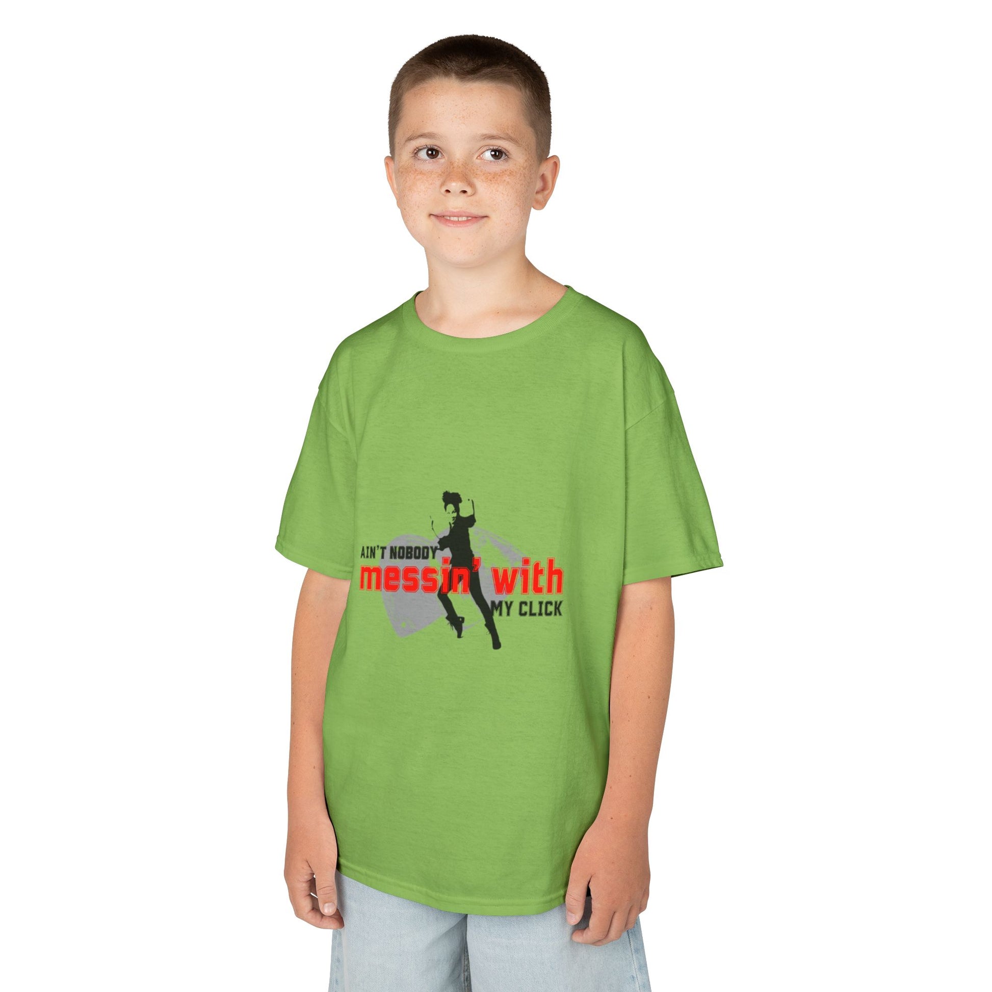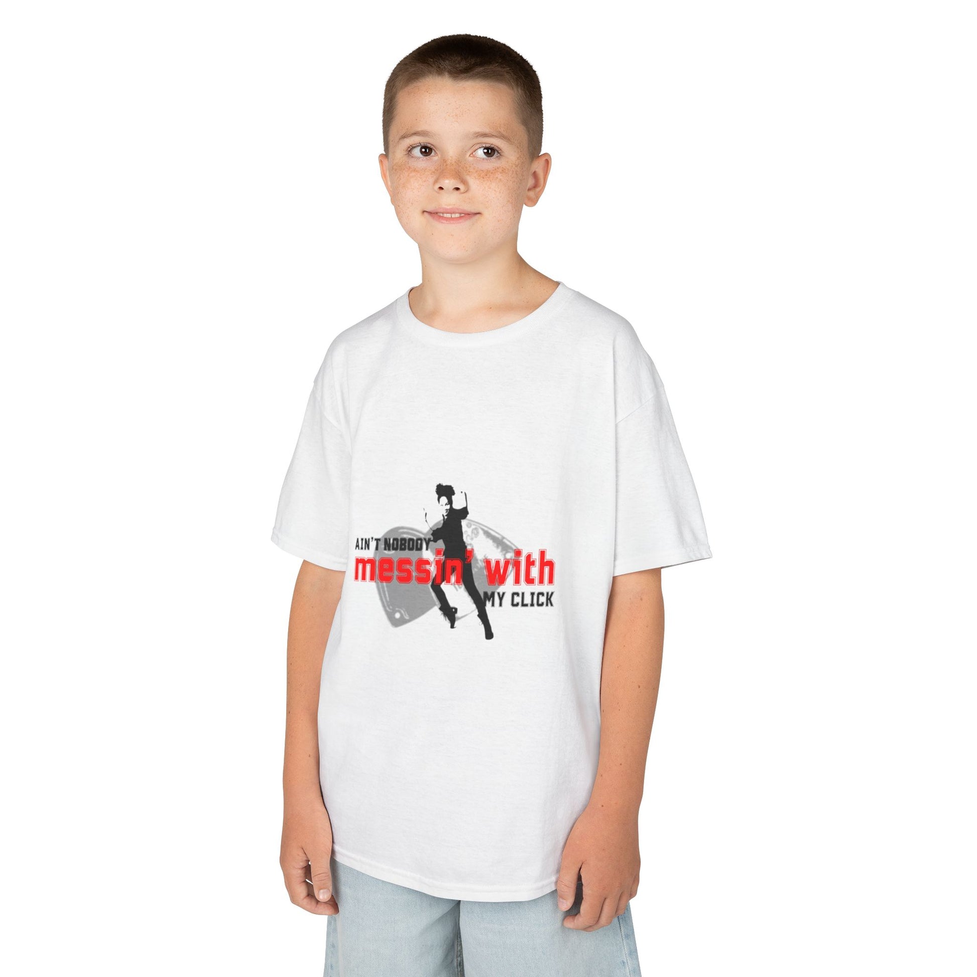 "Ain’t Nobody Messin’ With My Click" – Youth Short Sleeve Dance Tee with Tap Shoes & Tap Dancer Graphic