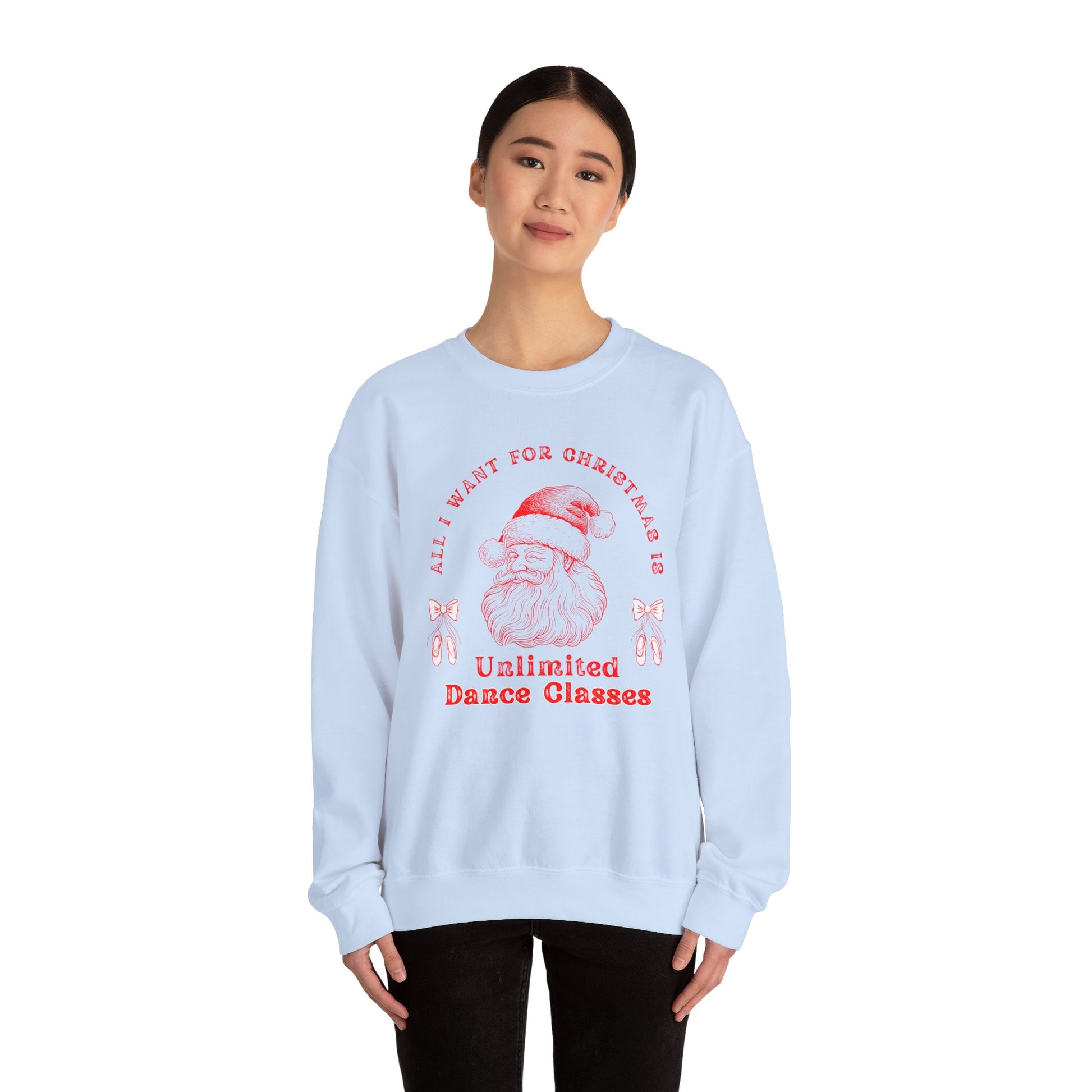 “All I Want for Christmas Is Unlimited Dance Classes” ADULT SWEATSHIRT Unisex Heavy Blend Crewneck with Vintage Santa – Festive Holiday Dance Sweatshirt for Dancers & Studios
