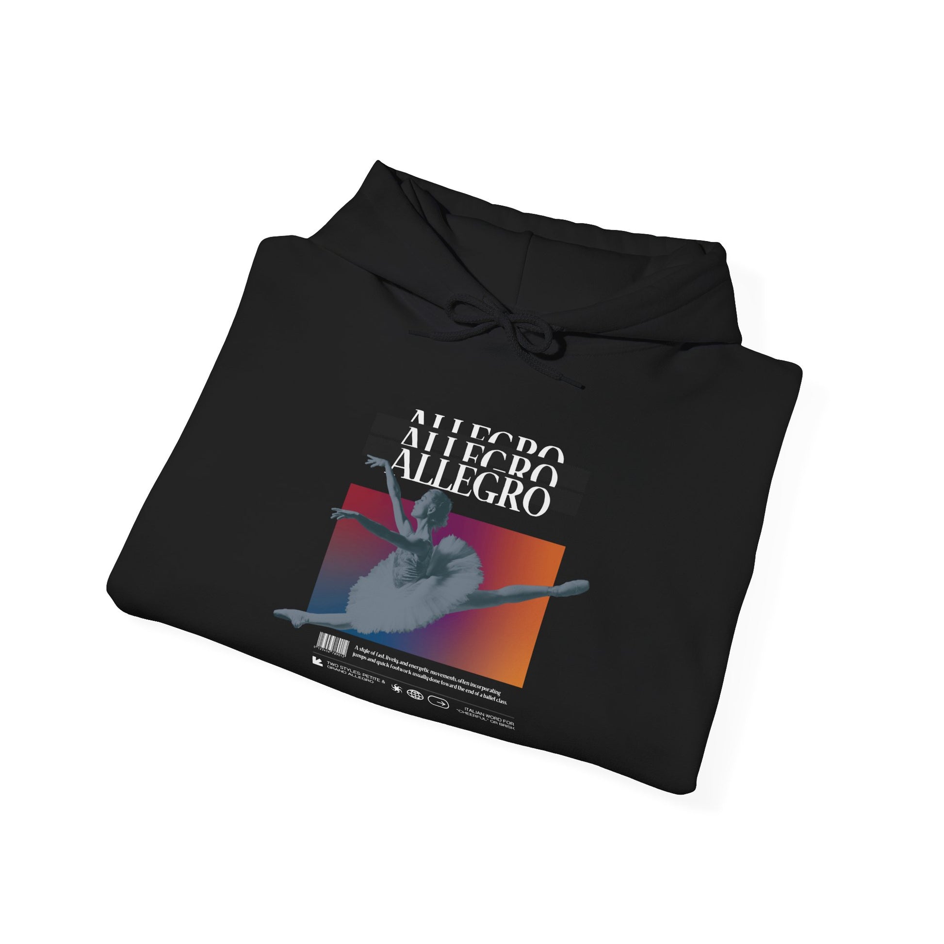 Whether you're heading to rehearsal or relaxing post-performance, this hoodie brings the "Allegro" mindset with you. Dance fast. Live bold. Stay comfy.