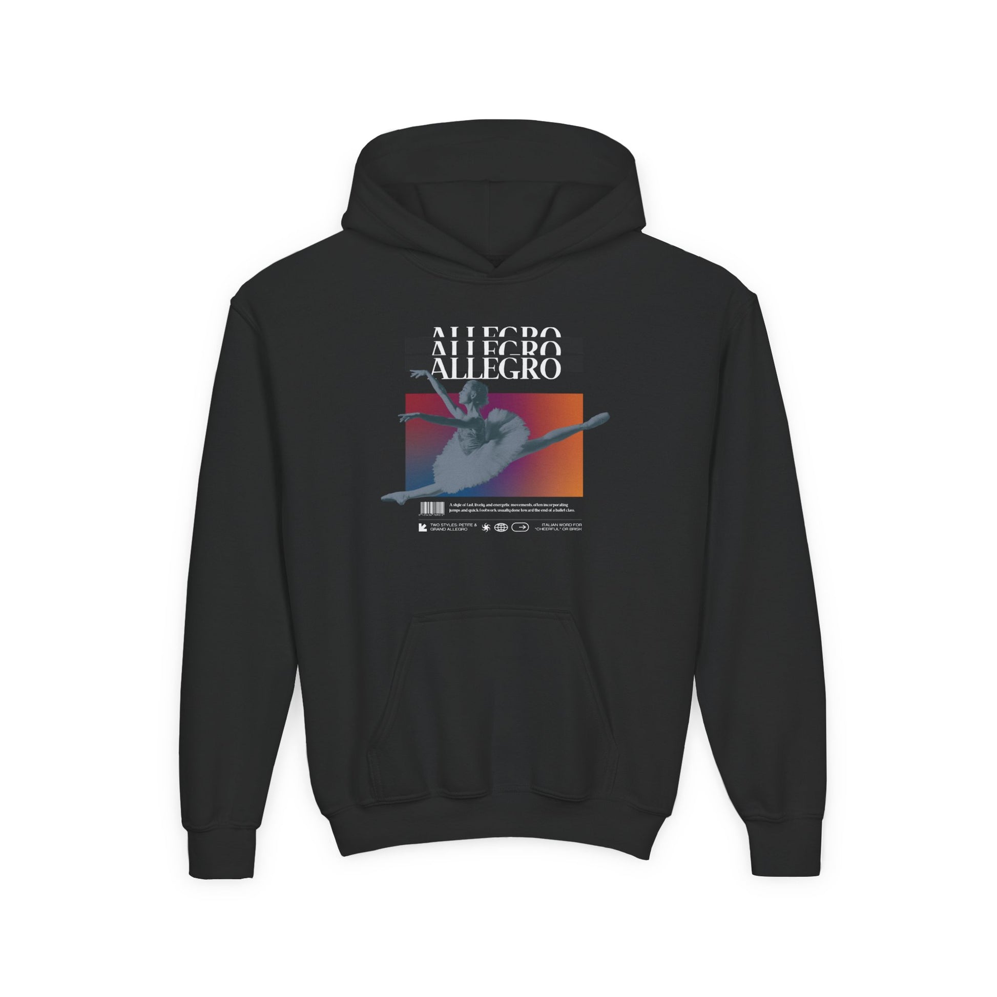 “Allegro” Ballet Term Definition with Beautiful Ballerina Graphic | Unisex Youth Hoodie – Streetwear-Inspired Ballet Dance Hoodie for Kids & Young Dancers