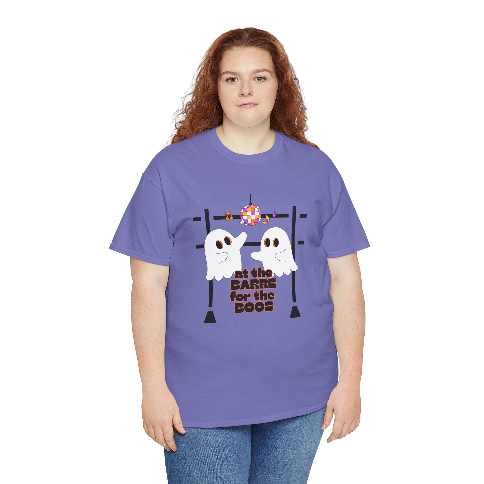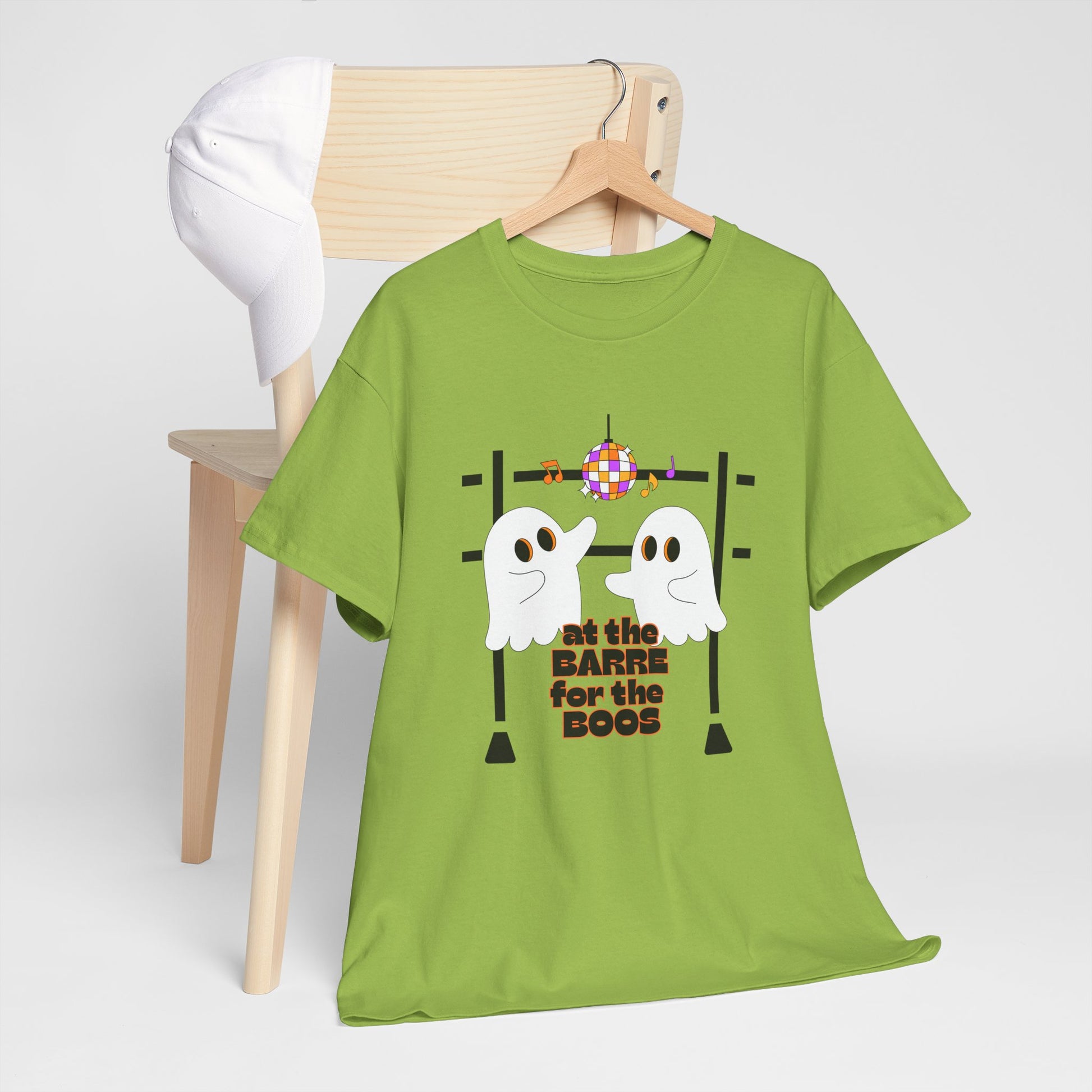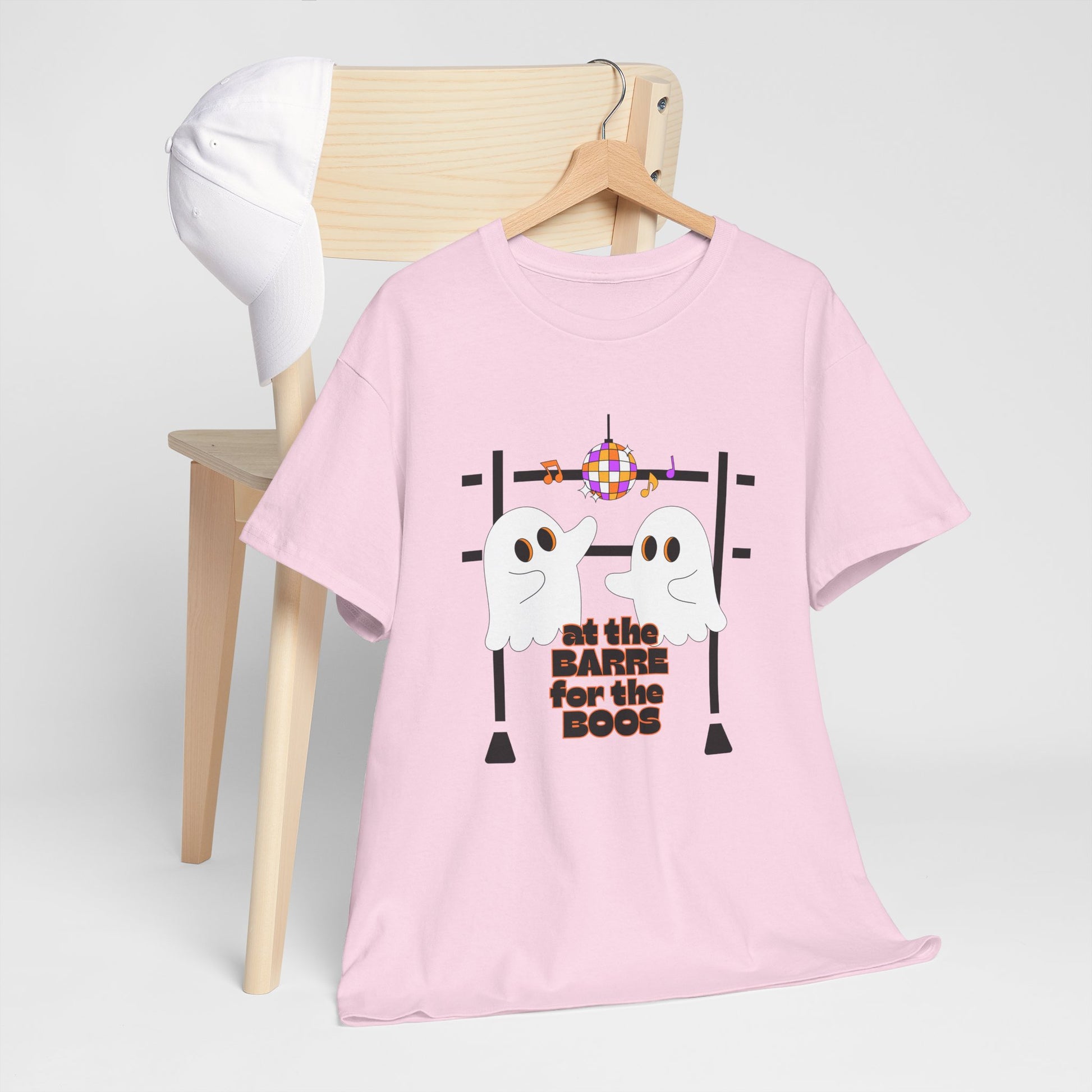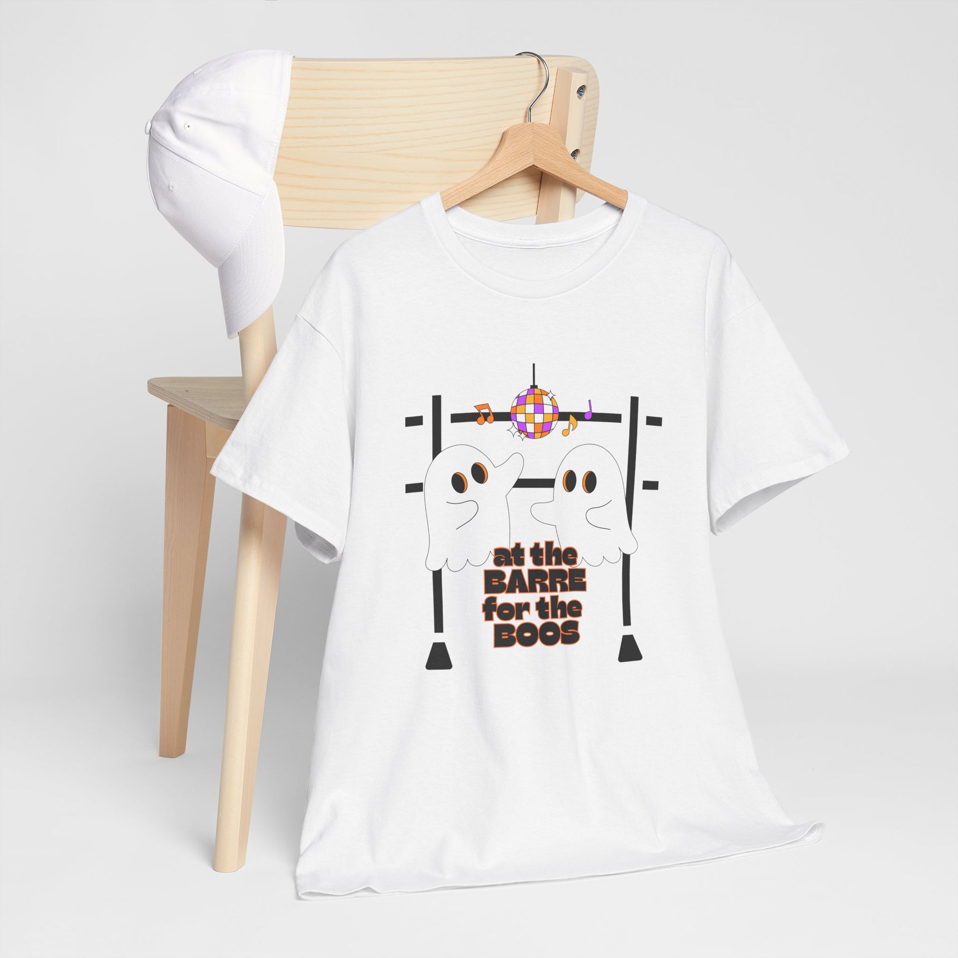 “At the Barre for the Boos” Dance Halloween T-Shirt with Cute Ghost Ballet Graphics - Unisex Heavy Cotton Tee