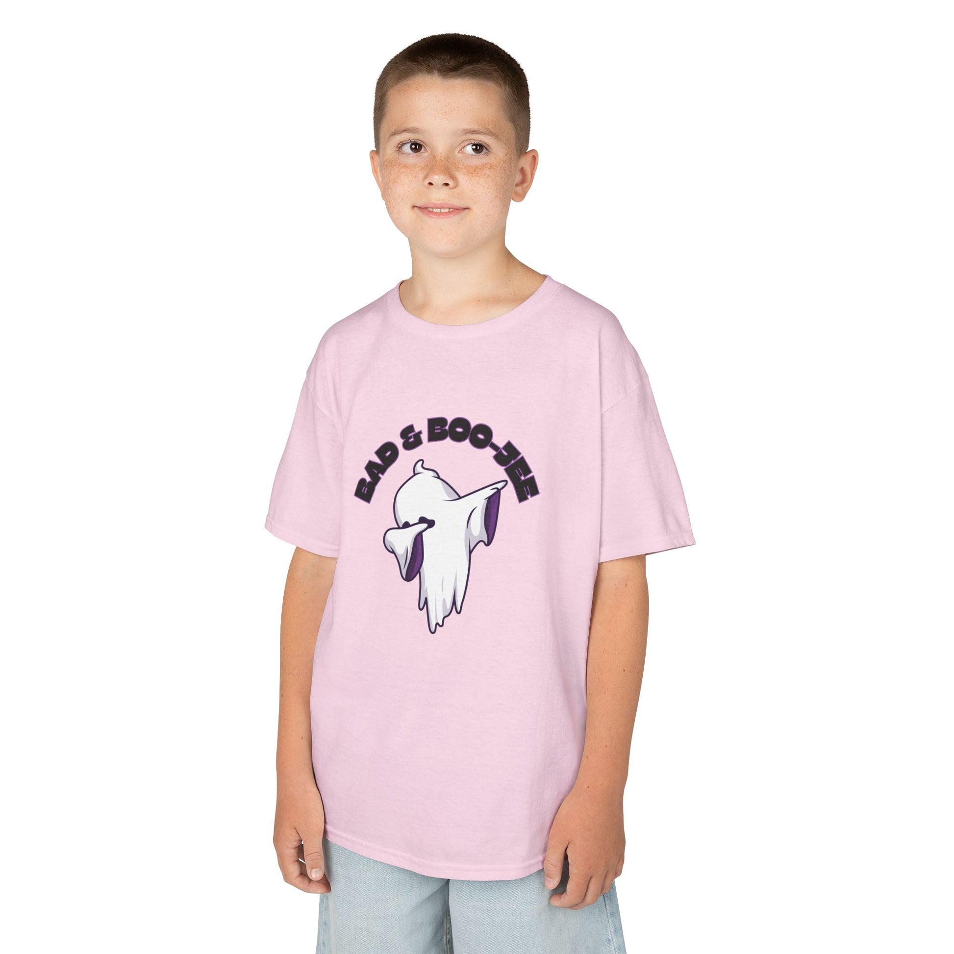 “Bad & Boo-jee” Funny Halloween Dance T-Shirt with Cute Ghost Dab Graphic - Kids Heavy Cotton™ Tee