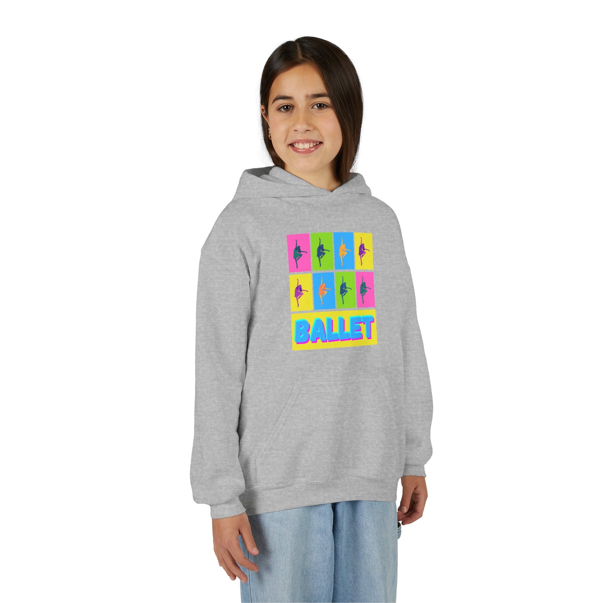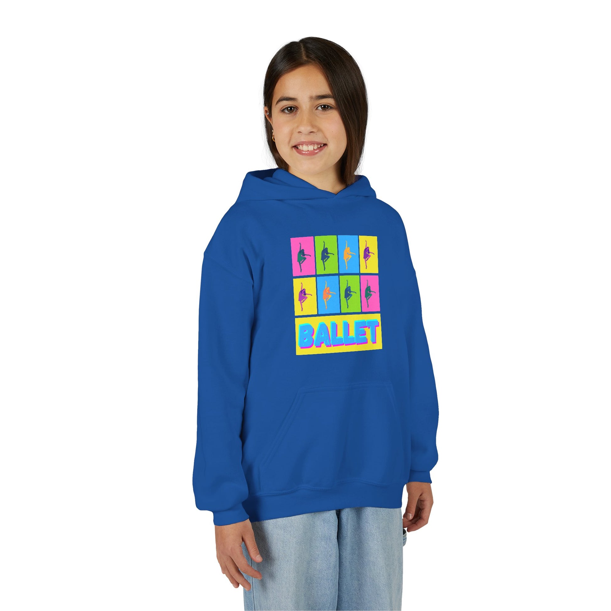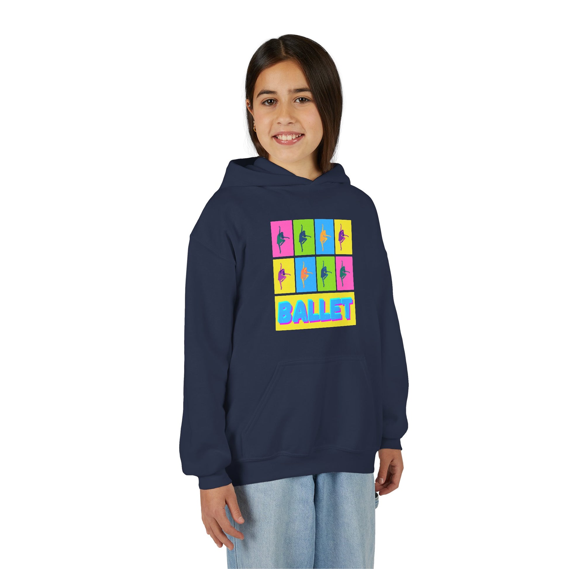 🎨 Youth Heavy Blend™ Hoodie – Pop Art “Ballet” Dancer Design 🎨