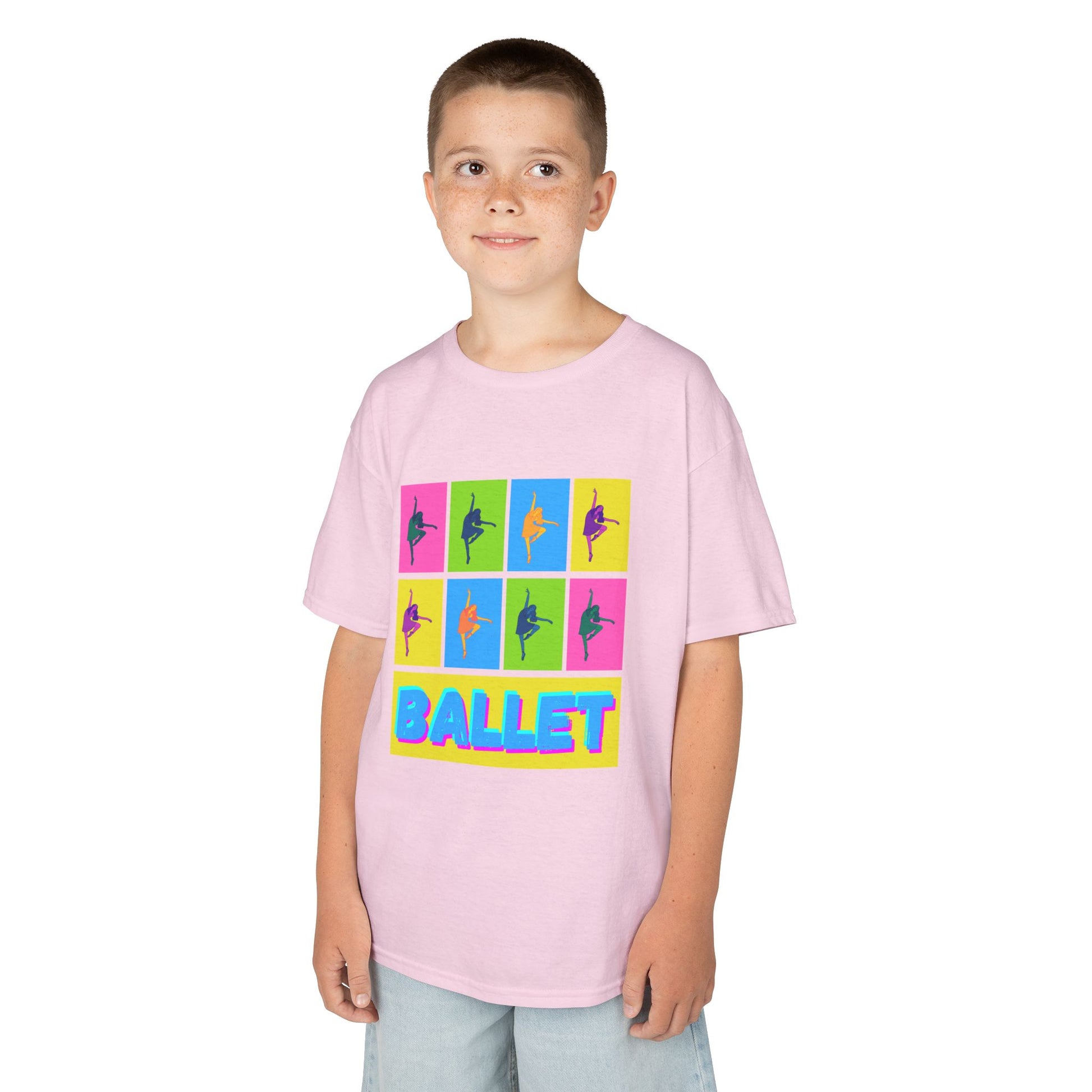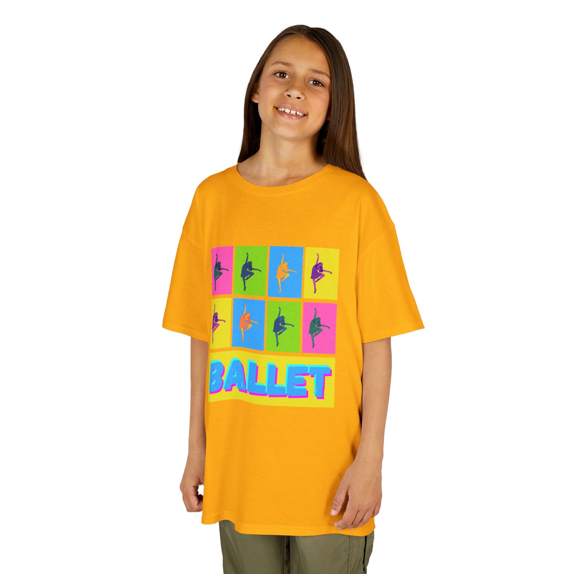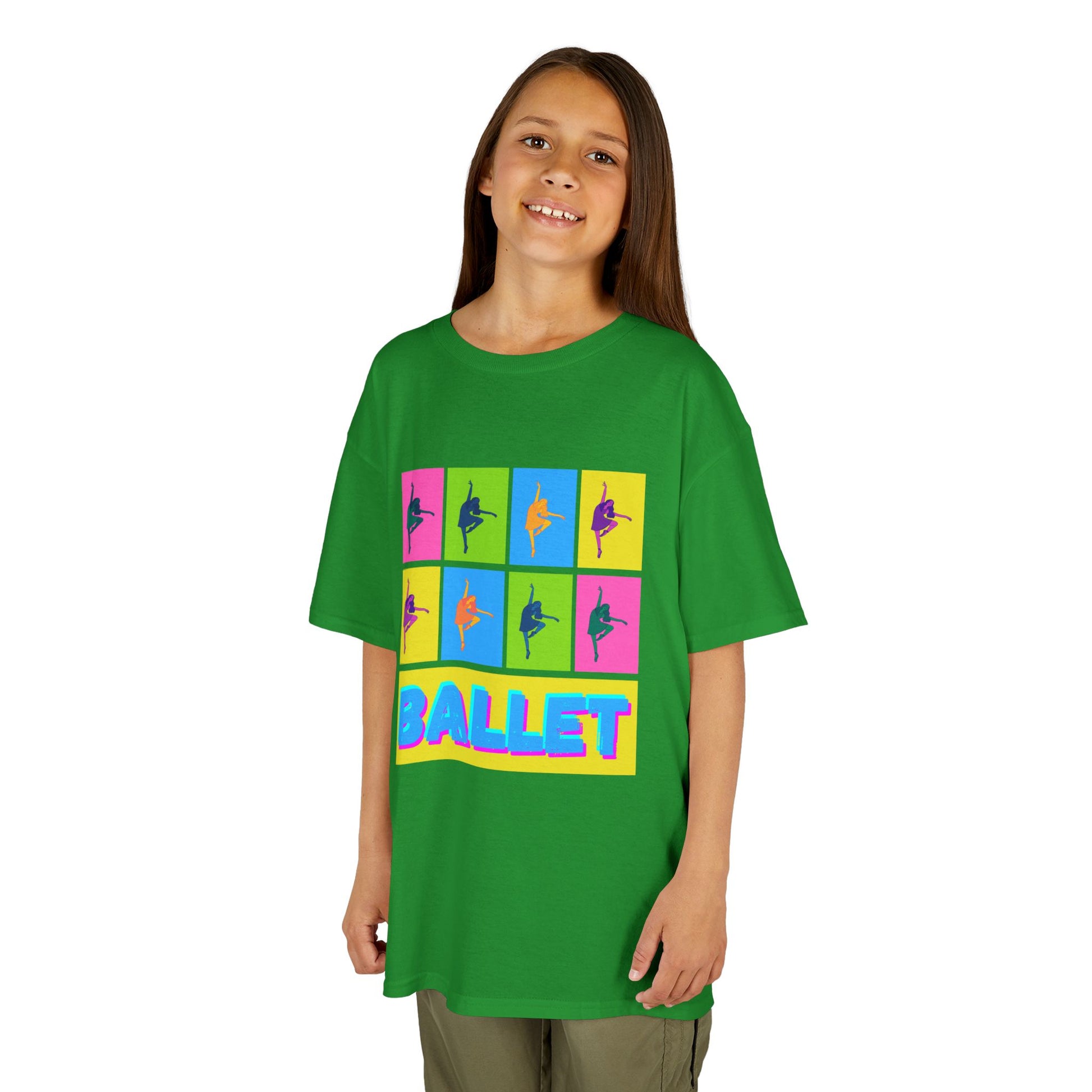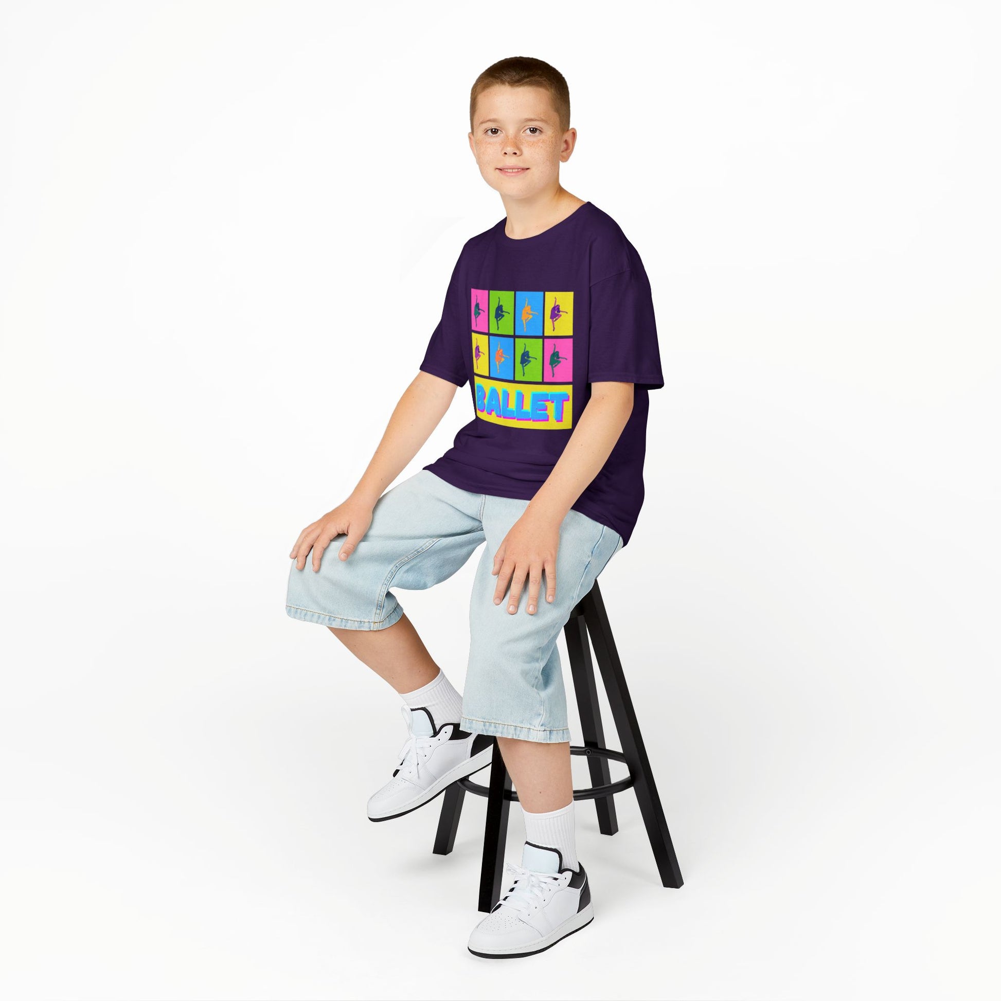 "Ballet" Youth Short Sleeve T-Shirt – Pop Art Inspired Design with Ballet Dancer Graphics – Dance Apparel for Kids