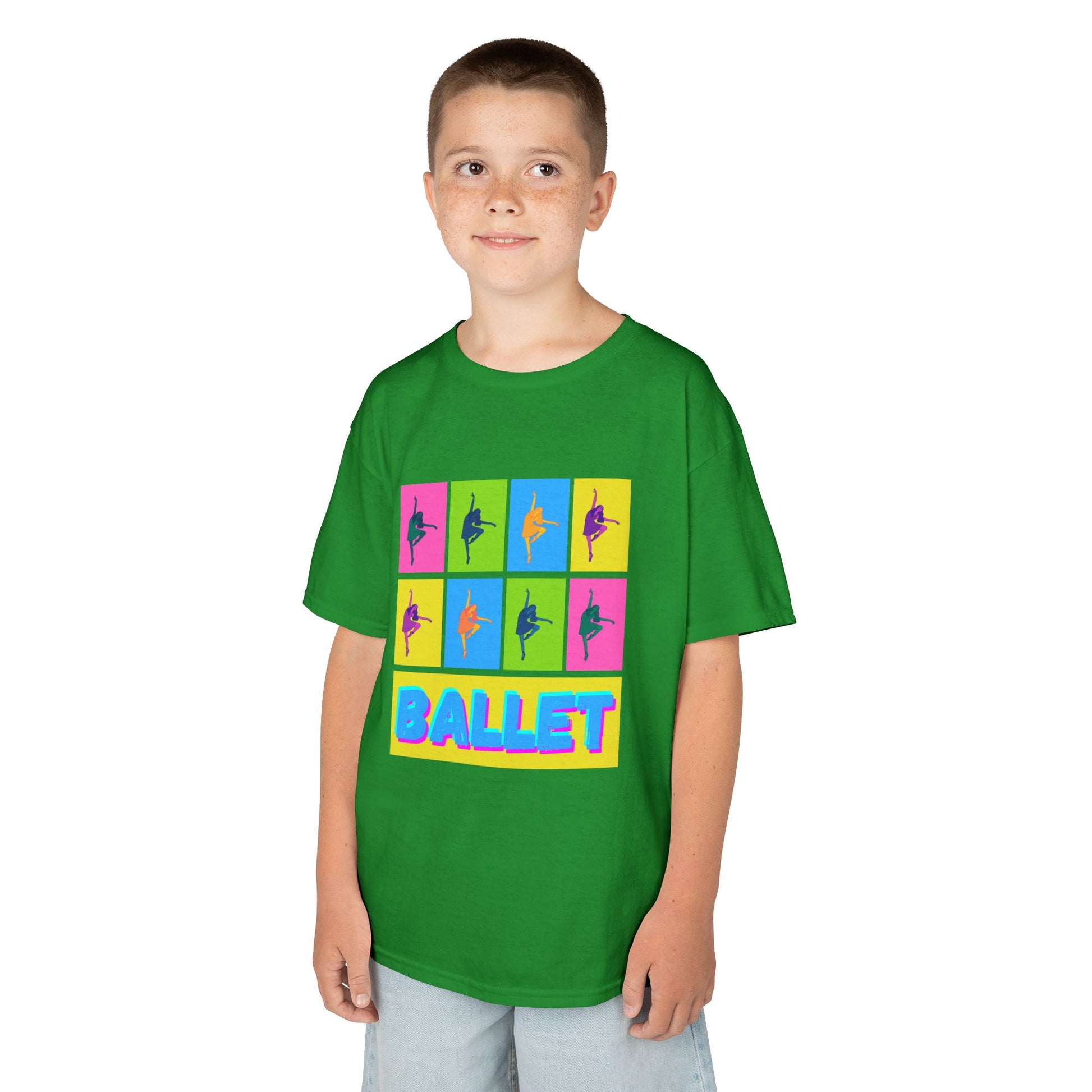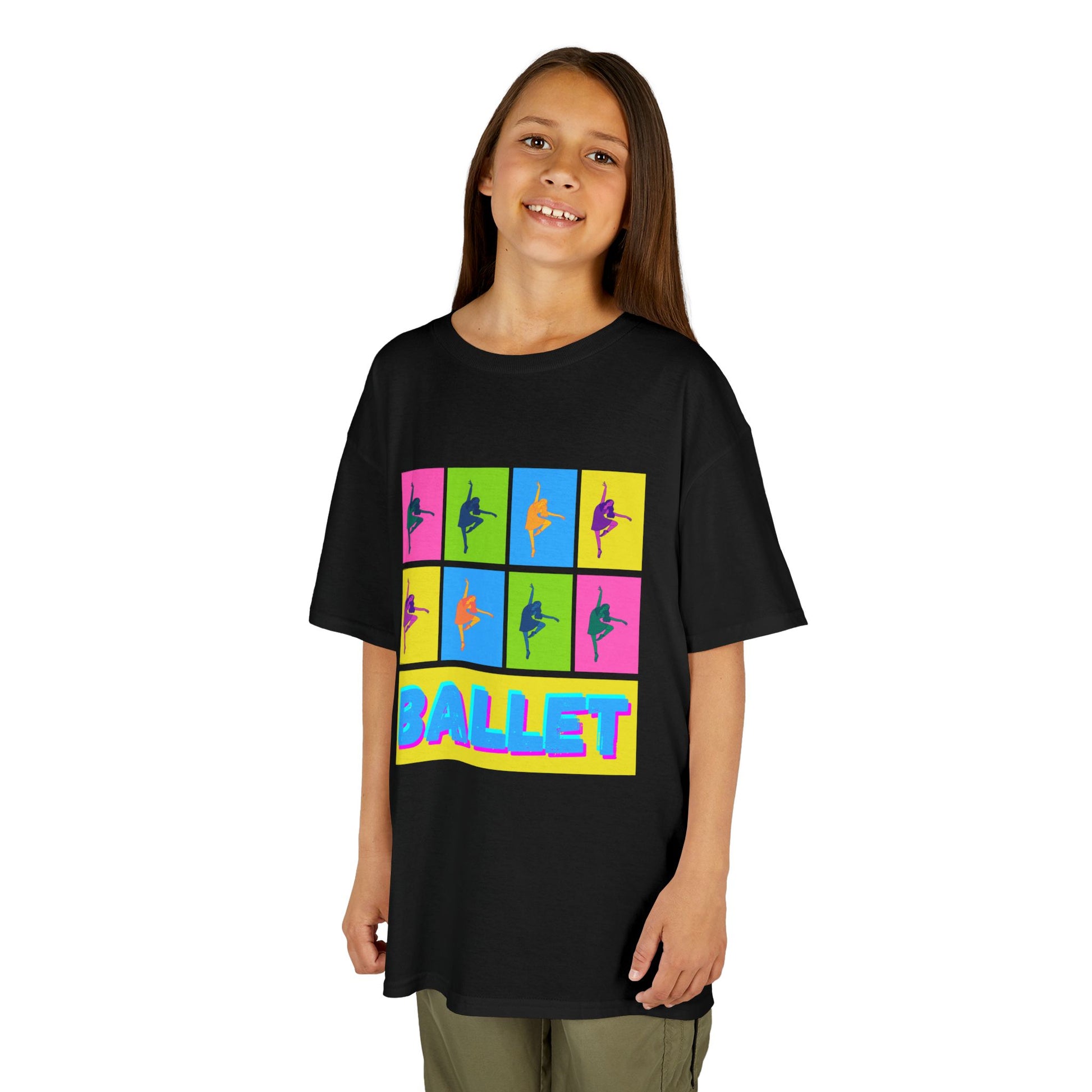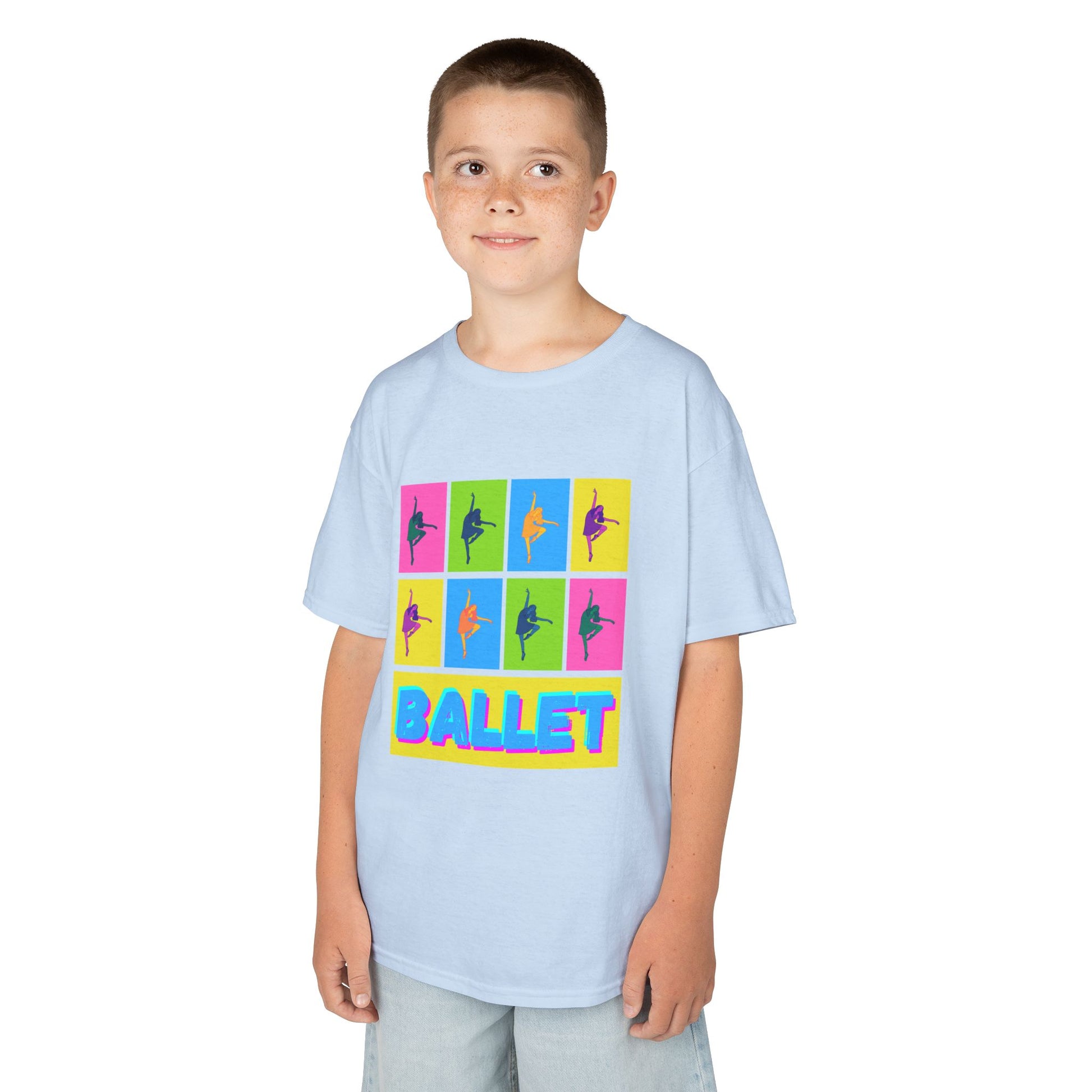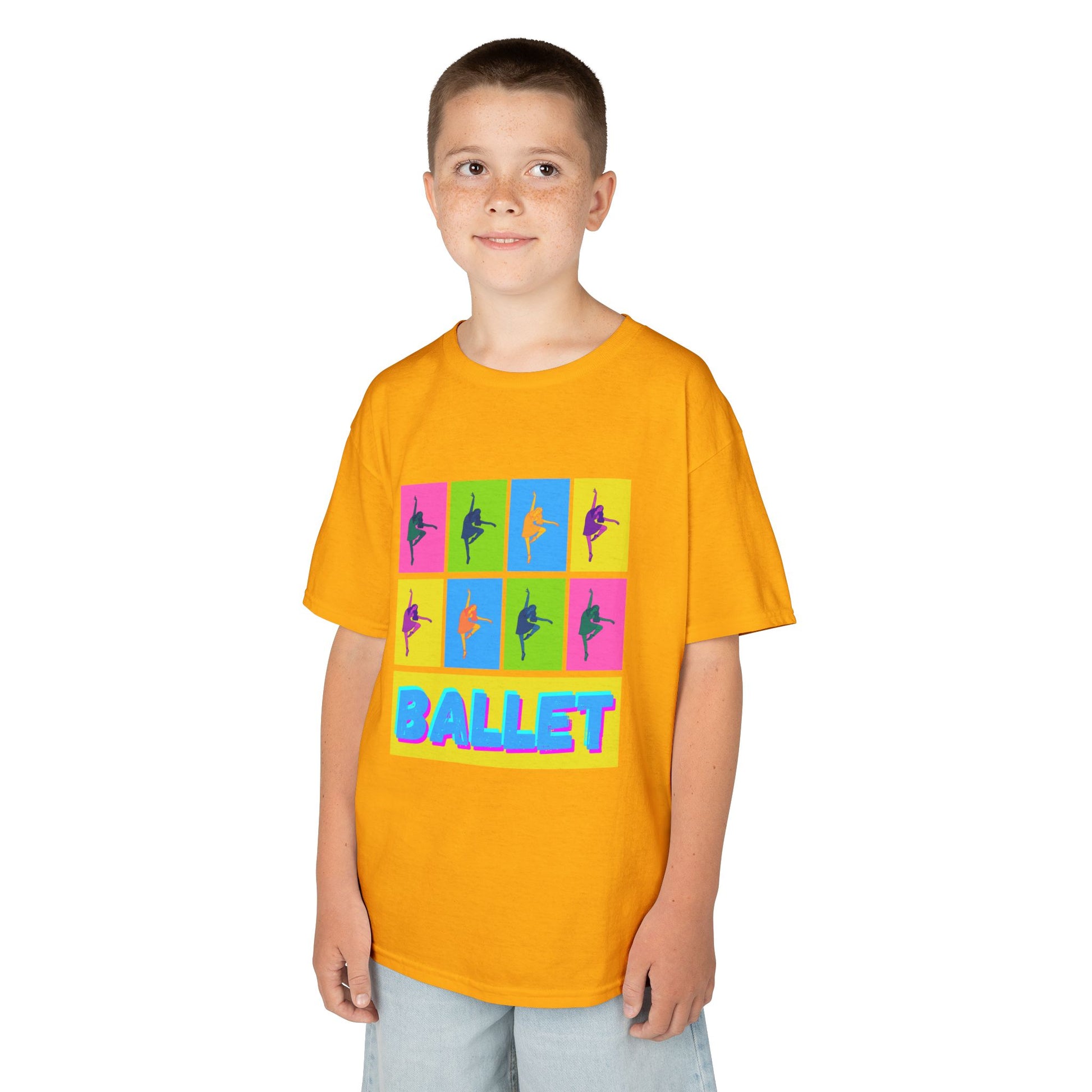 "Ballet" Youth Short Sleeve T-Shirt – Pop Art Inspired Design with Ballet Dancer Graphics – Dance Apparel for Kids