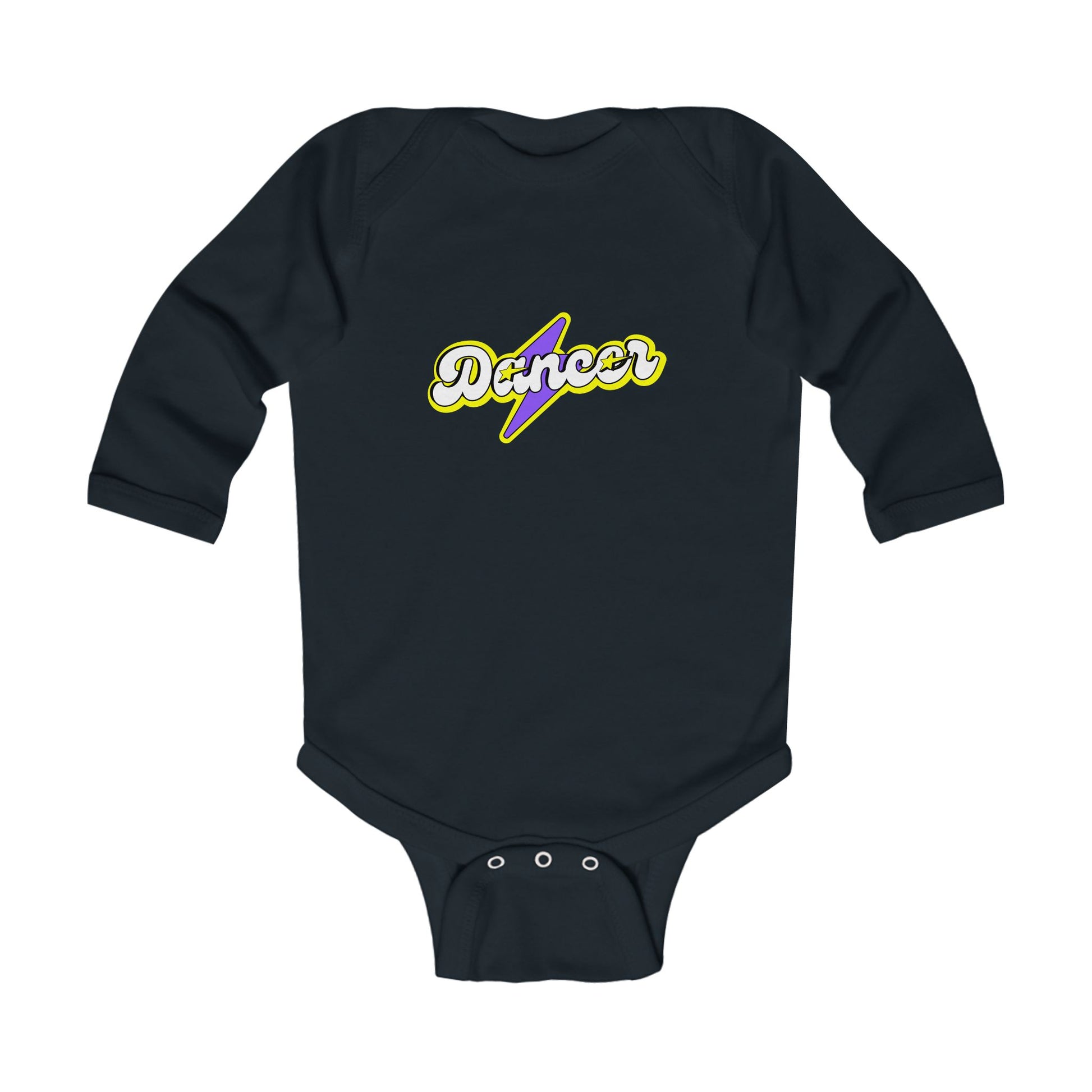 "Dancer" Infant Long Sleeve Bodysuit – Superhero-Inspired Dance Graphic Baby Outfit for Future Performers