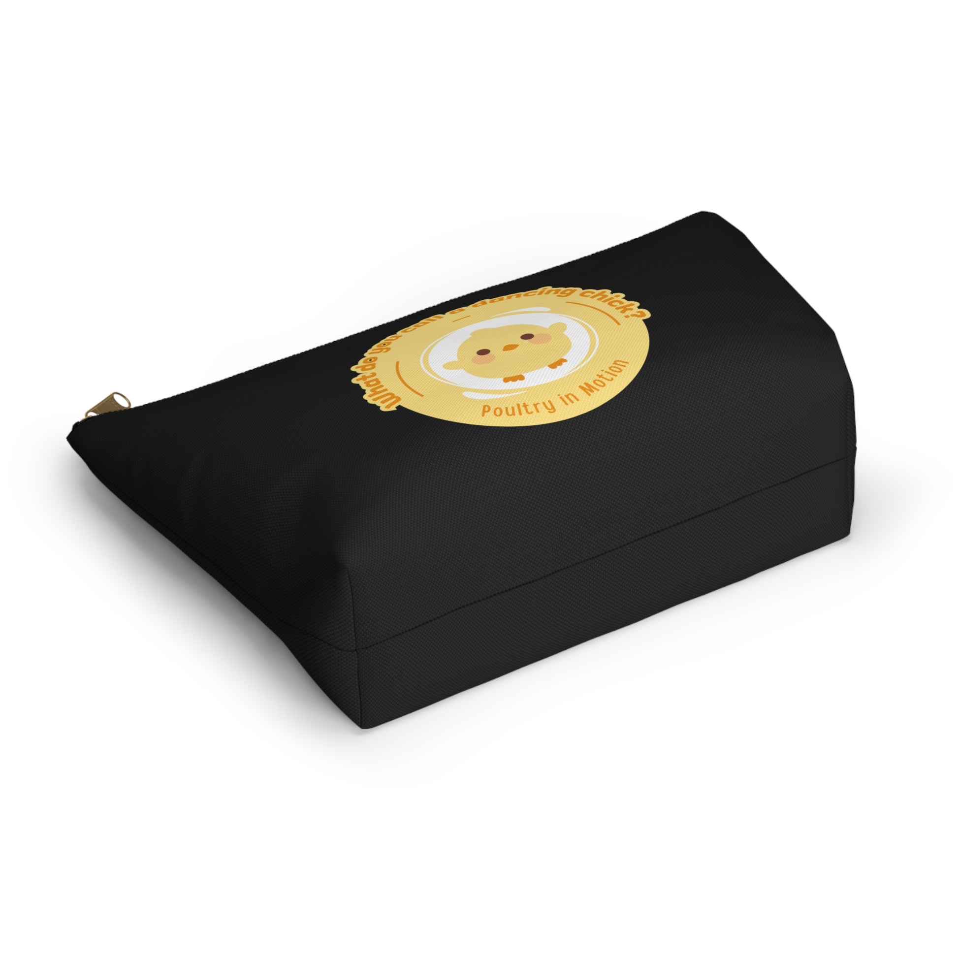 What do you call a dancing chick? Poultry in Motion, of course! 🐥💃 Add a side of humor to your everyday routine with this adorable makeup bag featuring a pun-tastic quote and a cute dancing chicken graphic that’s sure to make you (and everyone else) smile.