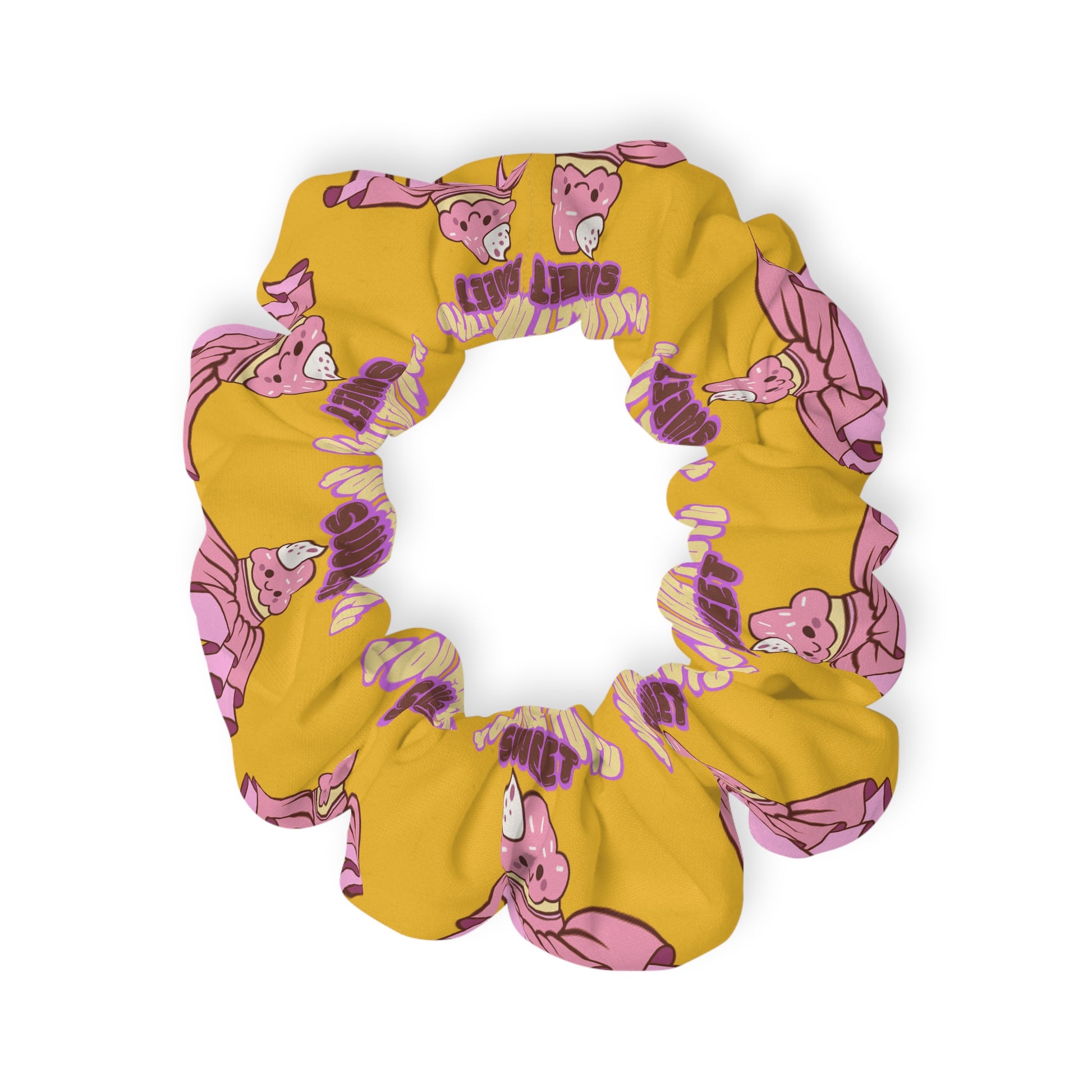 Made from soft yet sturdy polyester jersey knit, this scrunchie is as comfortable as it is eye-catching. With its vibrant colors and playful all-over print, it's a must-have for anyone who loves dance, desserts, or delightful accessories.
