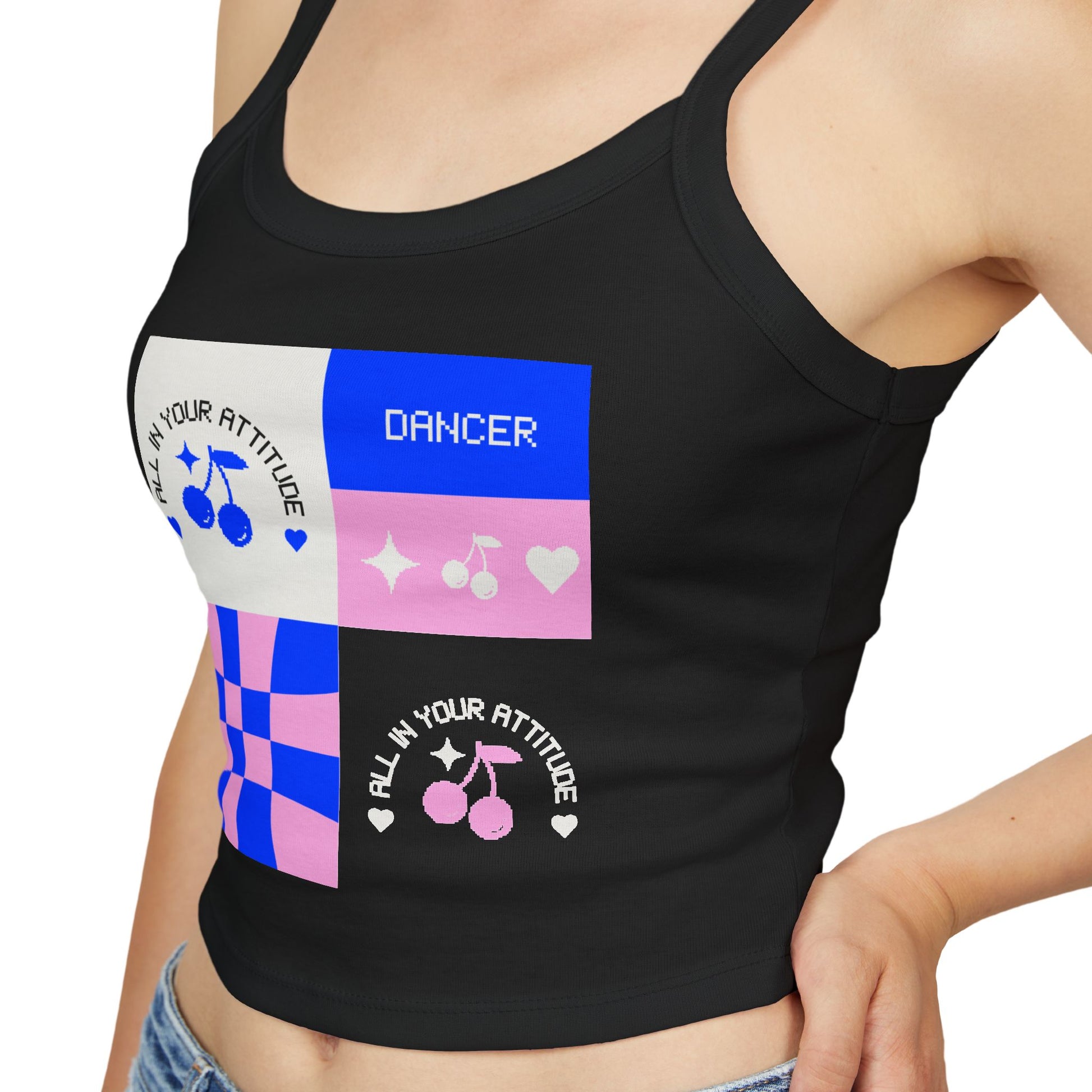 "Dancer – All in Your Attitude" Women’s Spaghetti Strap Tank Top – Retro Dance Graphic | Bold & Stylish Tank for Confident Dancers and Performers
