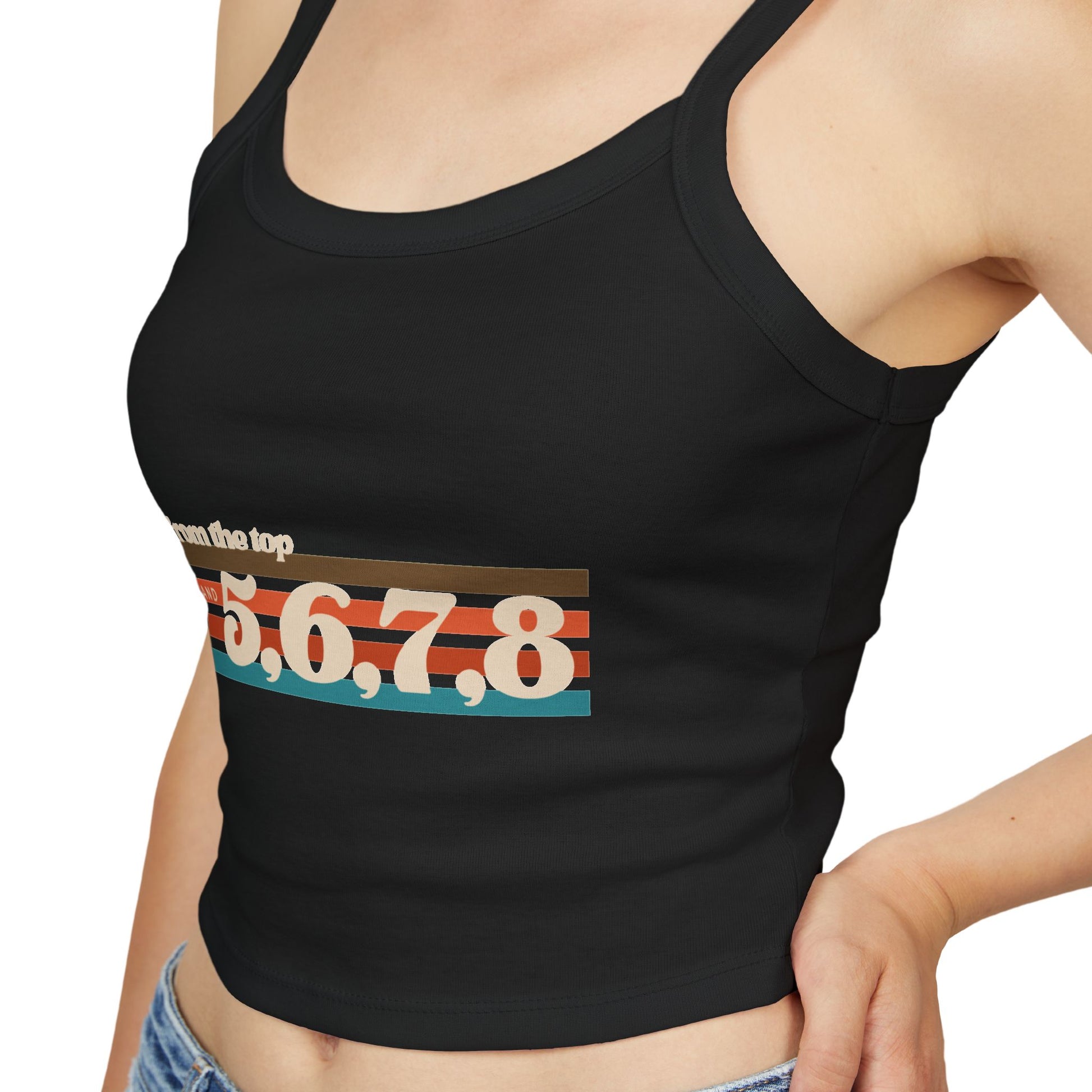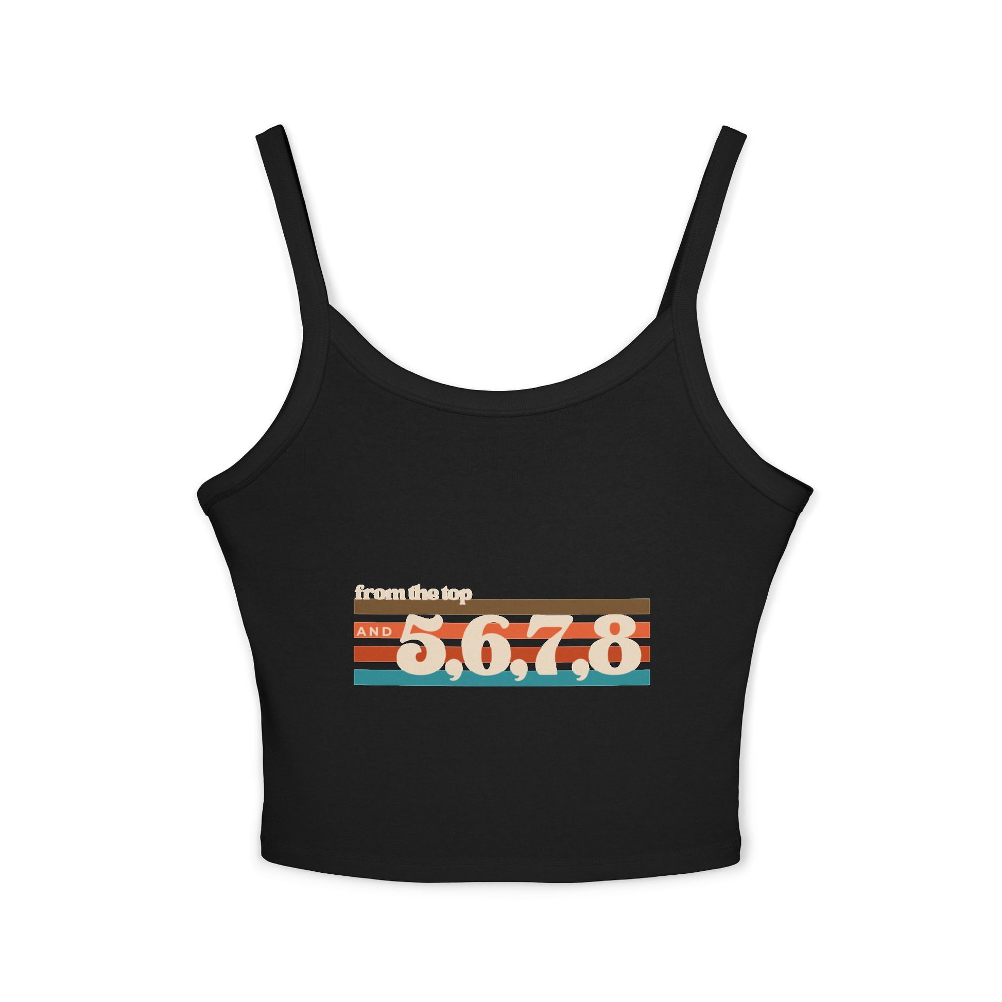 "From the Top and 5, 6, 7, 8" Women’s Spaghetti Strap Tank Top – Retro Dance Graphic | Fun Rehearsal Tank for Dancers & Choreographers