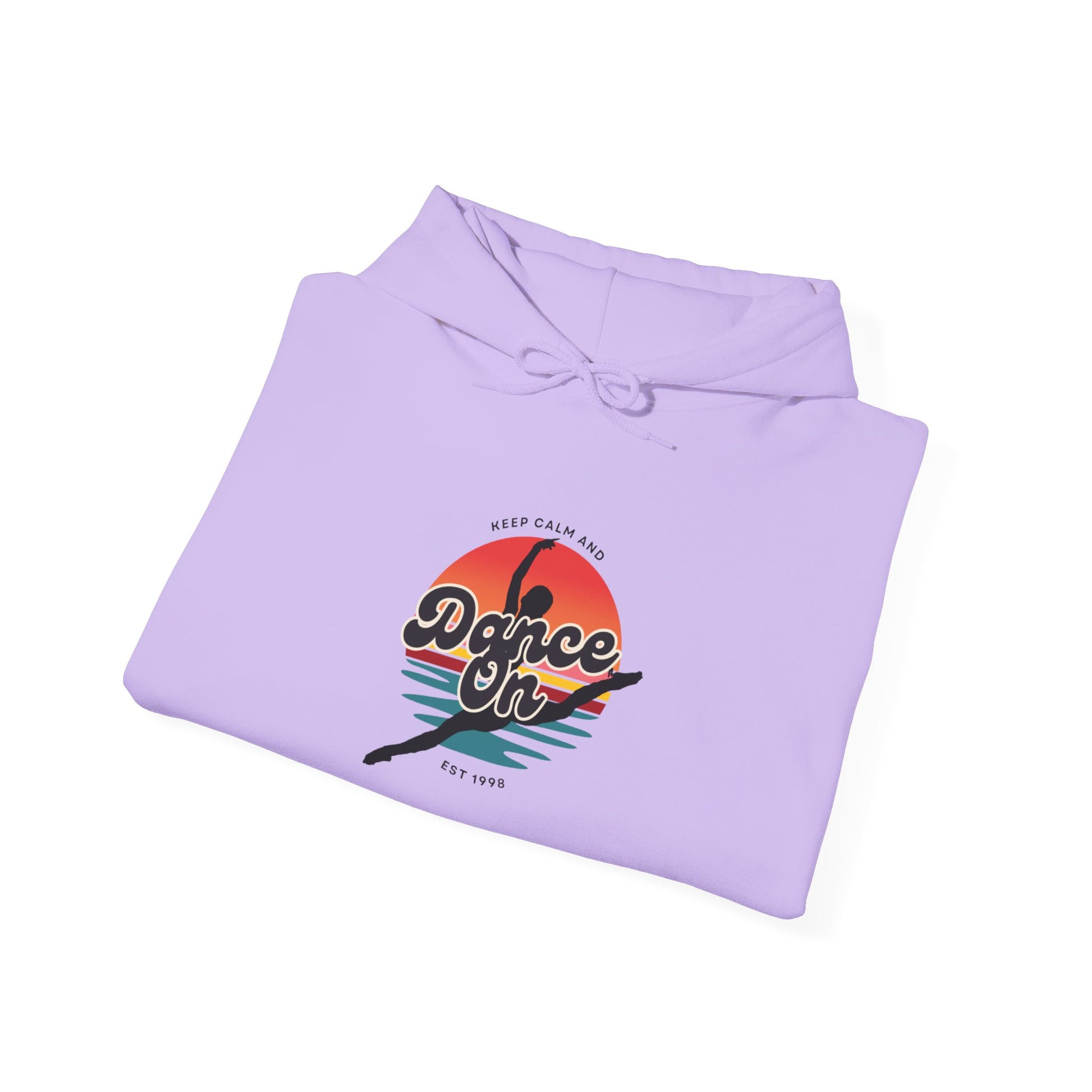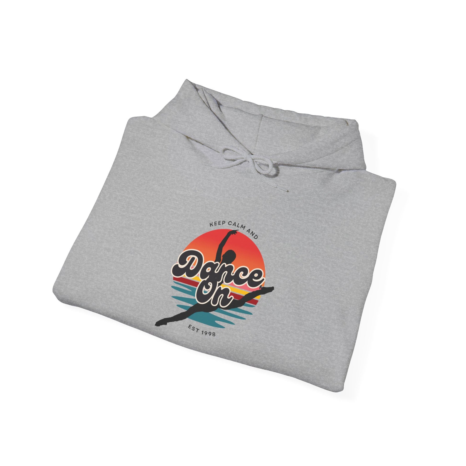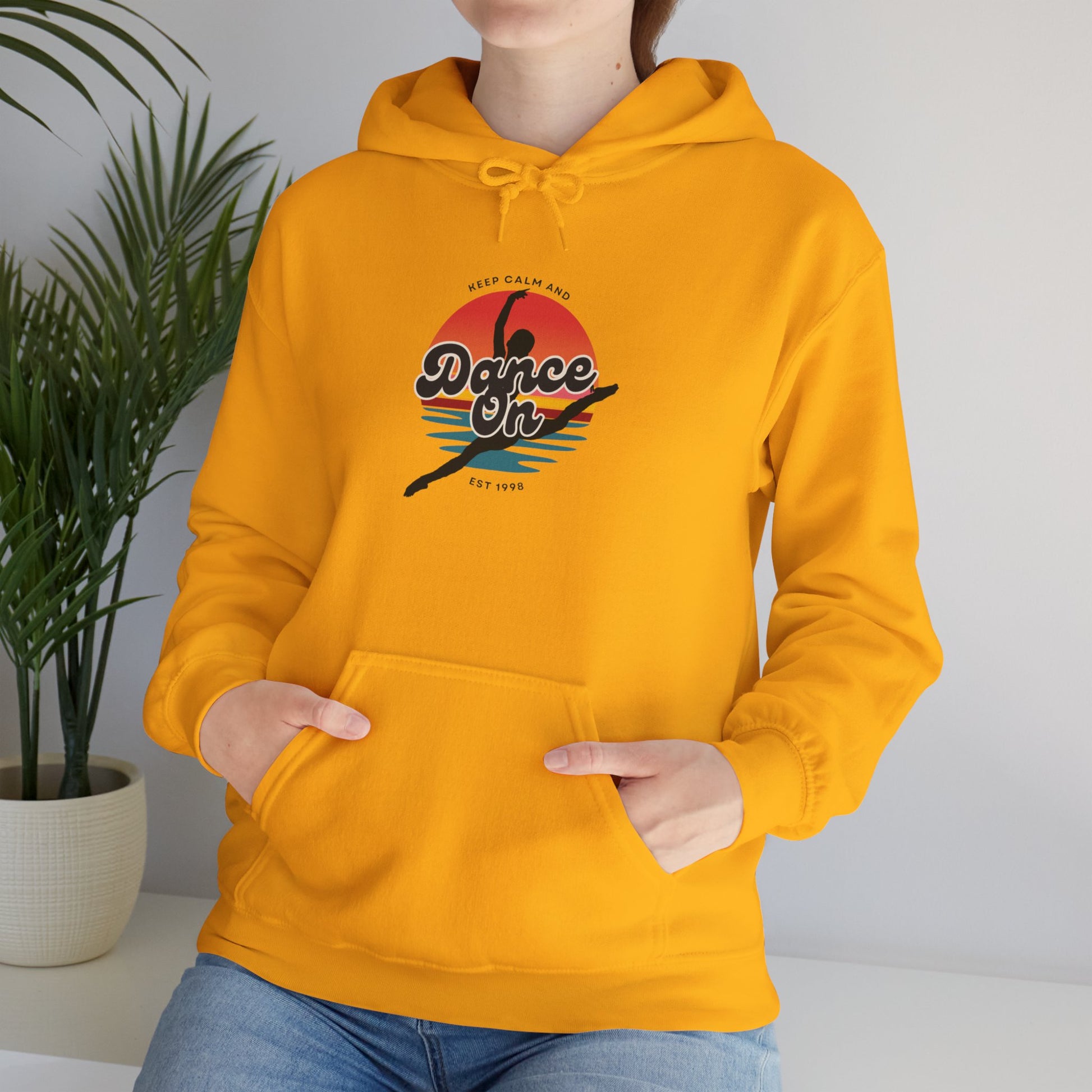 “Keep Calm and Dance On” Retro Hoodie – Unisex Dance-Inspired Hooded Sweatshirt for Dancers & Movement Lovers