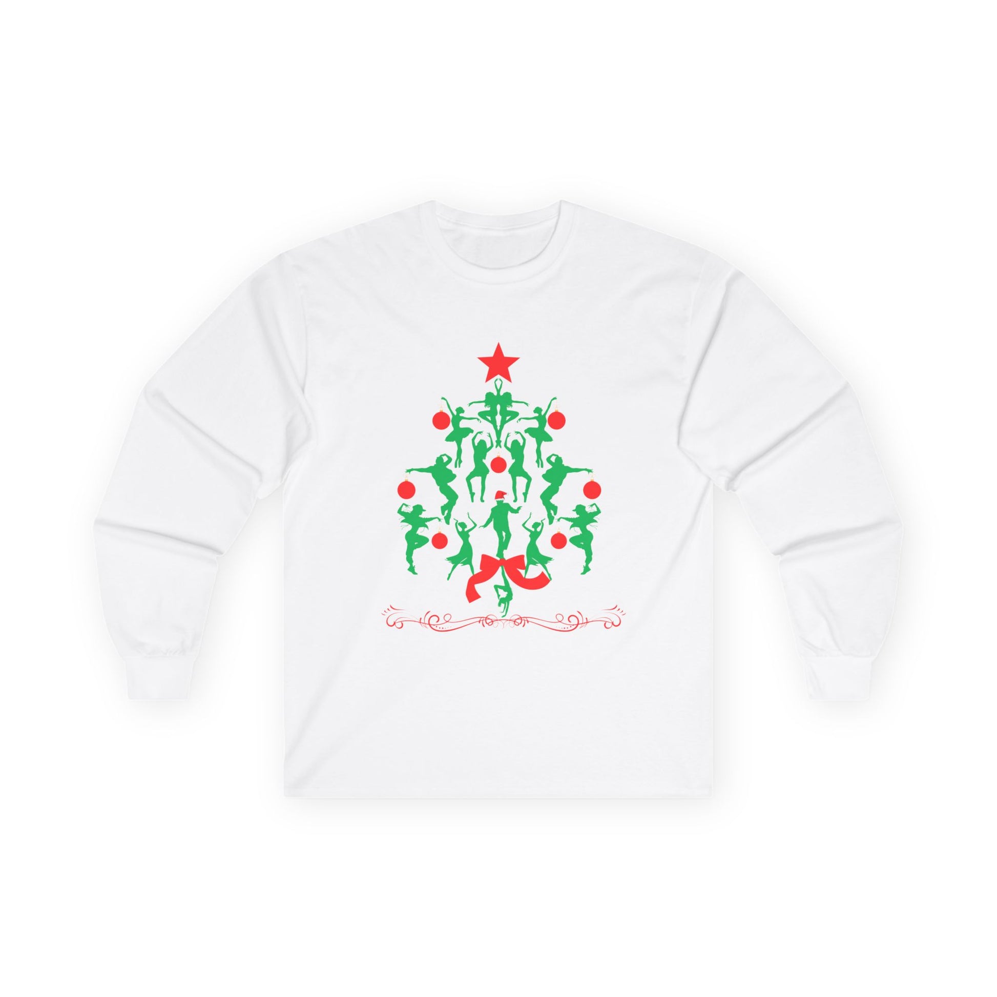 "Christmas Tree Dancer Silhouette" ADULT TEE Unisex Long Sleeve – Festive Ballet & Dance Holiday Tee for Dancers, Teachers, and Studios