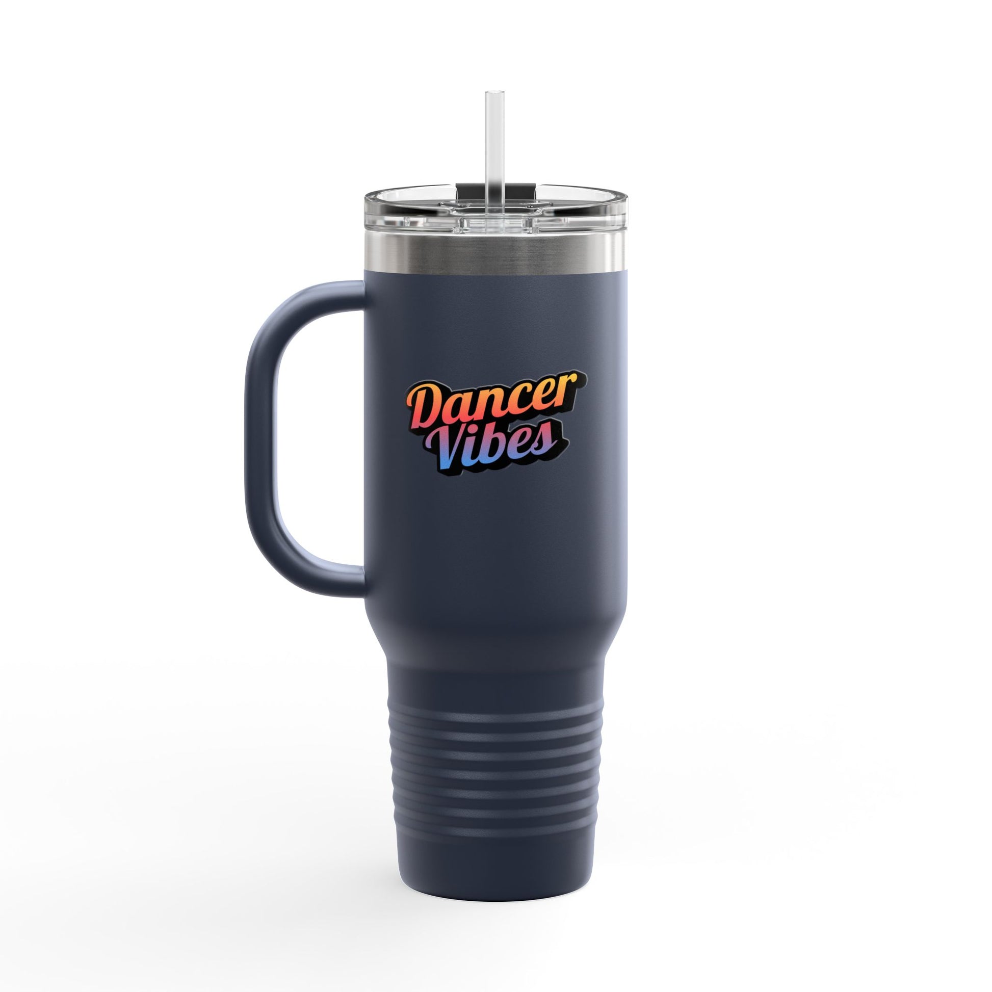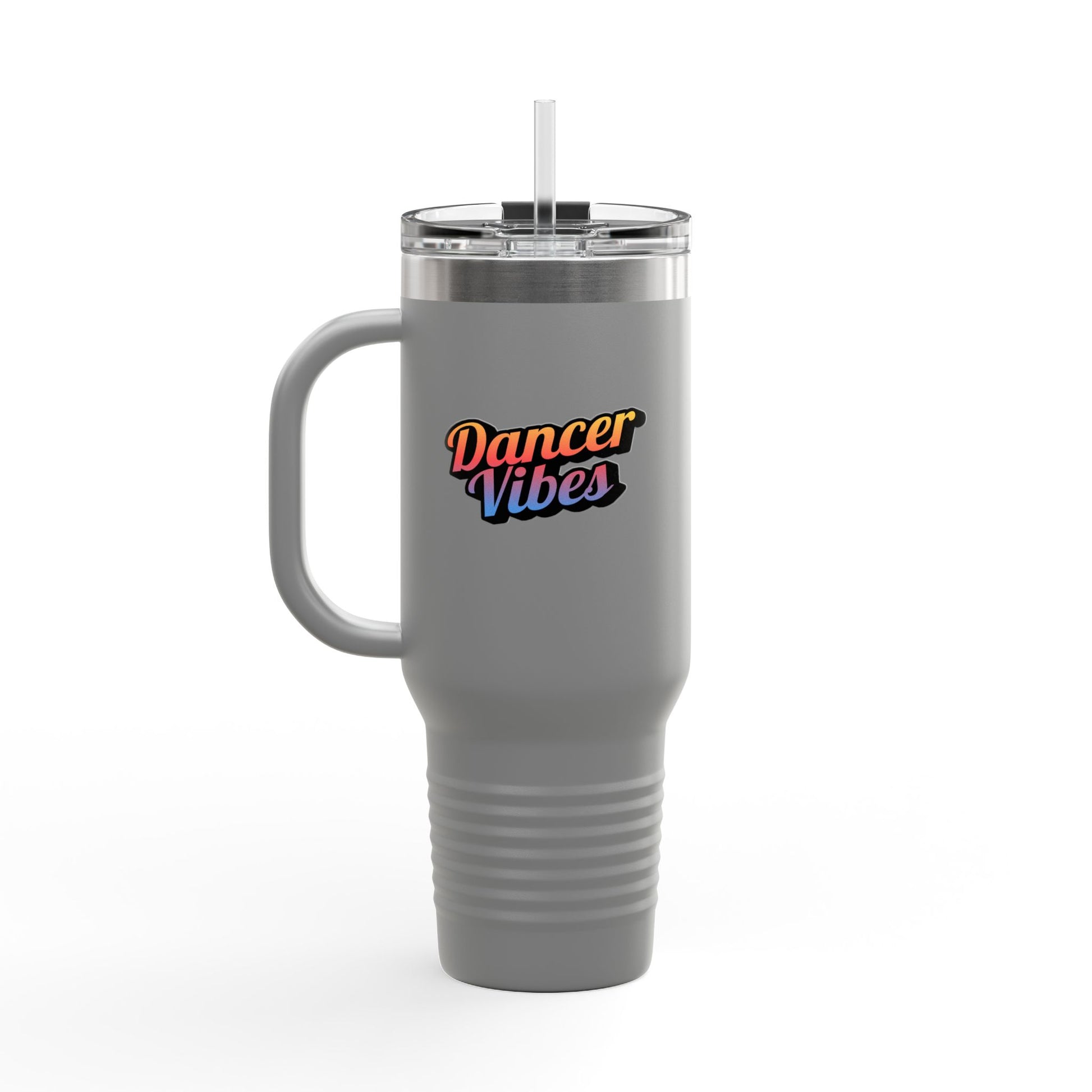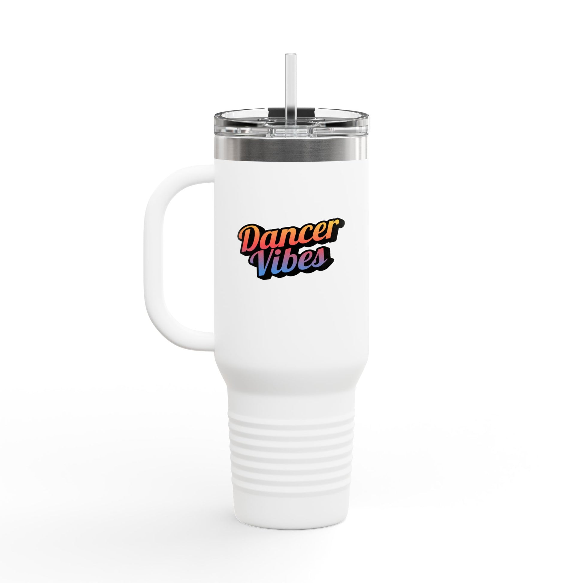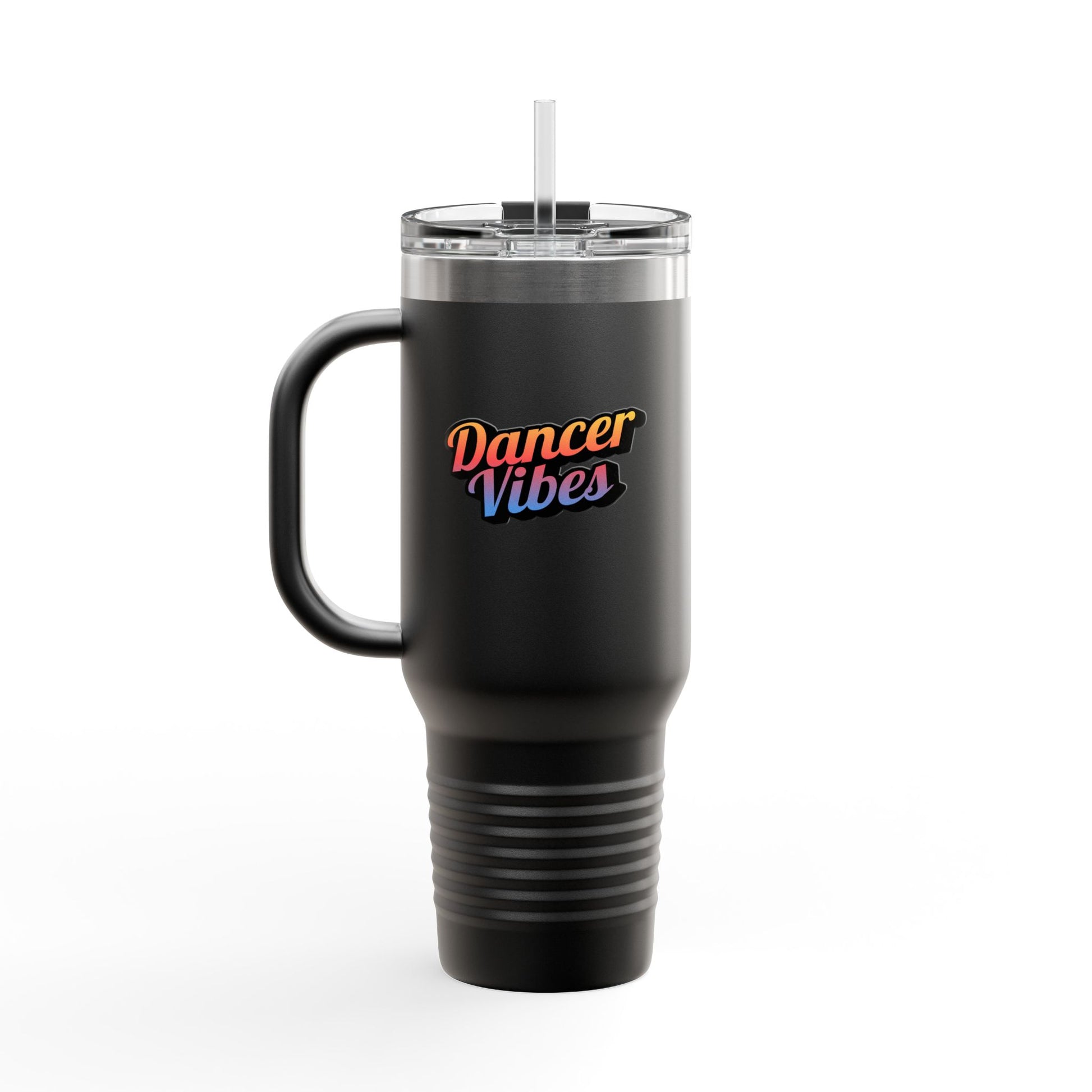 "Dancer Vibes" 40oz Insulated Travel Mug – Retro-Inspired Stainless Steel Tumbler for Dance Lovers | Hot & Cold Beverage Travel Cup with Handle and Leak-Proof Lid