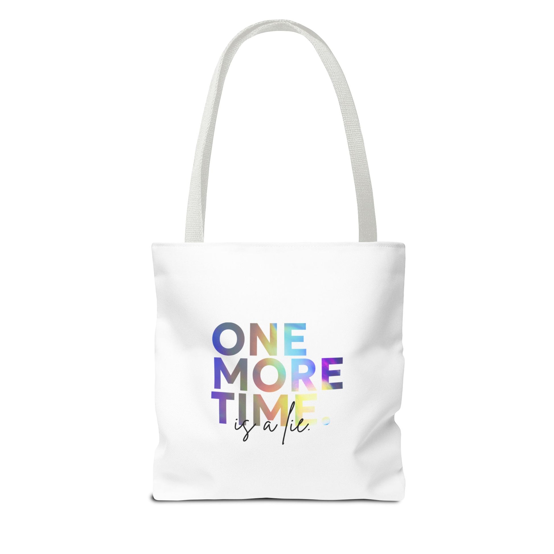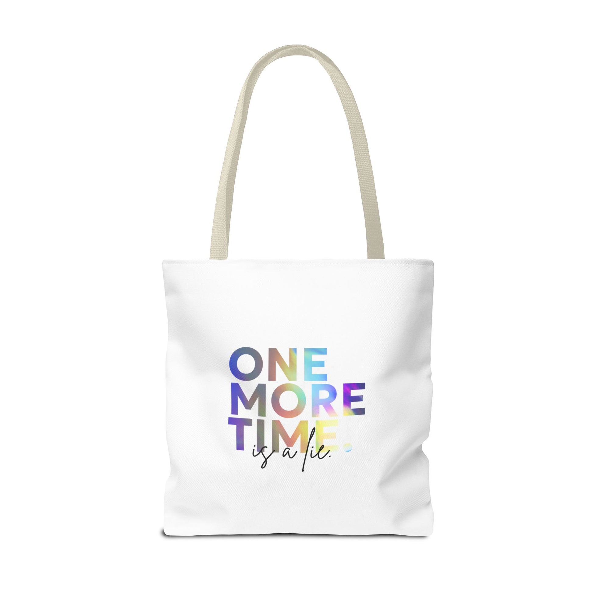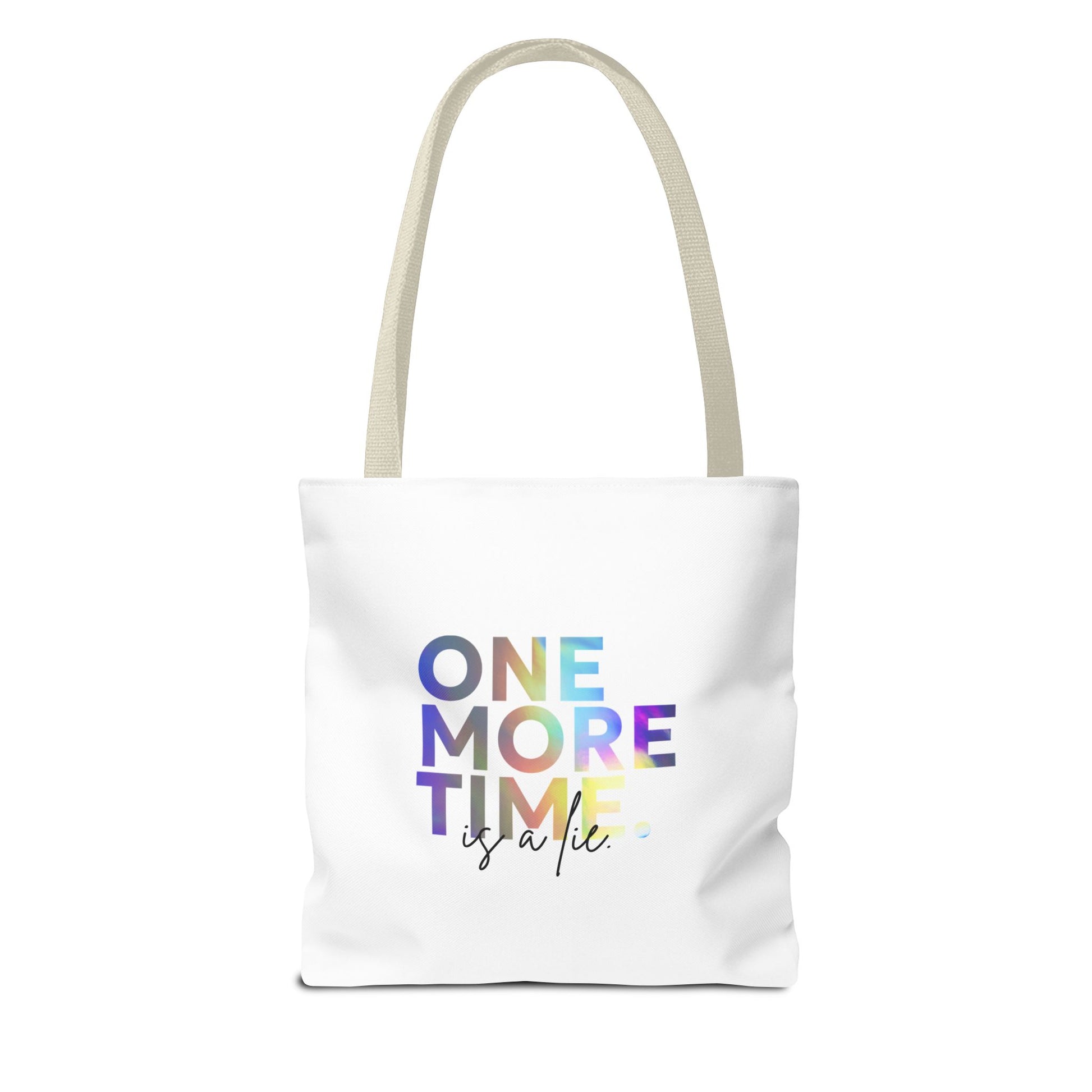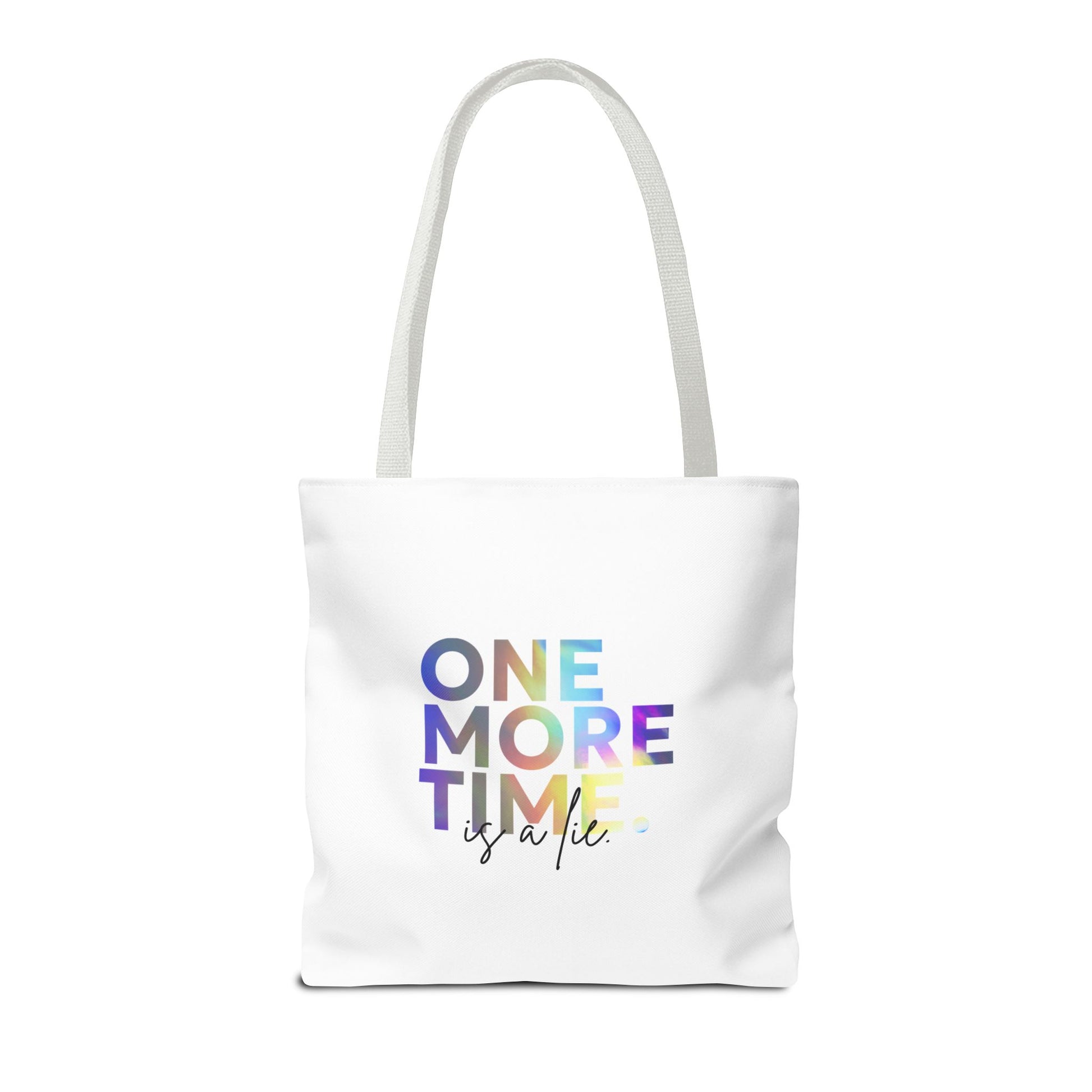 "One More Time Is a Lie" Dance Quote Canvas Tote Bag – Funny Colorful Text Graphic Dance Bag for Rehearsals, Studio & Everyday Use