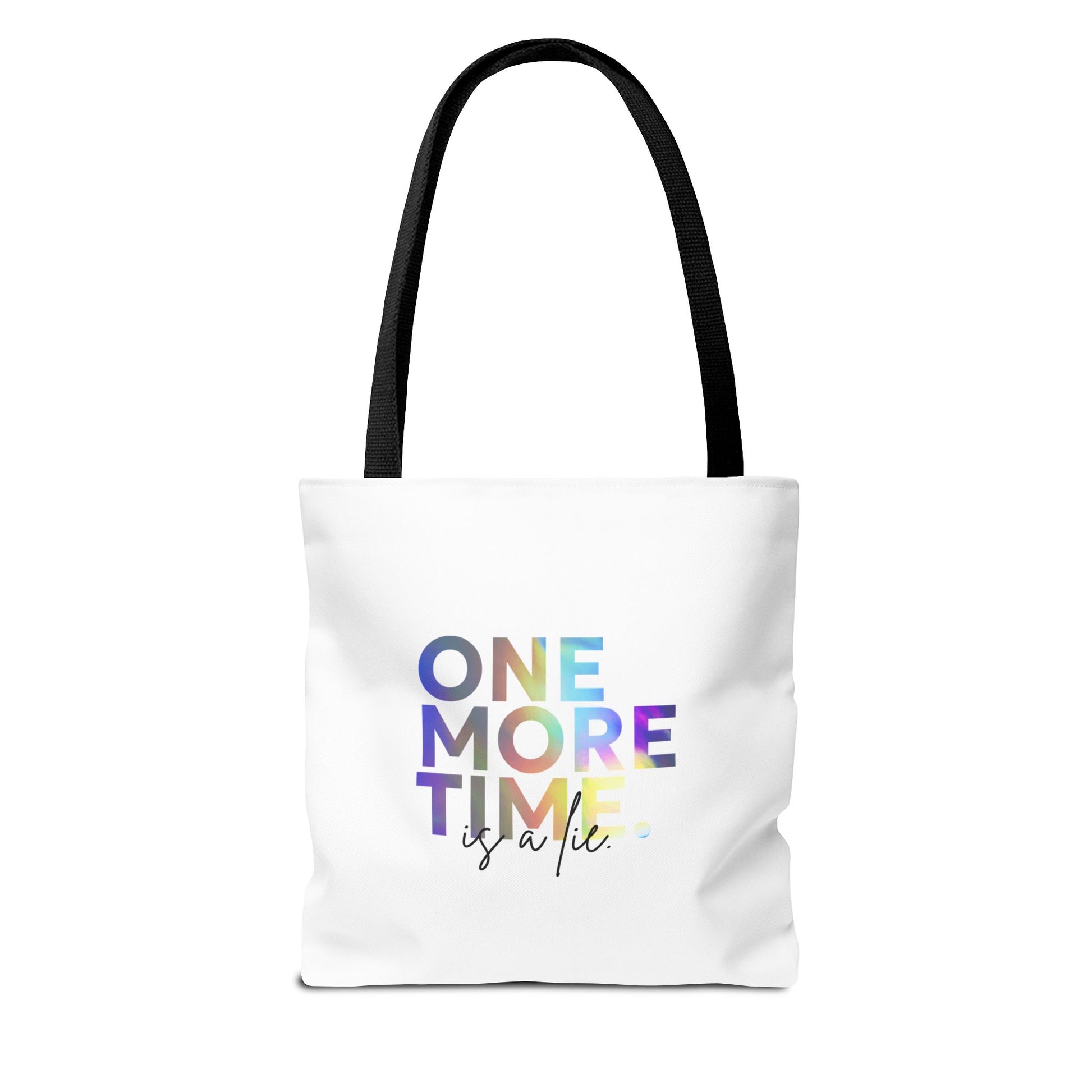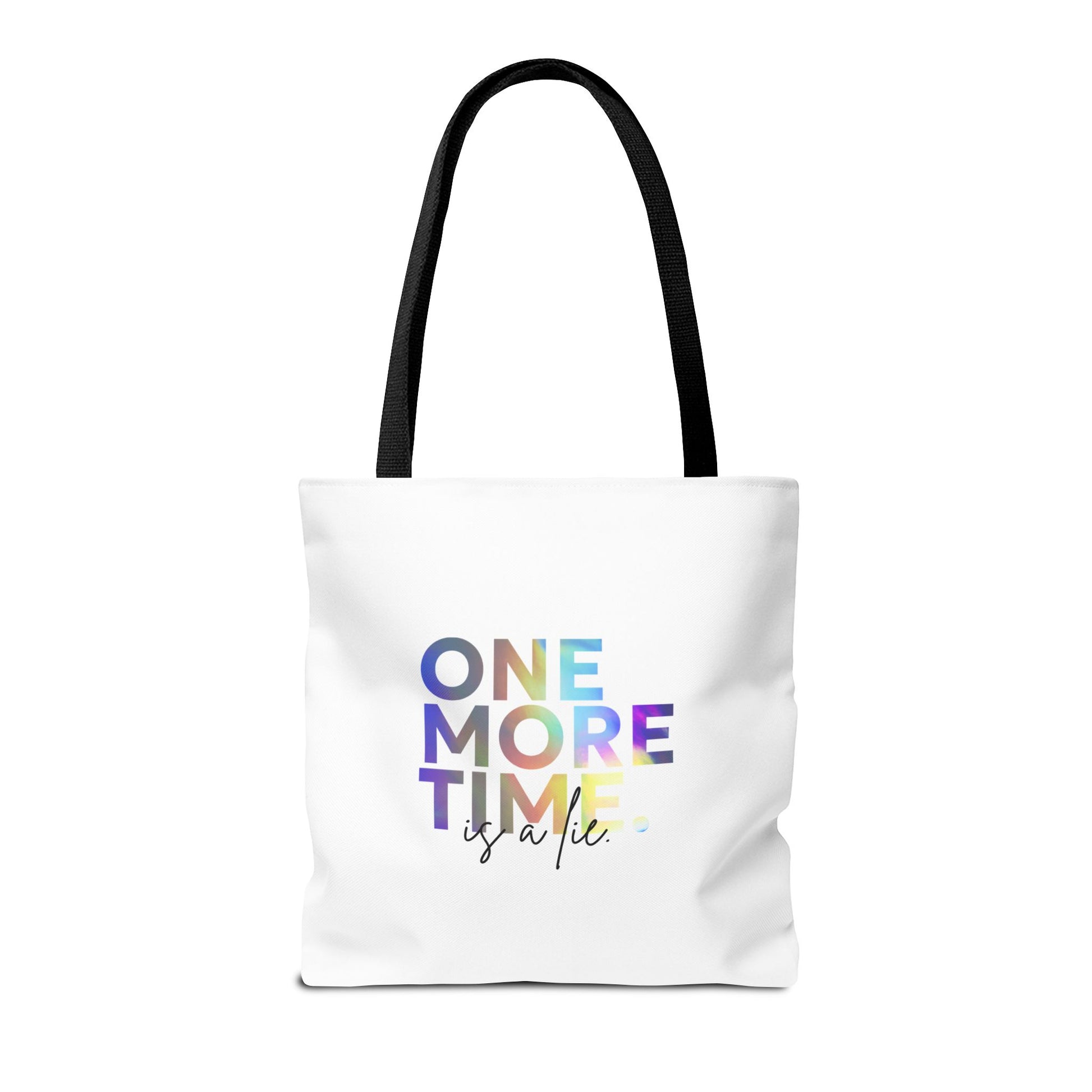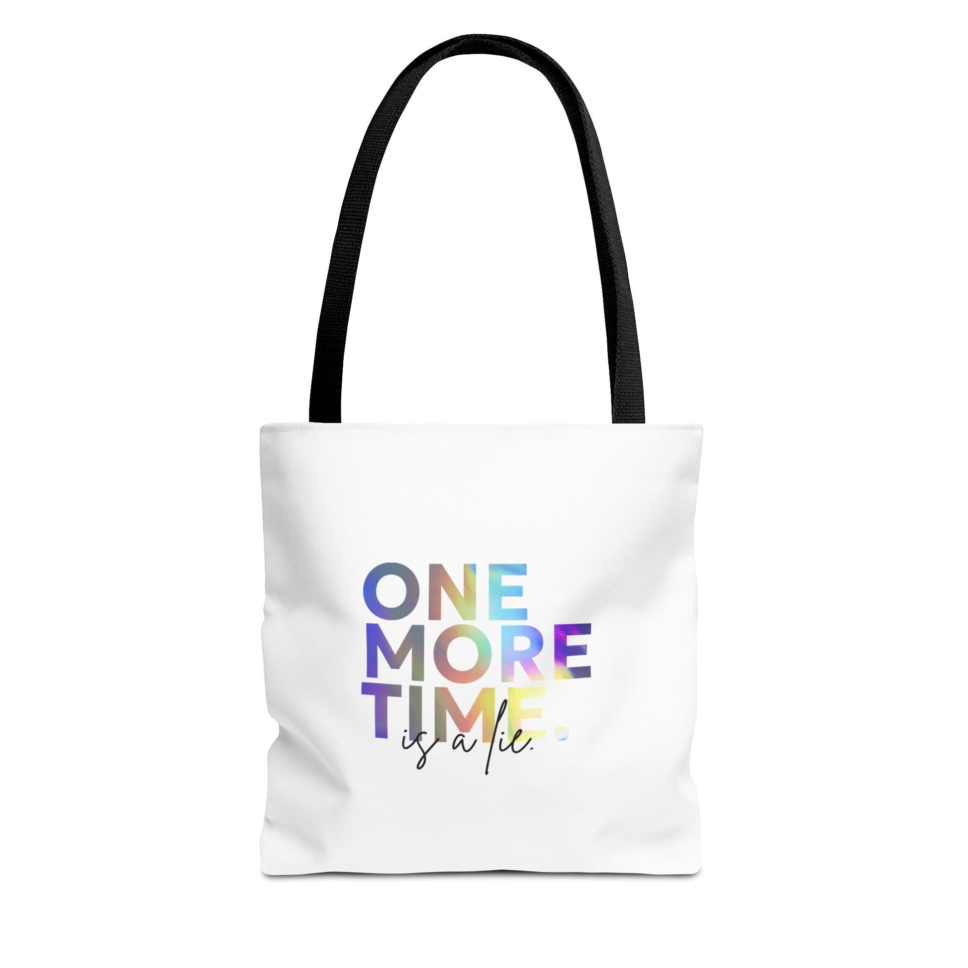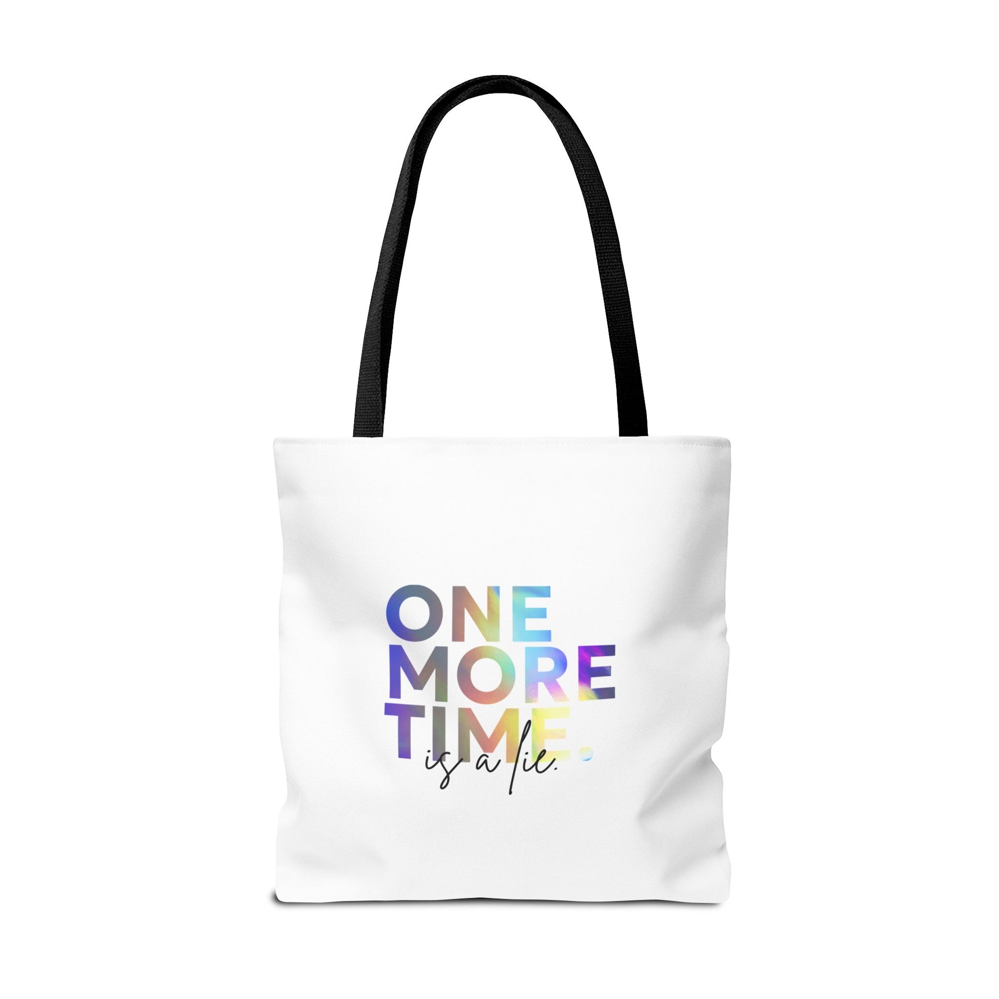 "One More Time Is a Lie" Dance Quote Canvas Tote Bag – Funny Colorful Text Graphic Dance Bag for Rehearsals, Studio & Everyday Use