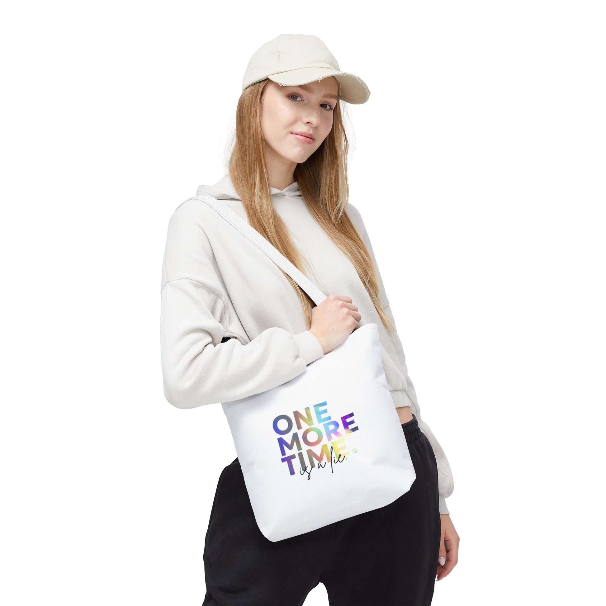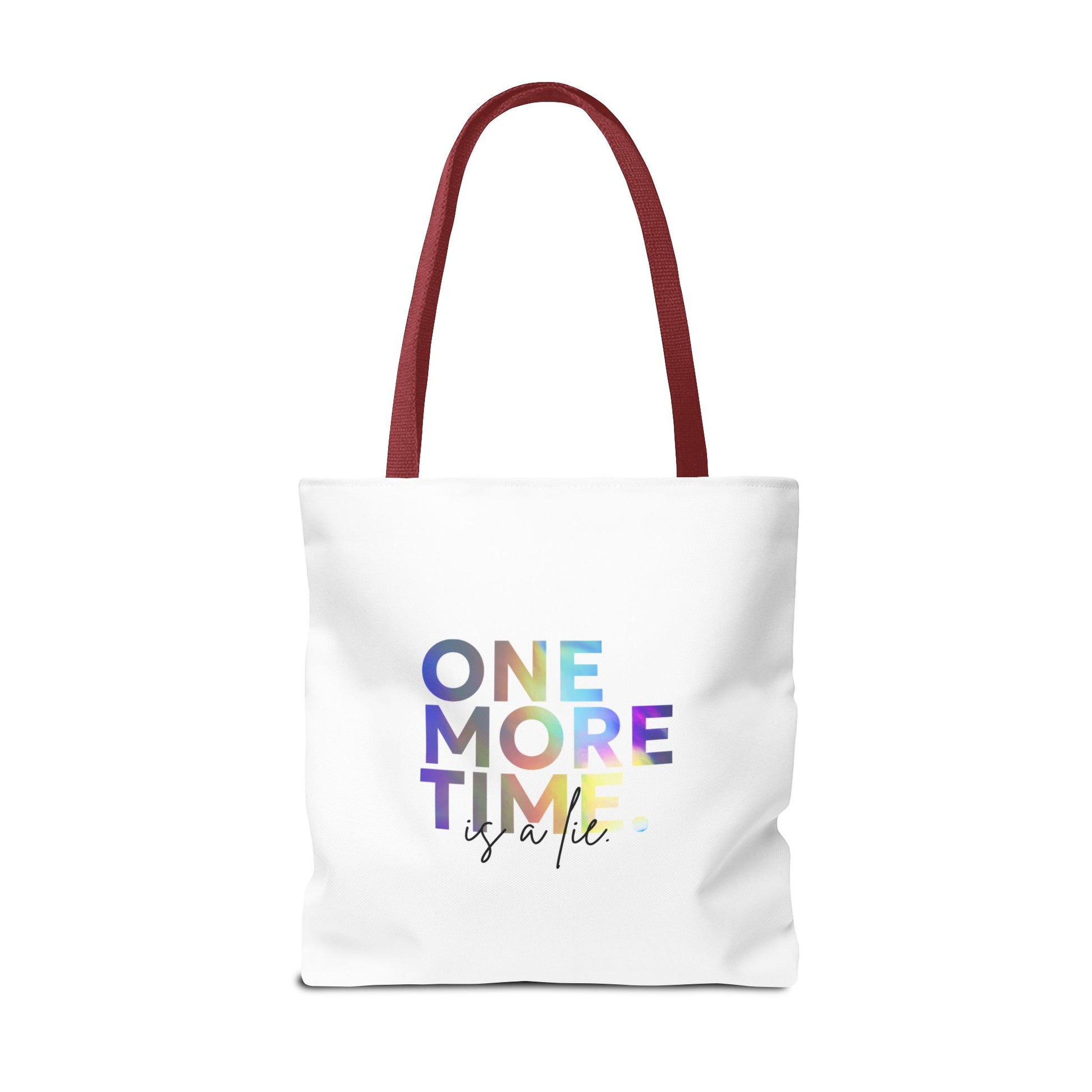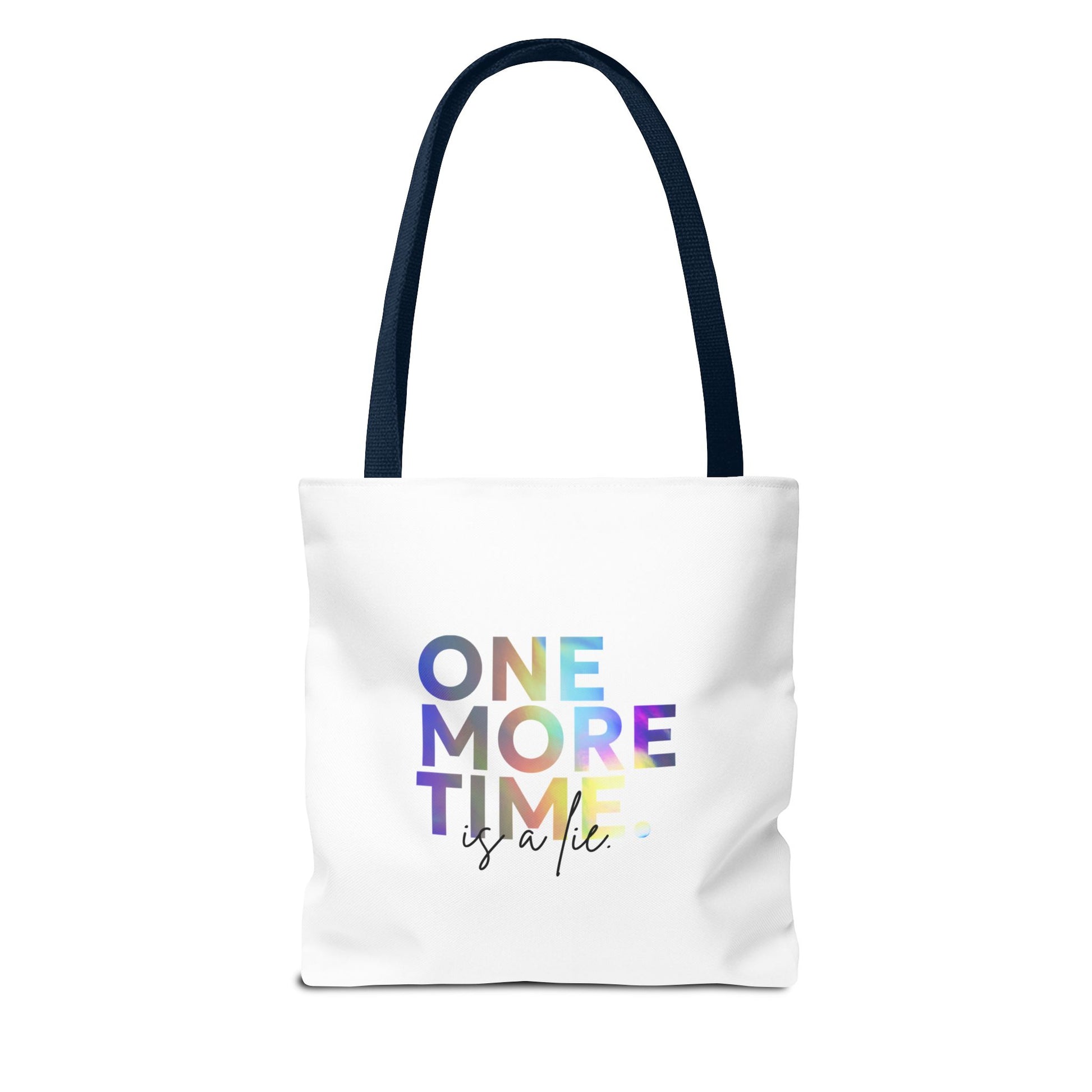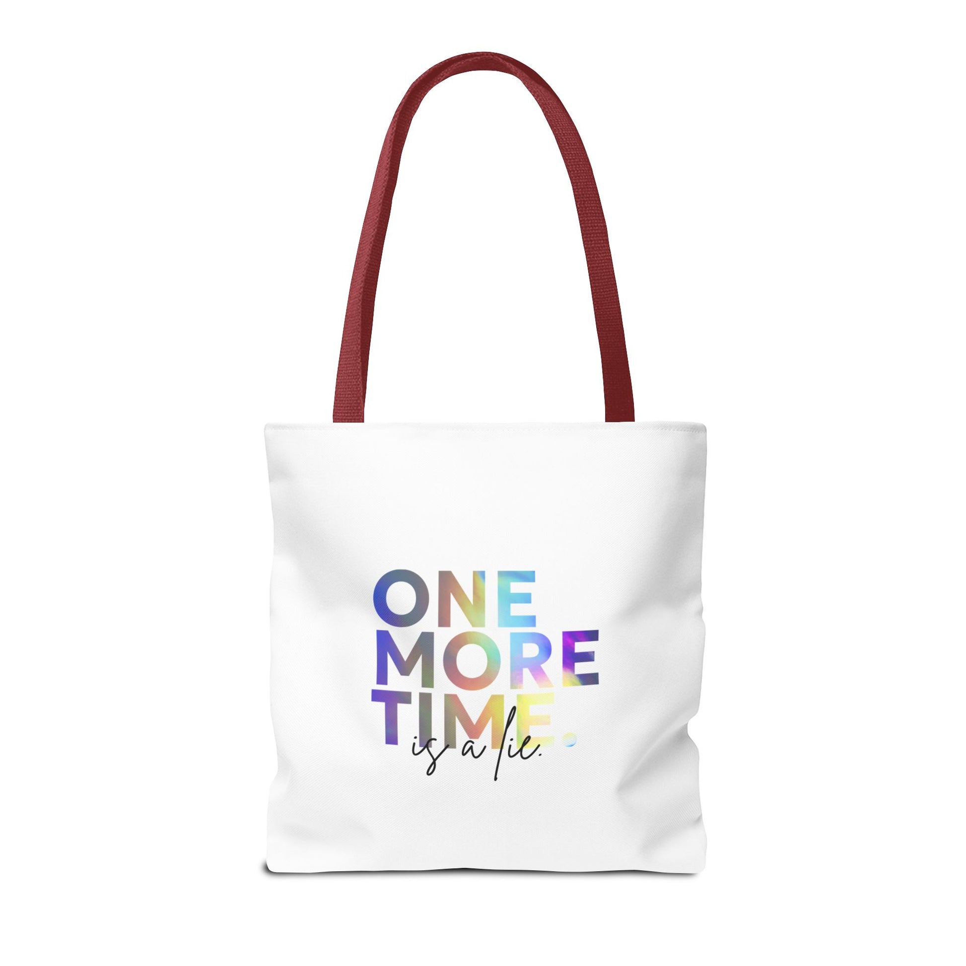 "One More Time Is a Lie" Dance Quote Canvas Tote Bag – Funny Colorful Text Graphic Dance Bag for Rehearsals, Studio & Everyday Use