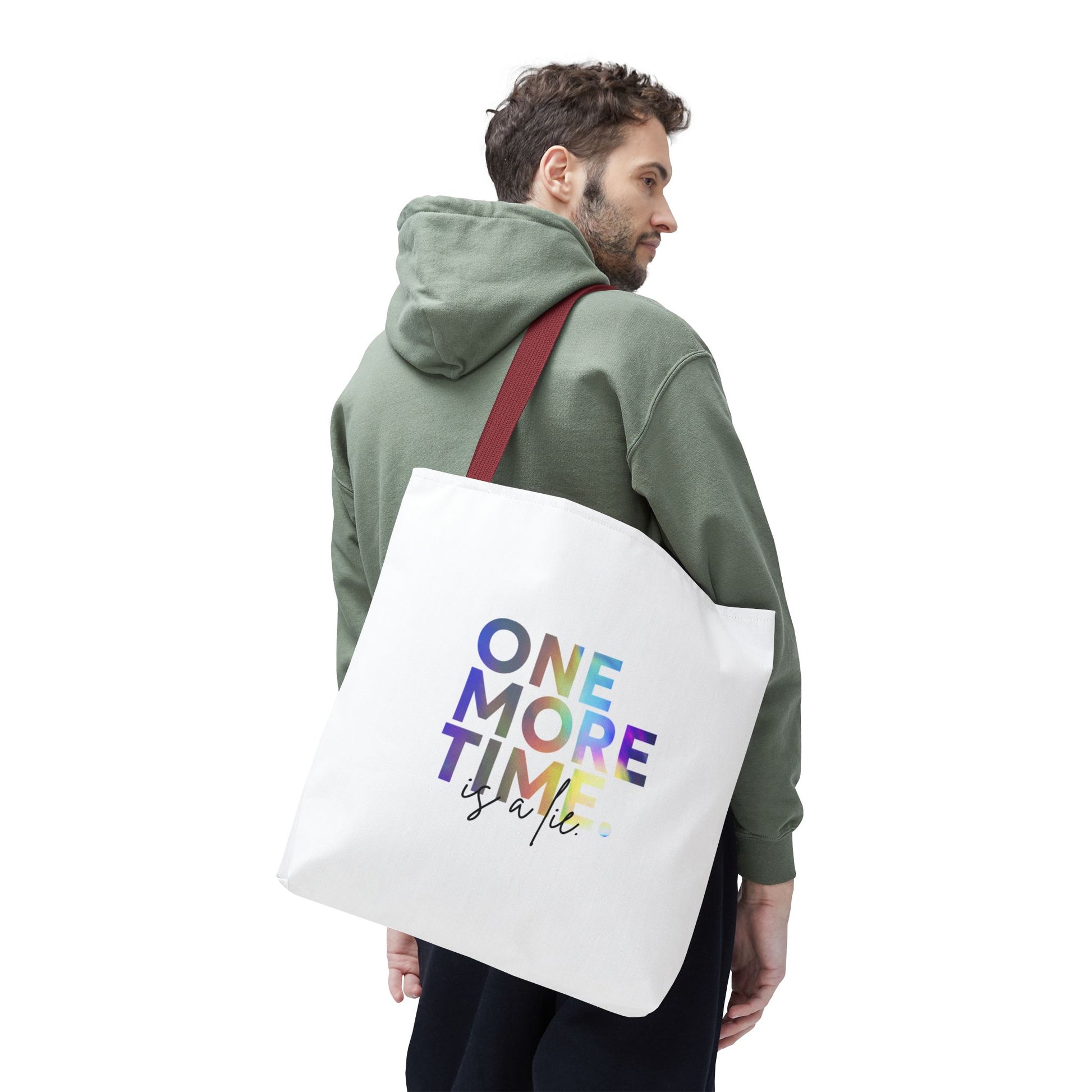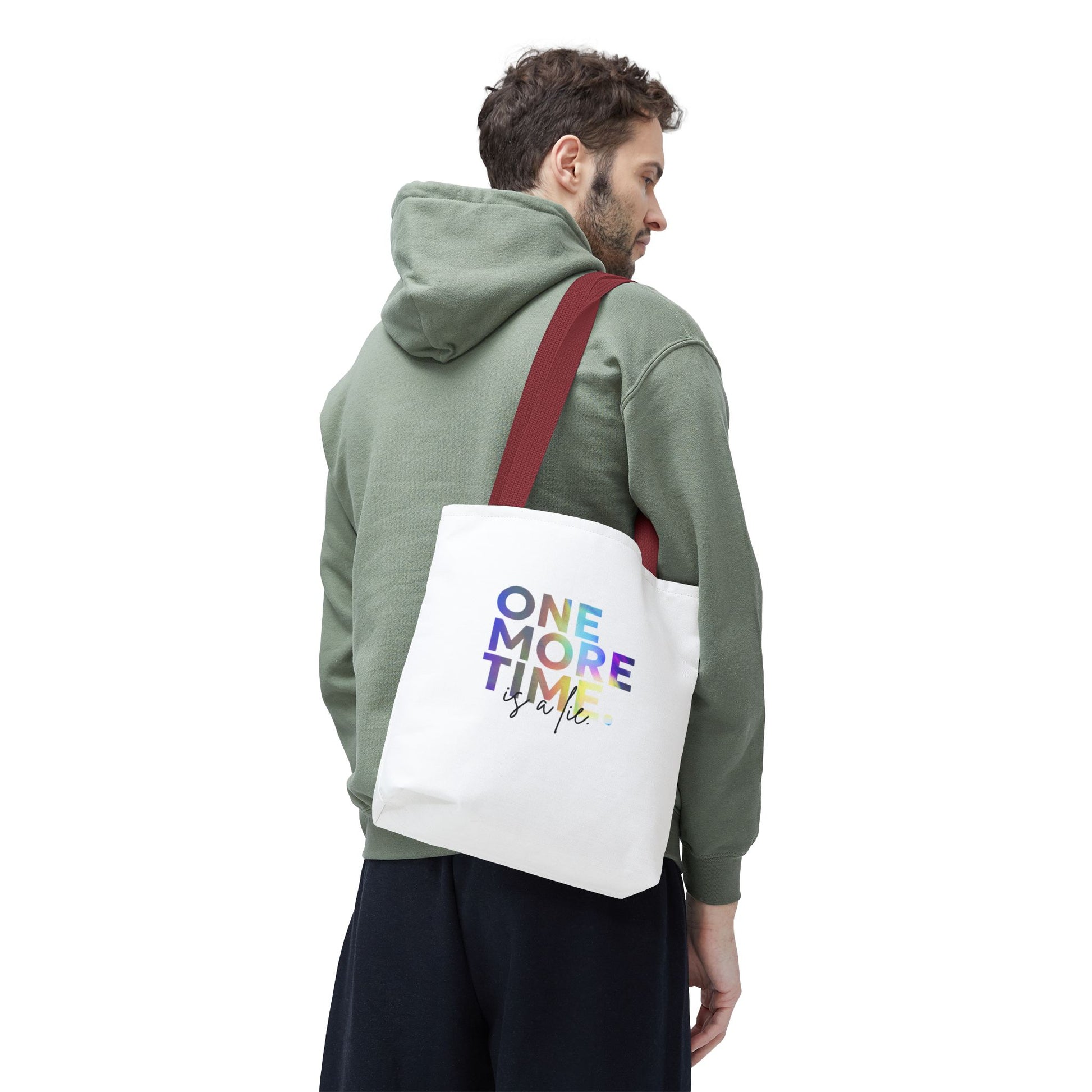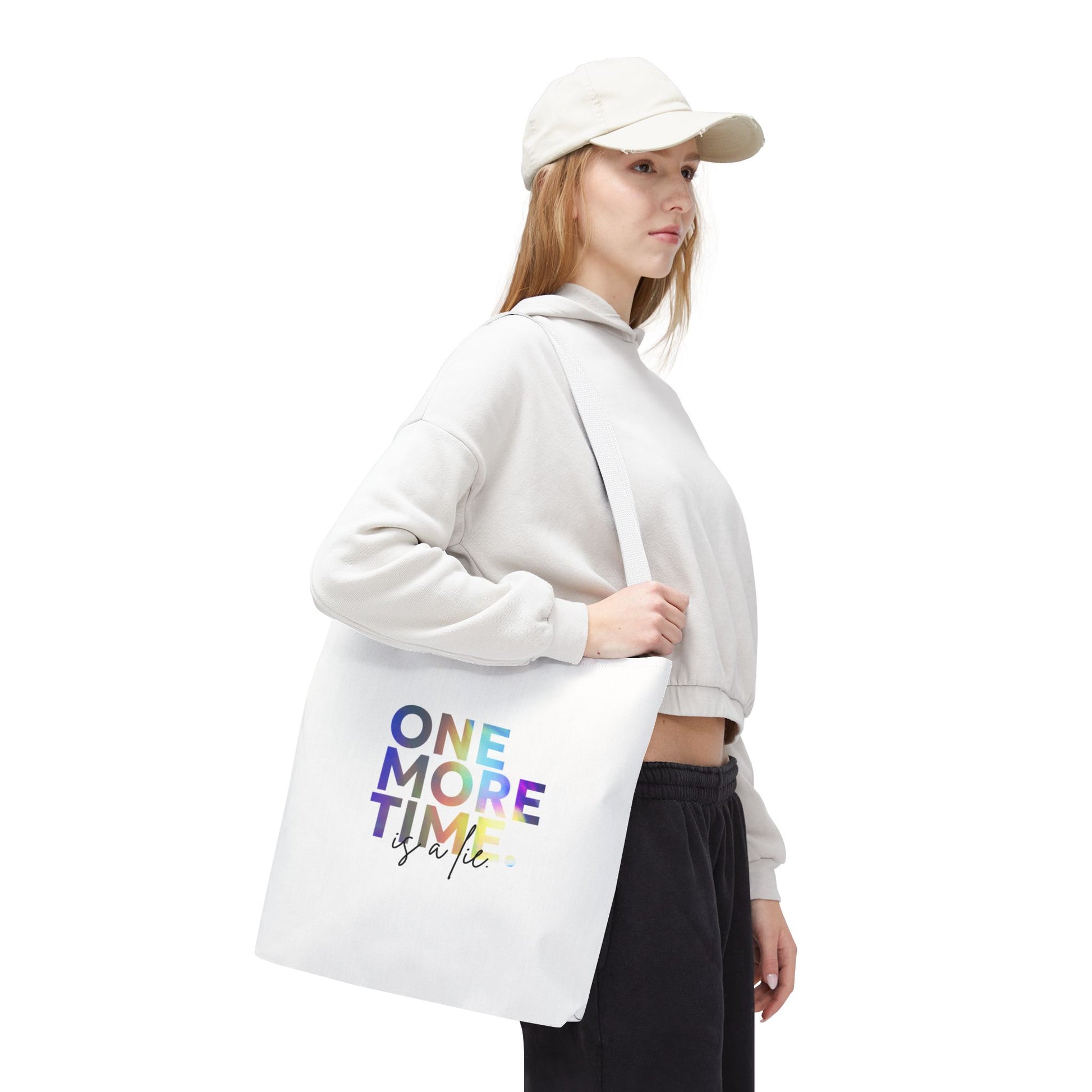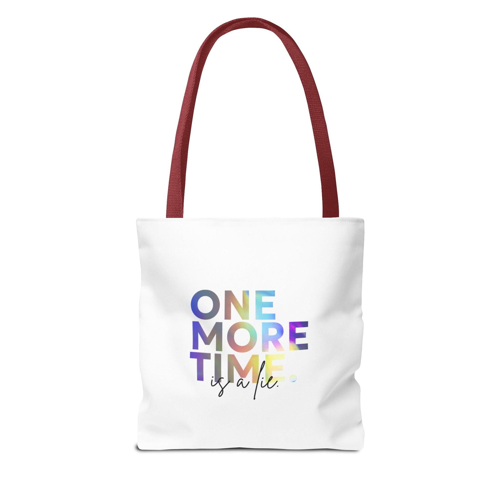 "One More Time Is a Lie" Dance Quote Canvas Tote Bag – Funny Colorful Text Graphic Dance Bag for Rehearsals, Studio & Everyday Use