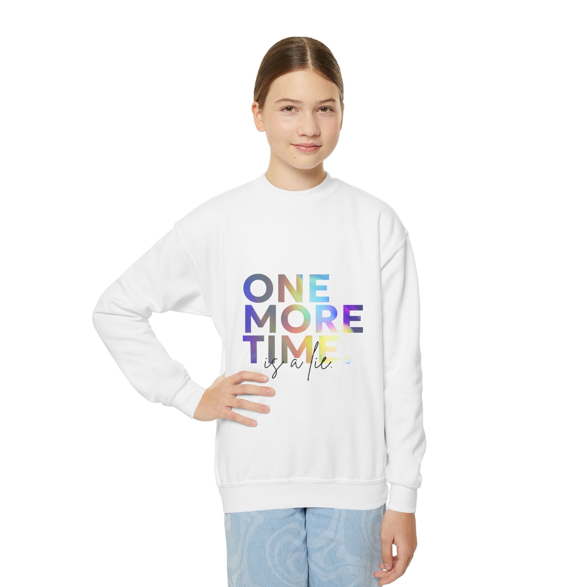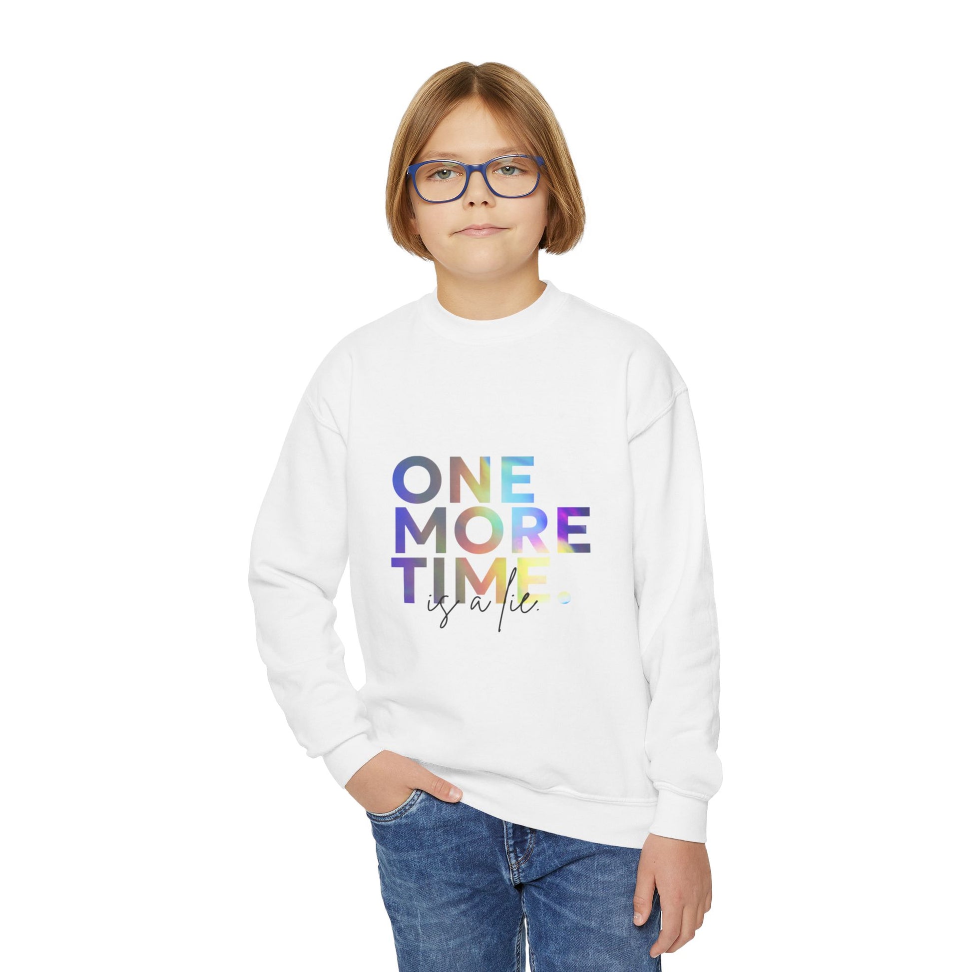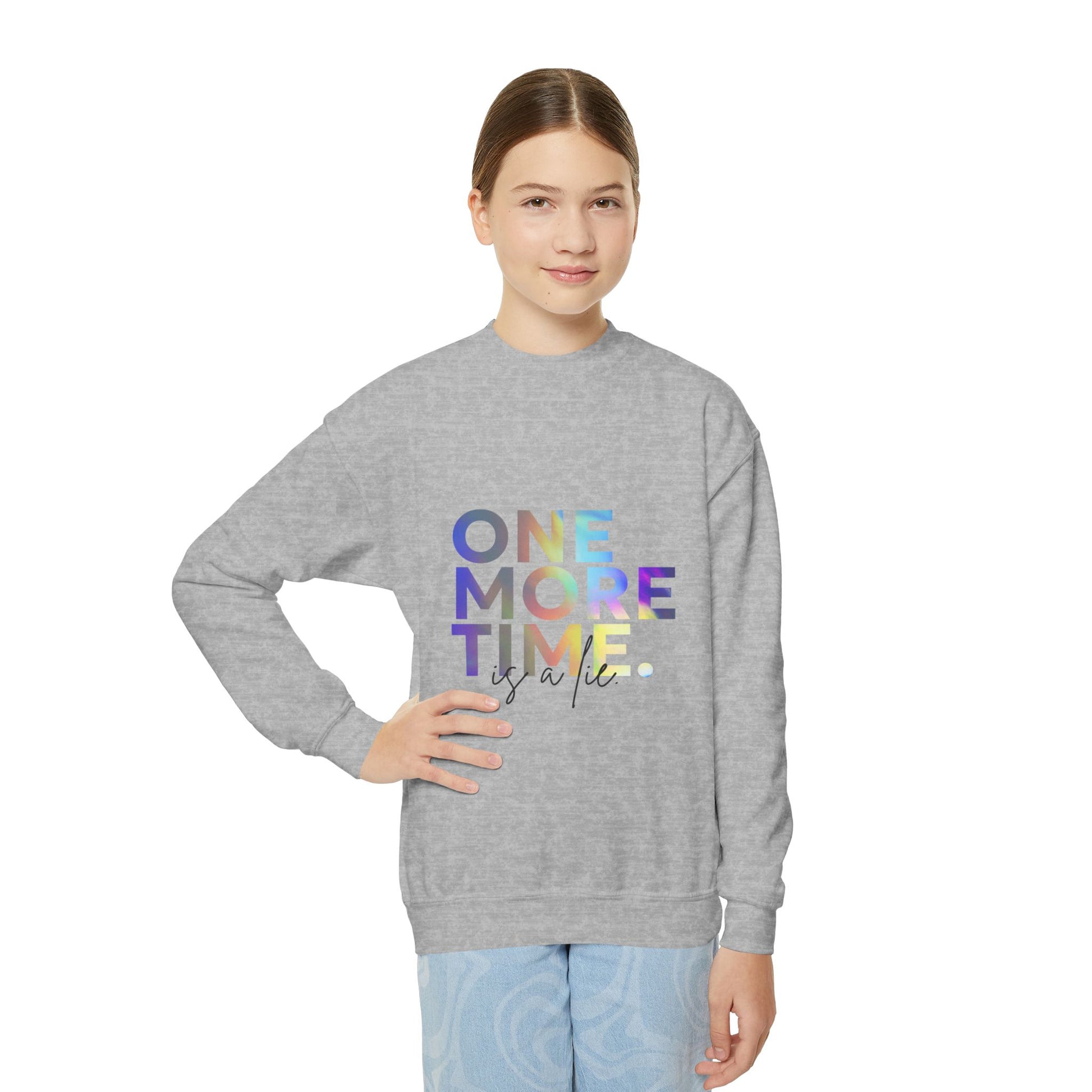 "One More Time Is a Lie" – Funny Dance Youth Crewneck Sweatshirt | Retro Kids Dancer Pullover