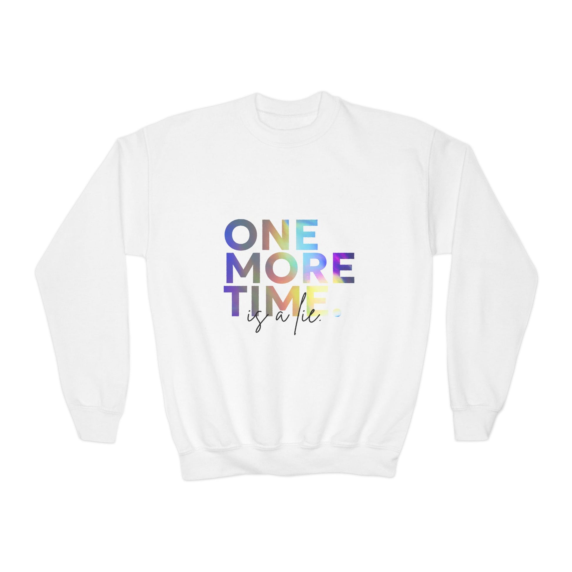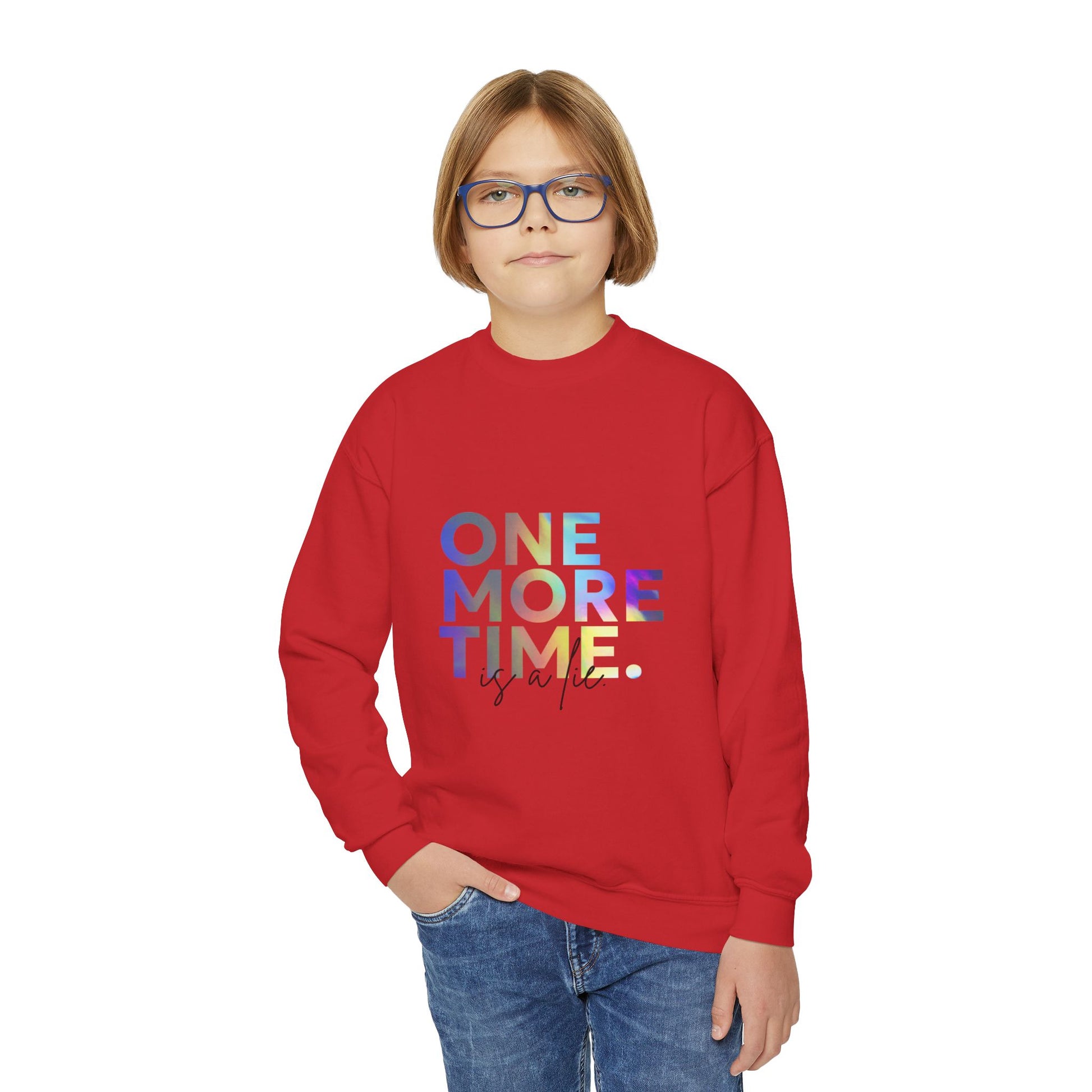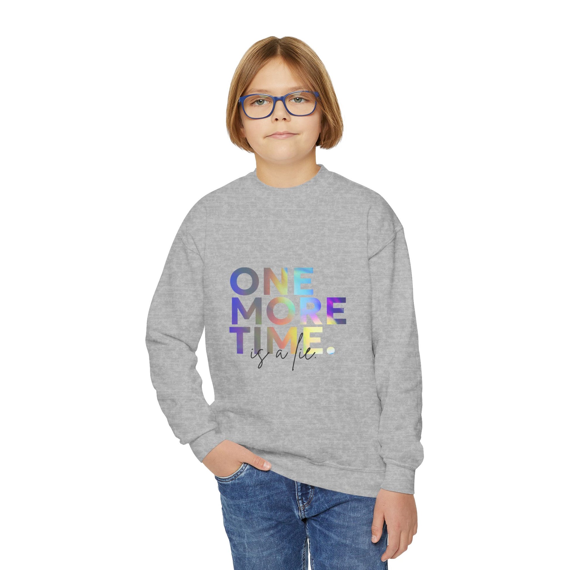 "One More Time Is a Lie" – Funny Dance Youth Crewneck Sweatshirt | Retro Kids Dancer Pullover