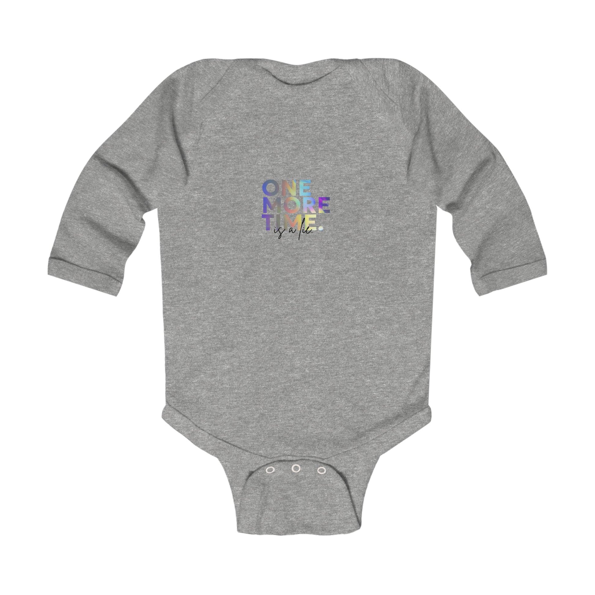 "One More Time is a Lie" Infant Long Sleeve Dance Bodysuit –Colorful Graphic Baby Outfit
