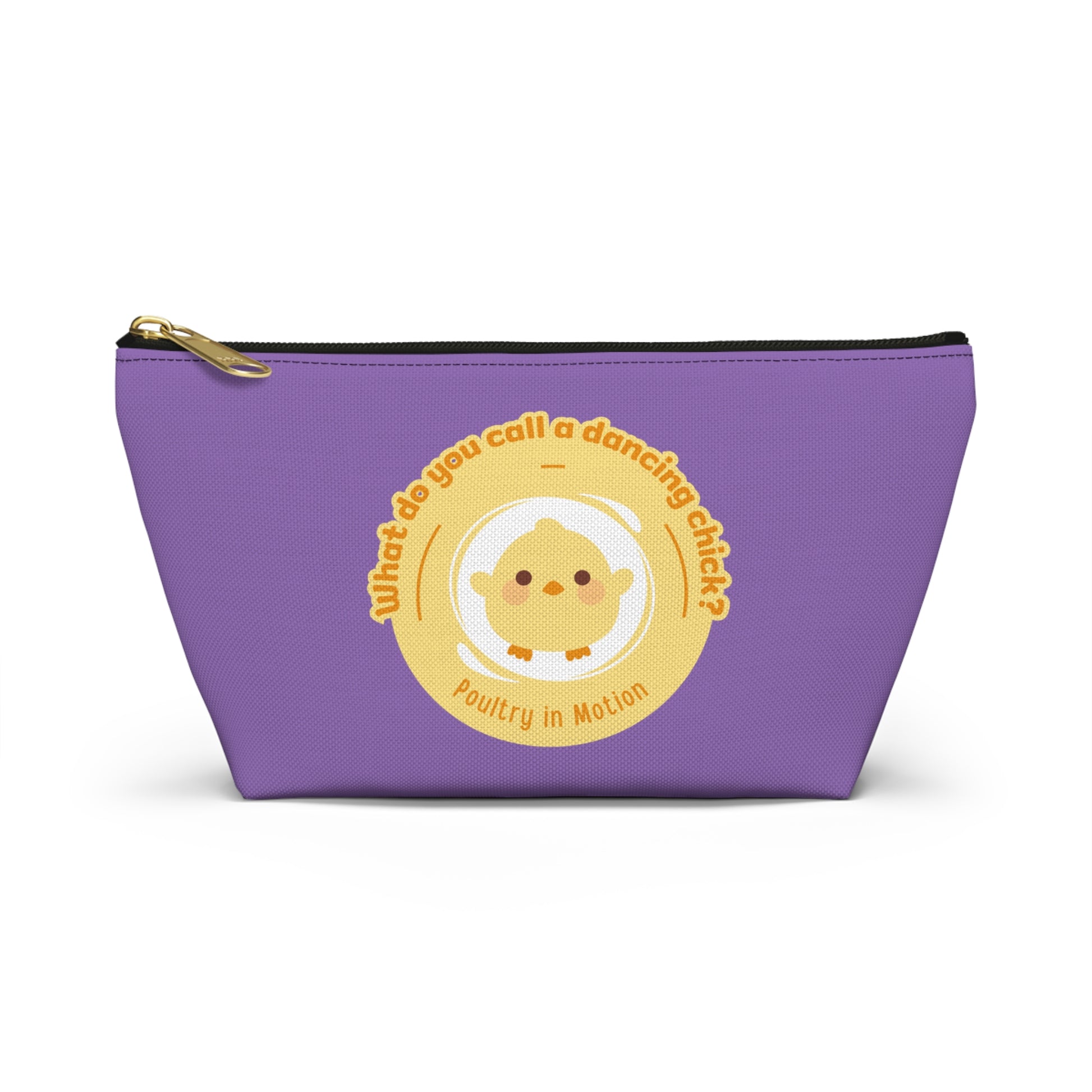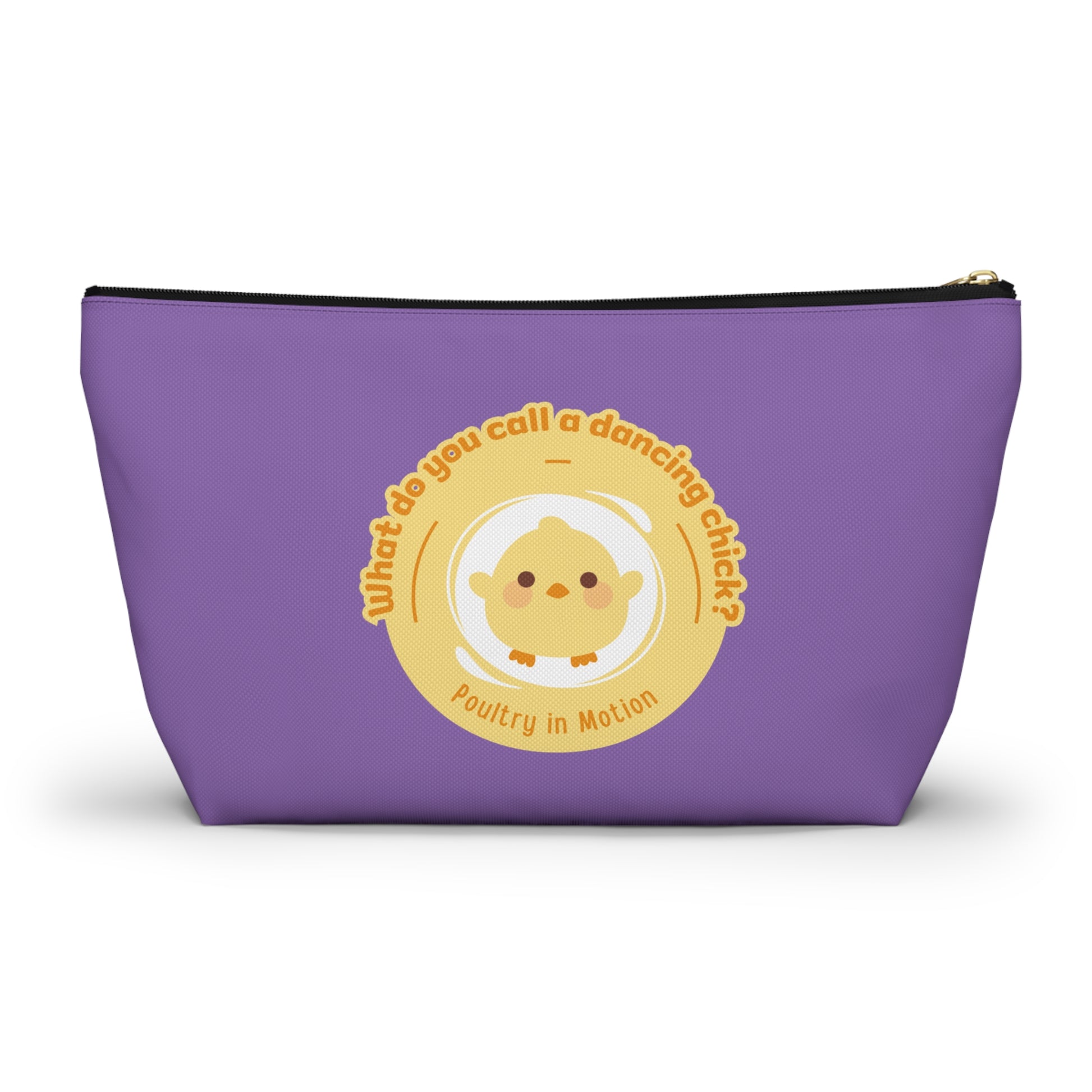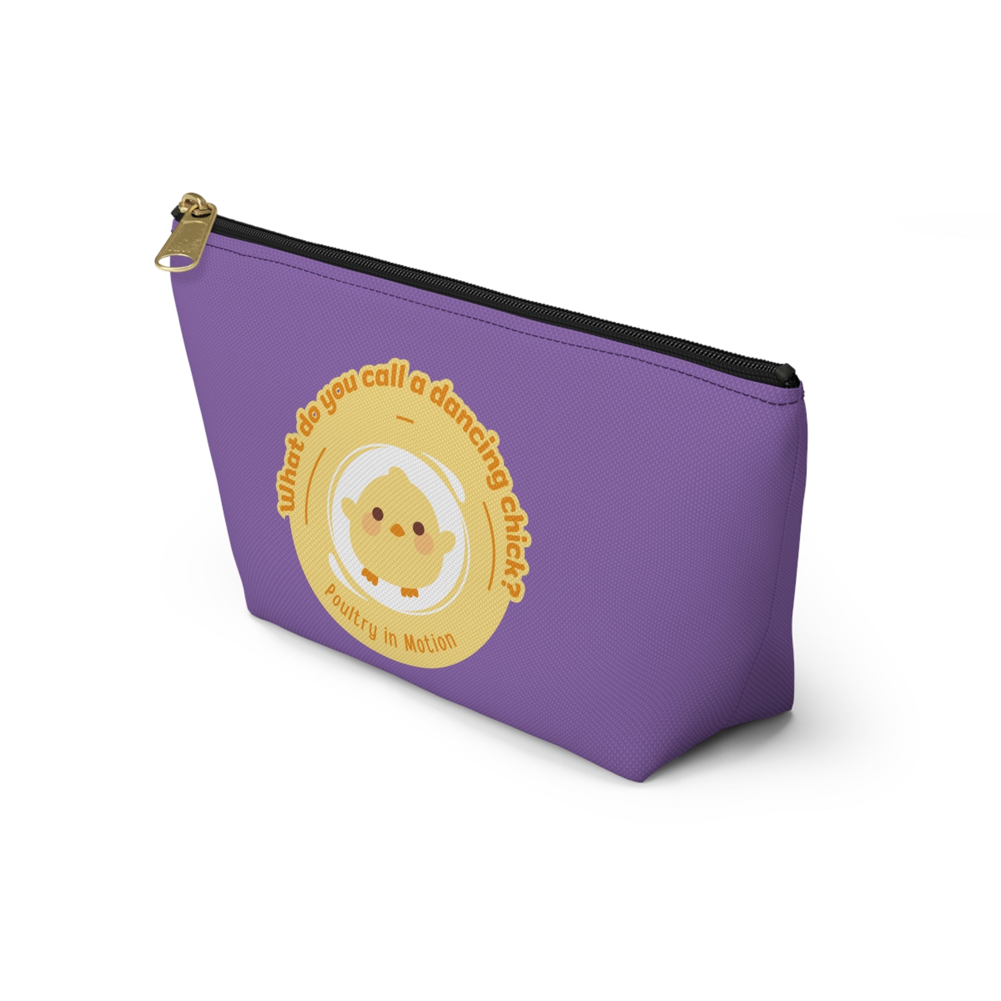 "What do you call a dancing chick? Poultry in Motion." Makeup Bag – Funny Dancing Chick Pun with Cute Chicken Graphic – Dance-Themed Zipper Pouch for Cosmetics, Accessories & Gifts
