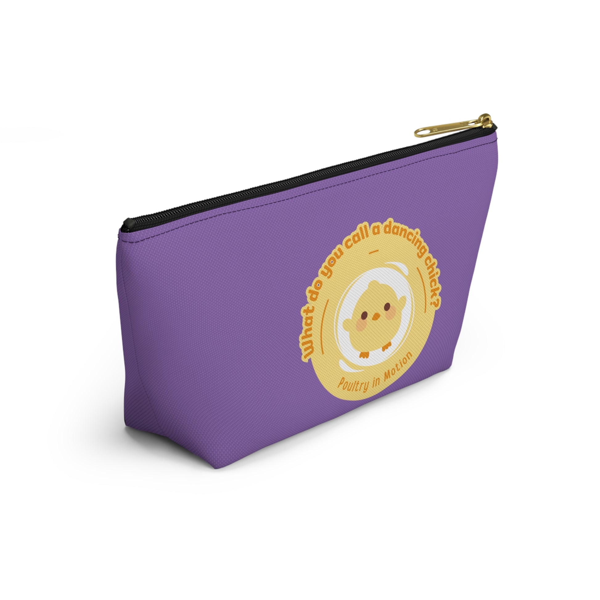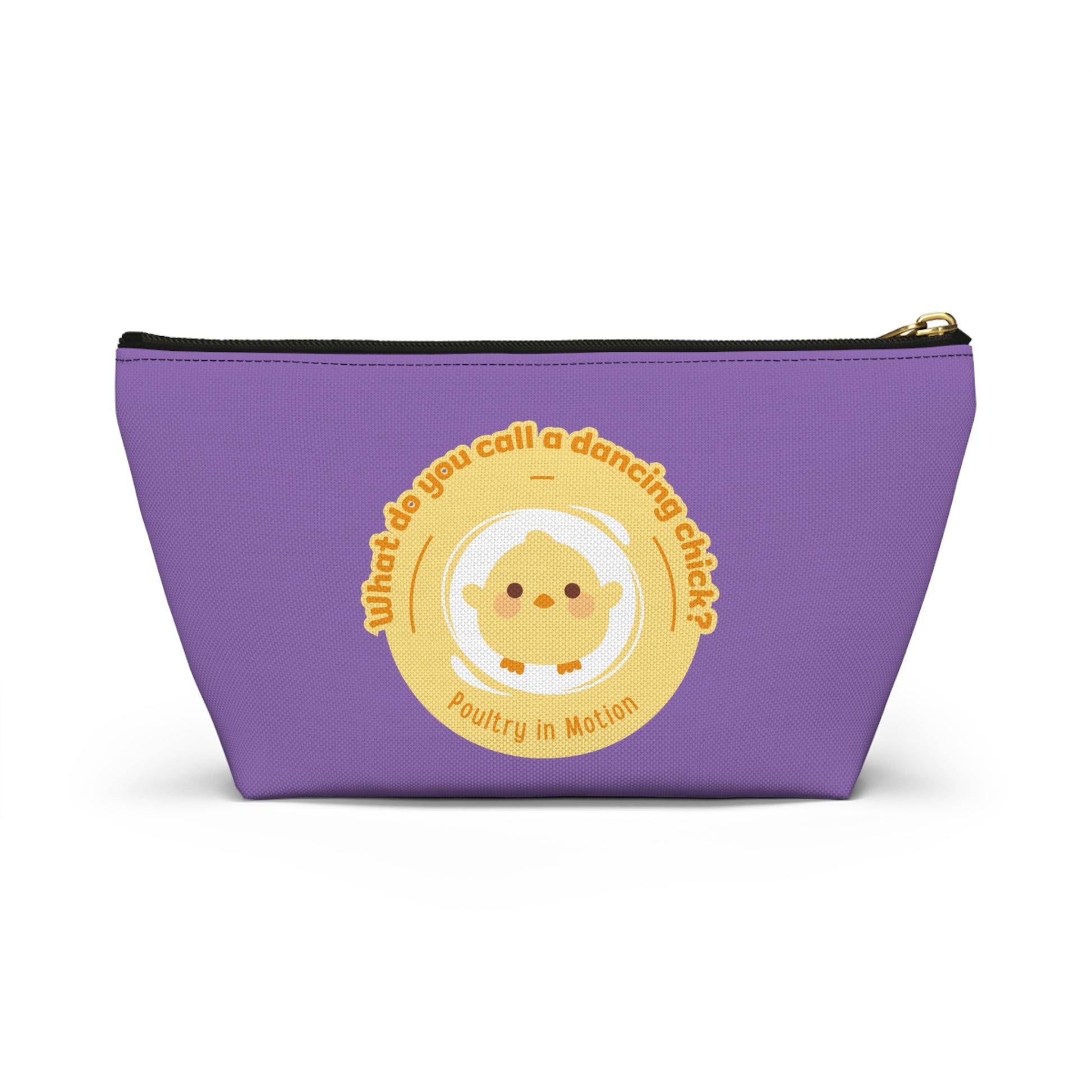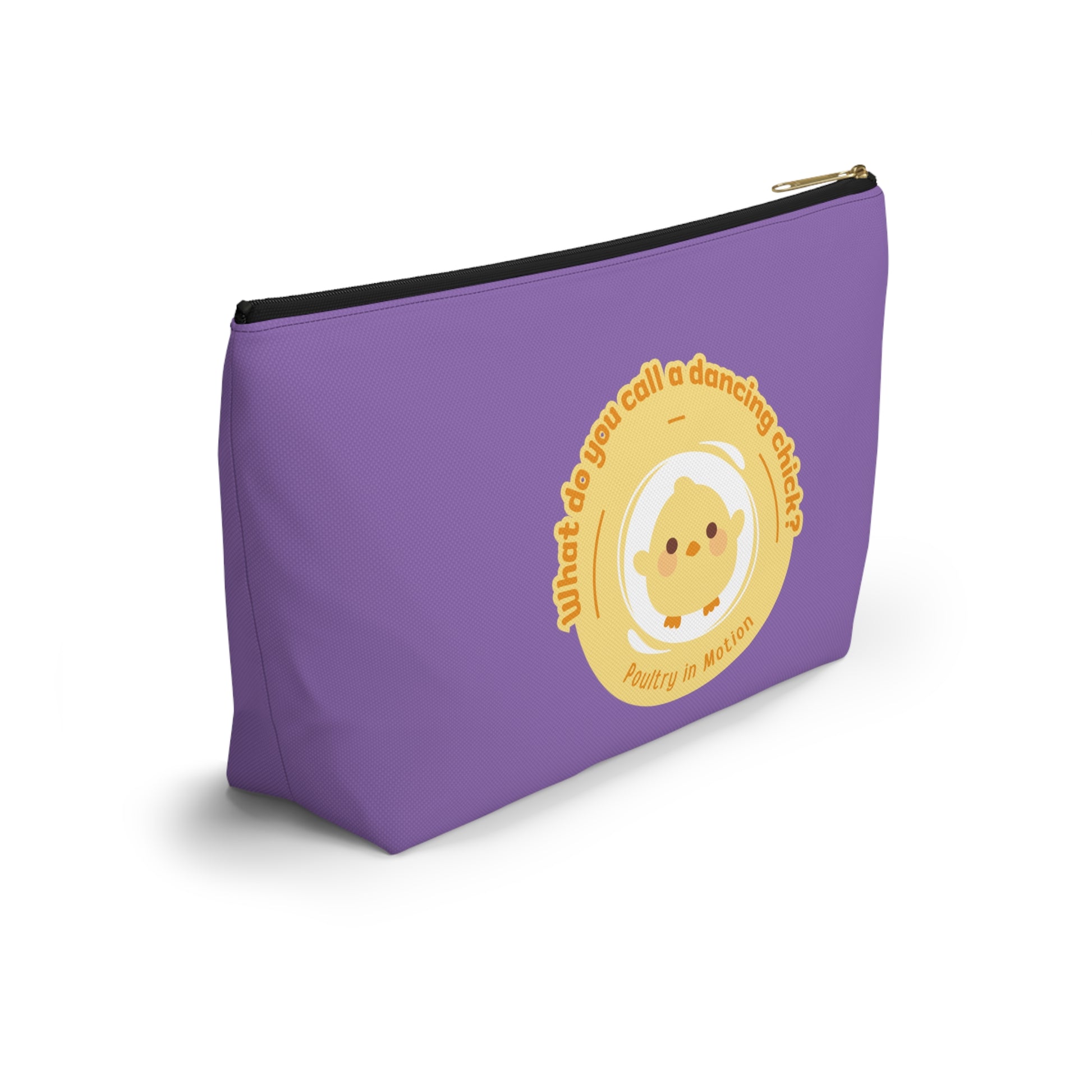 "What do you call a dancing chick? Poultry in Motion." Makeup Bag – Funny Dancing Chick Pun with Cute Chicken Graphic – Dance-Themed Zipper Pouch for Cosmetics, Accessories & Gifts