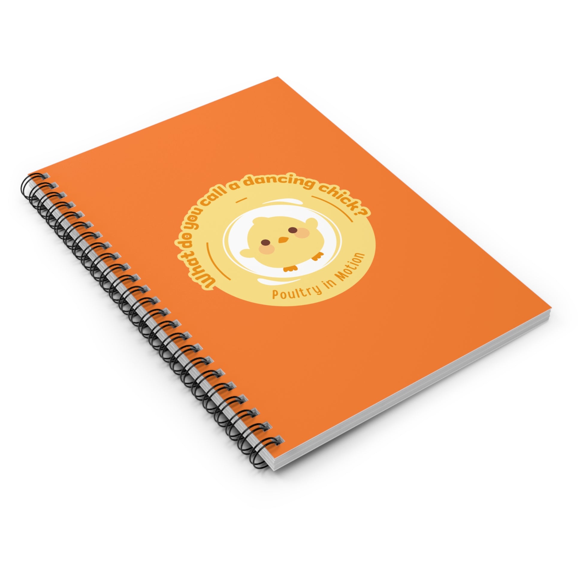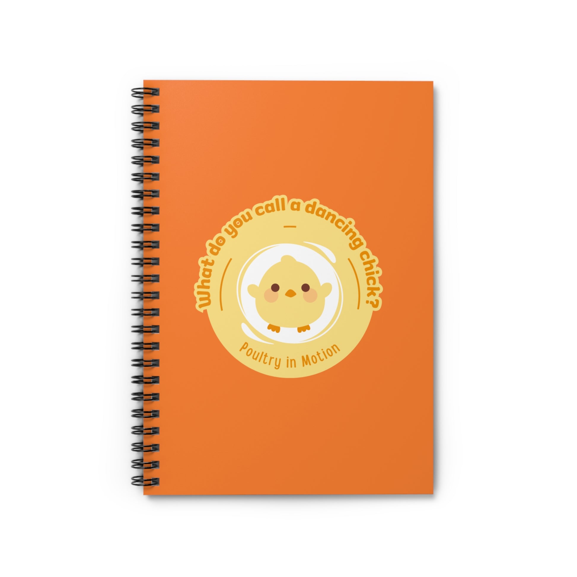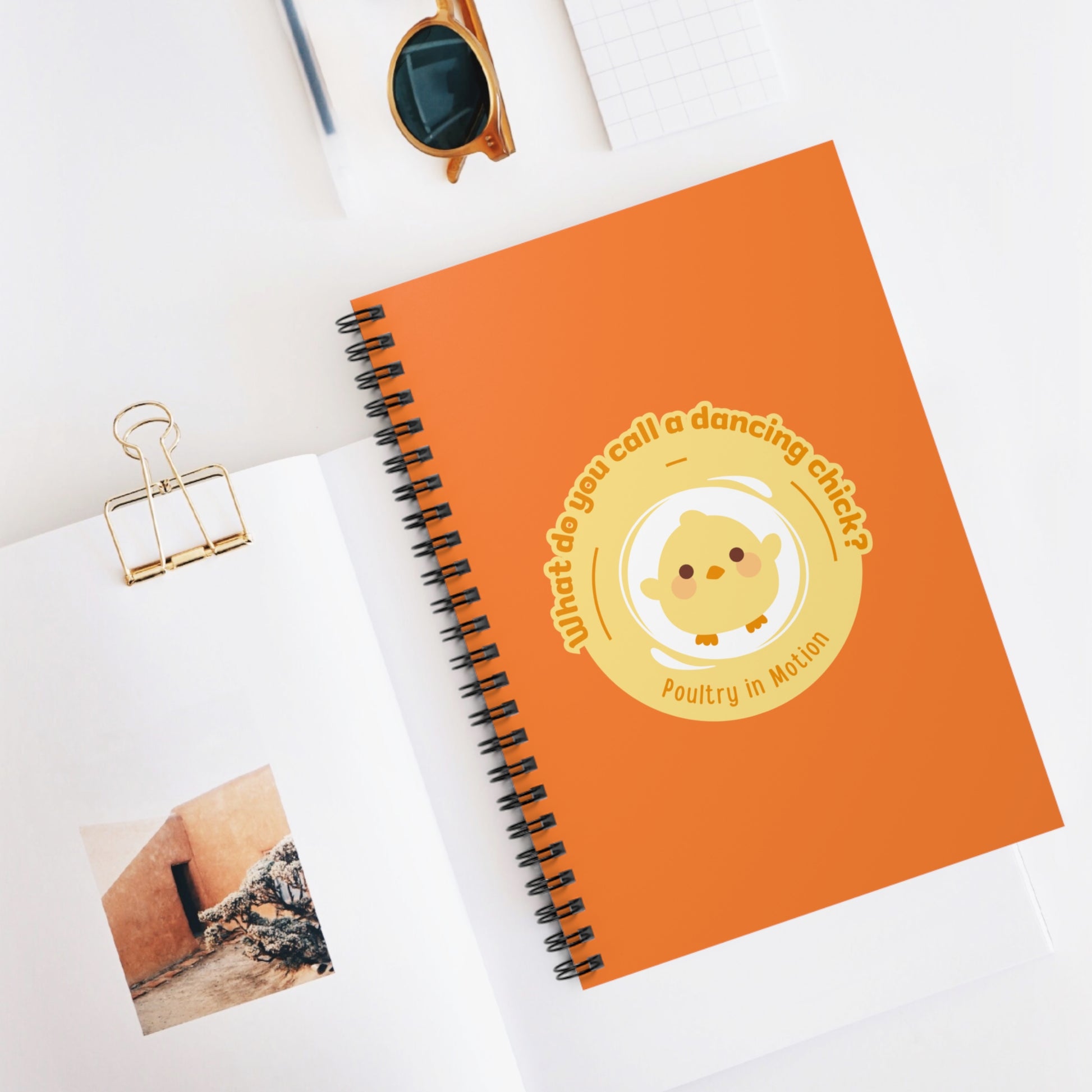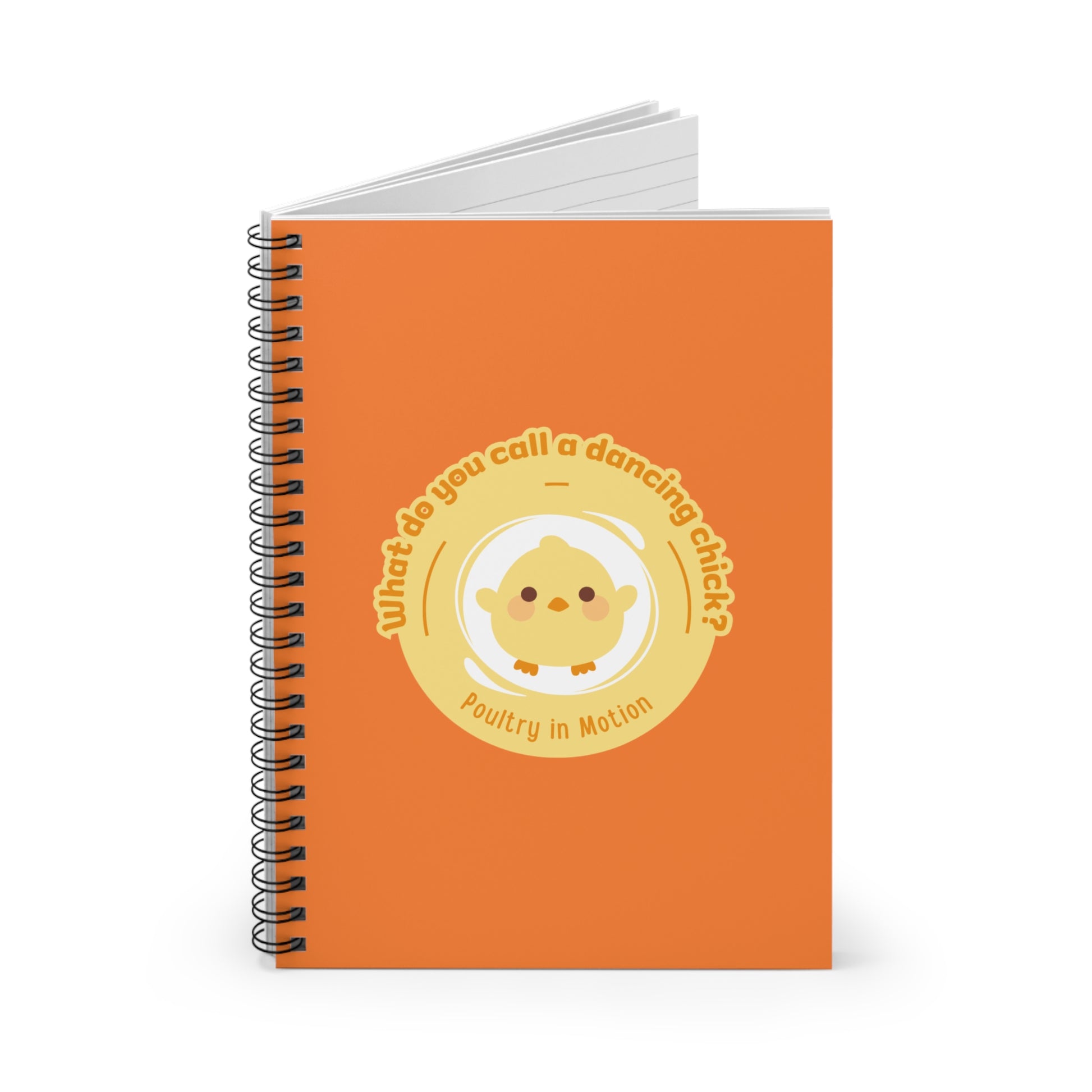 "Poultry in Motion" Spiral Notebook – Funny Dance Pun Journal with Cute Chicken Graphic for Dancers, Writers & Pun Lovers