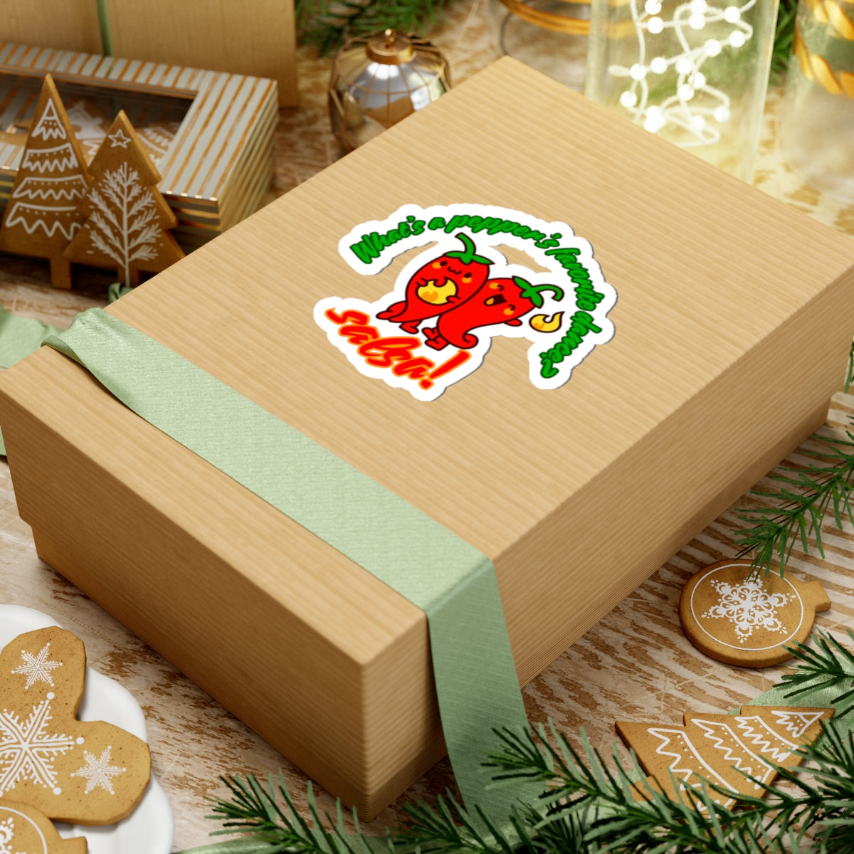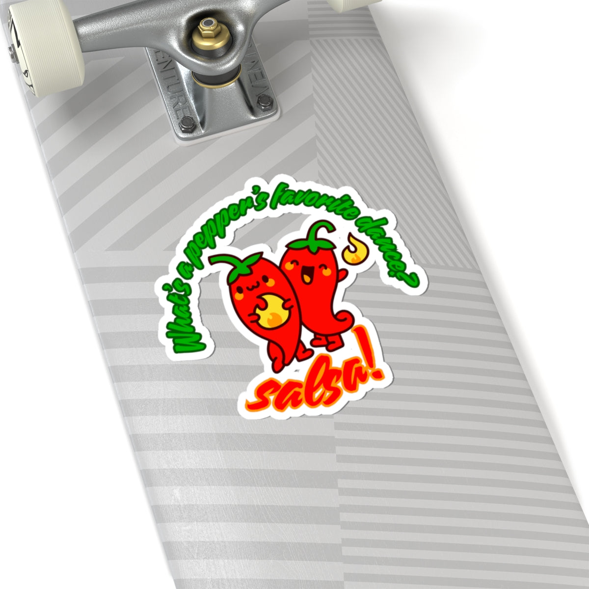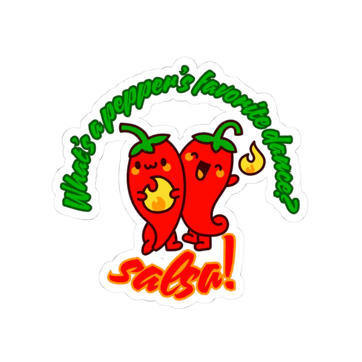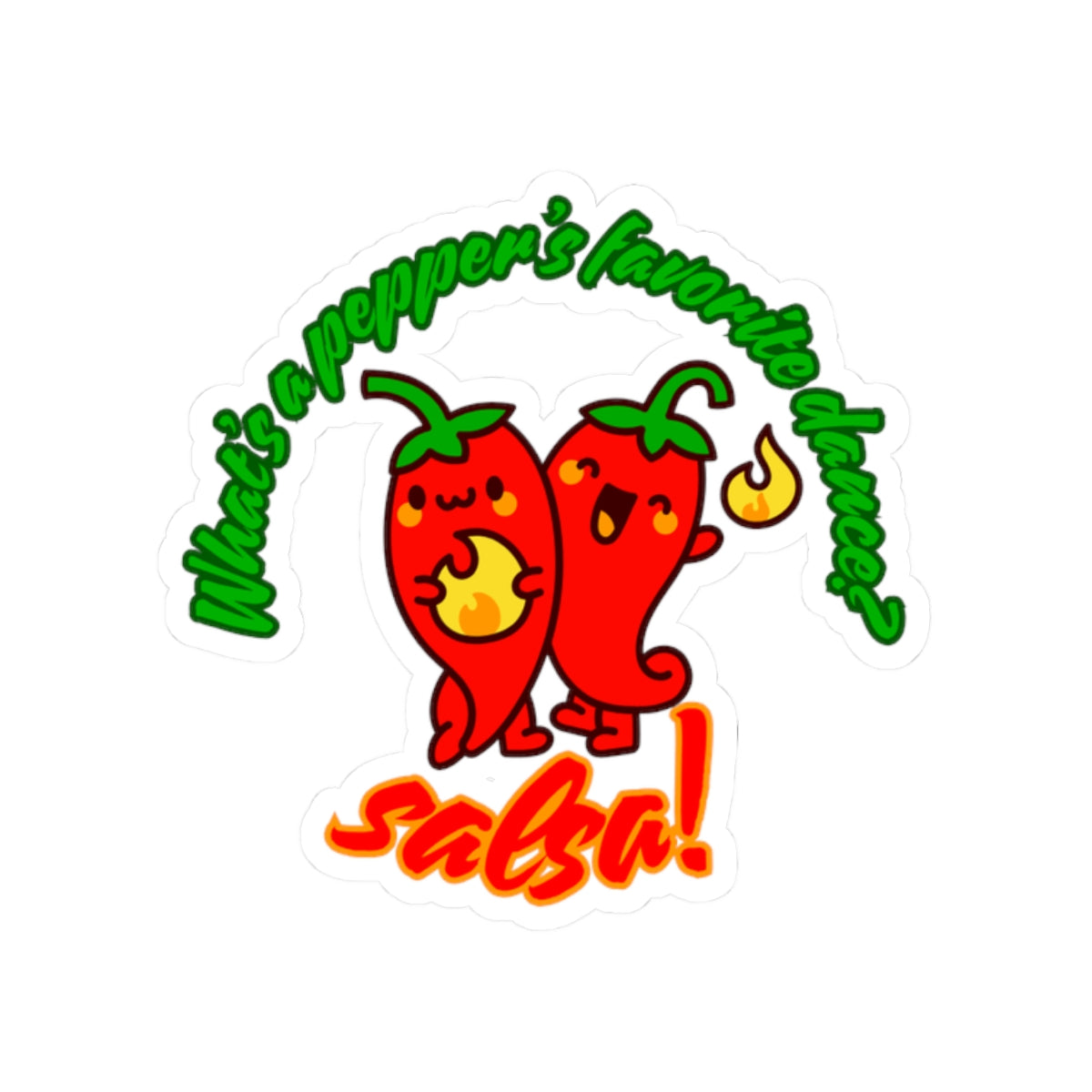 "What's a Pepper's Favorite Dance? Salsa!" – Kiss-Cut Vinyl Sticker 🌶️💃🎉