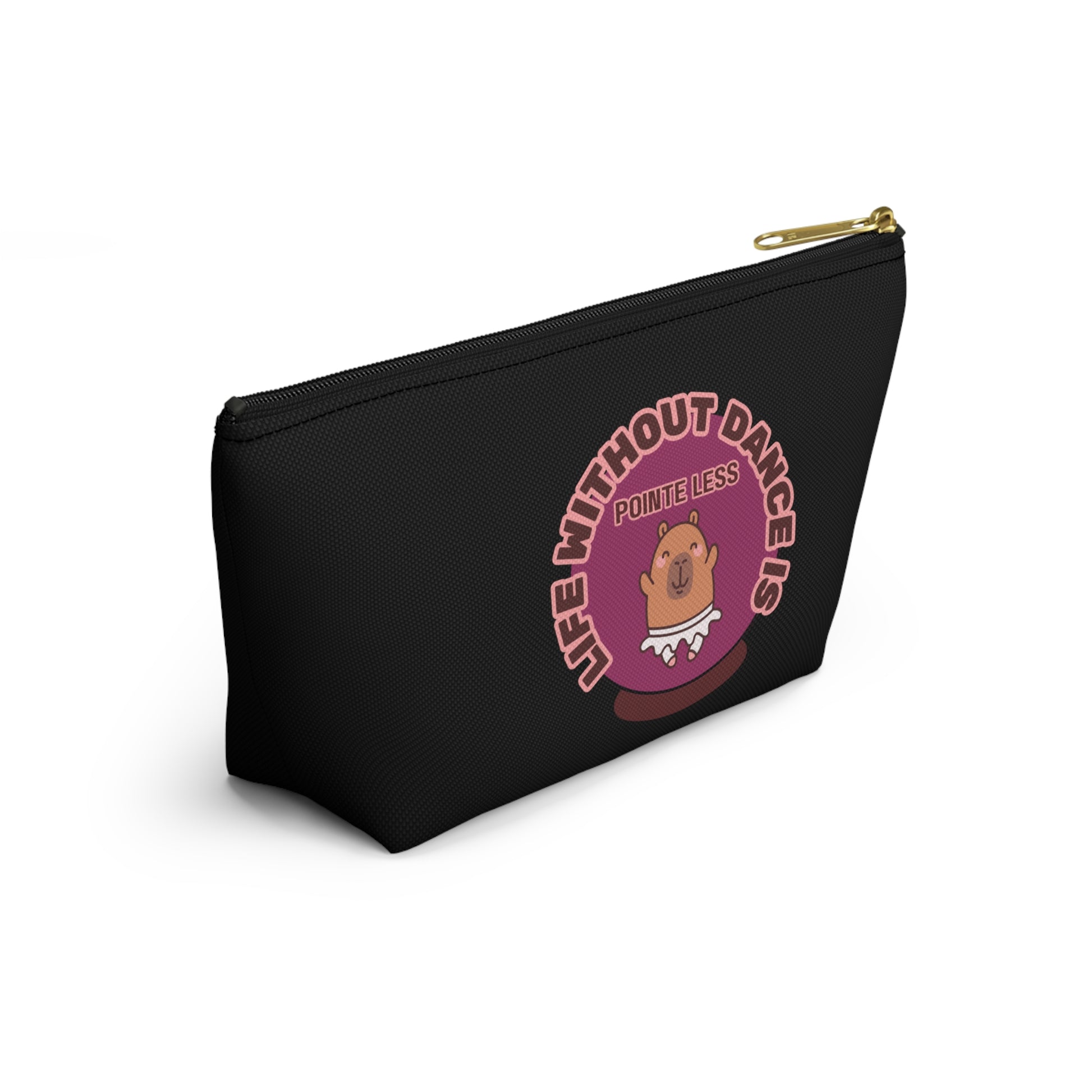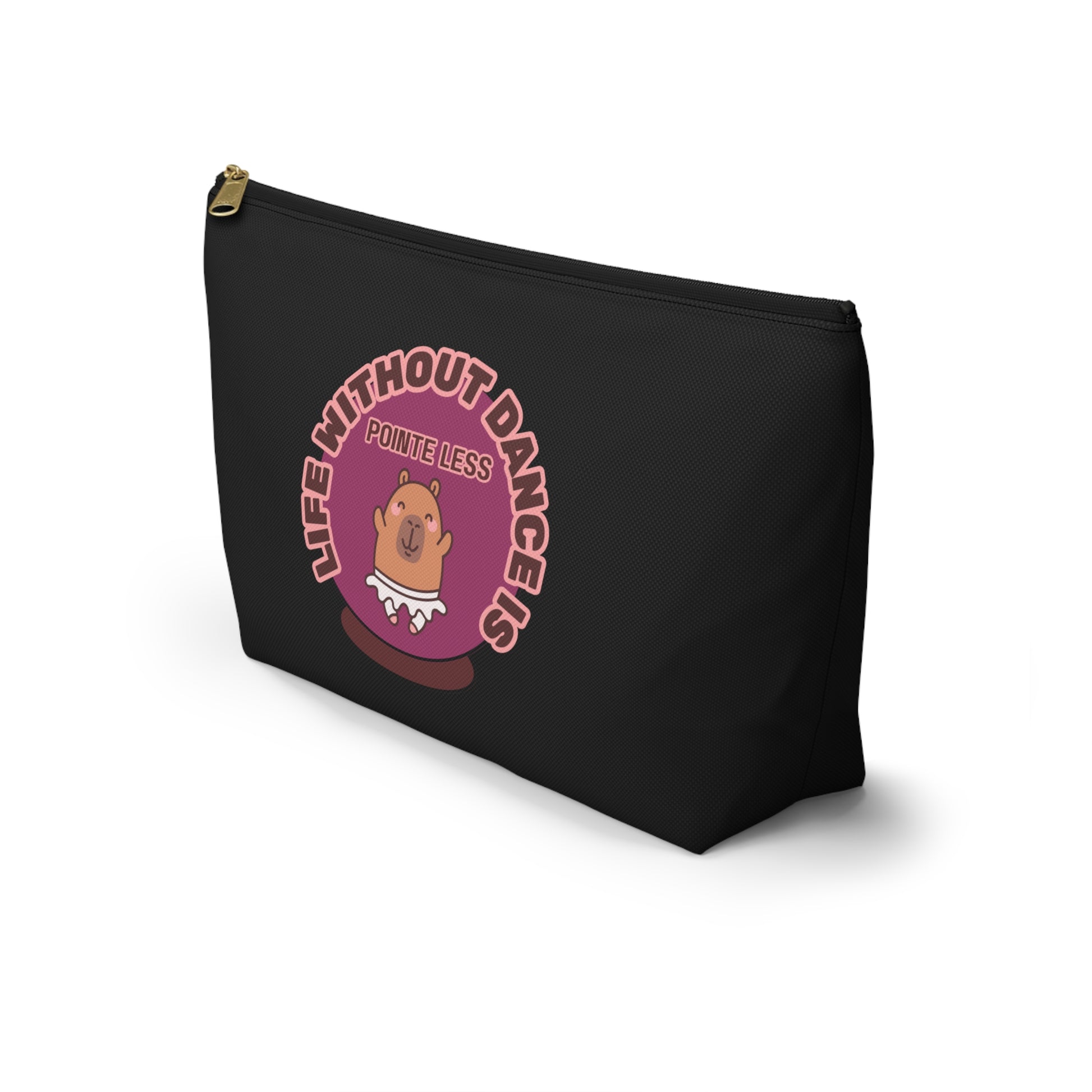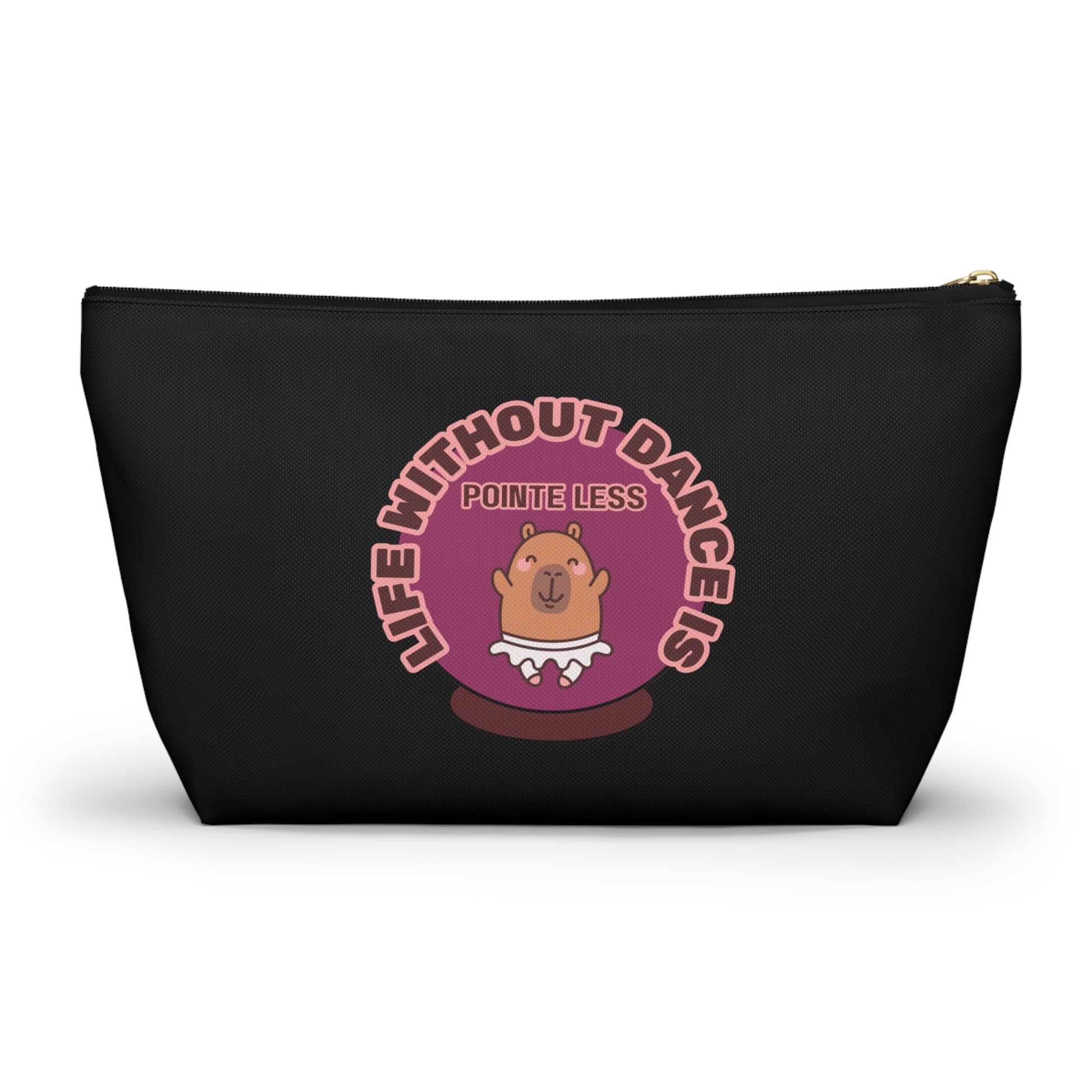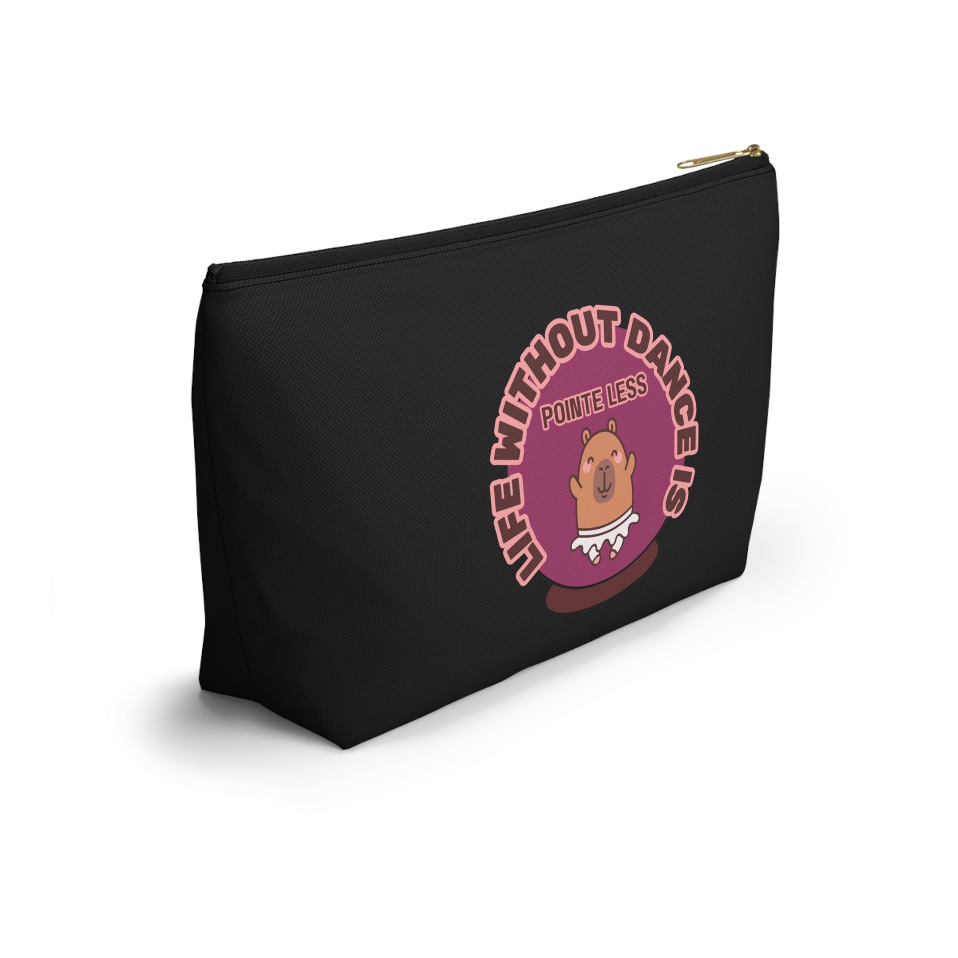 "Life Without Dance is Pointeless" Makeup Bag – Cute Dancing Capybara Graphic – Funny Ballet-Themed Zipper Pouch for Cosmetics, Accessories & Gifts