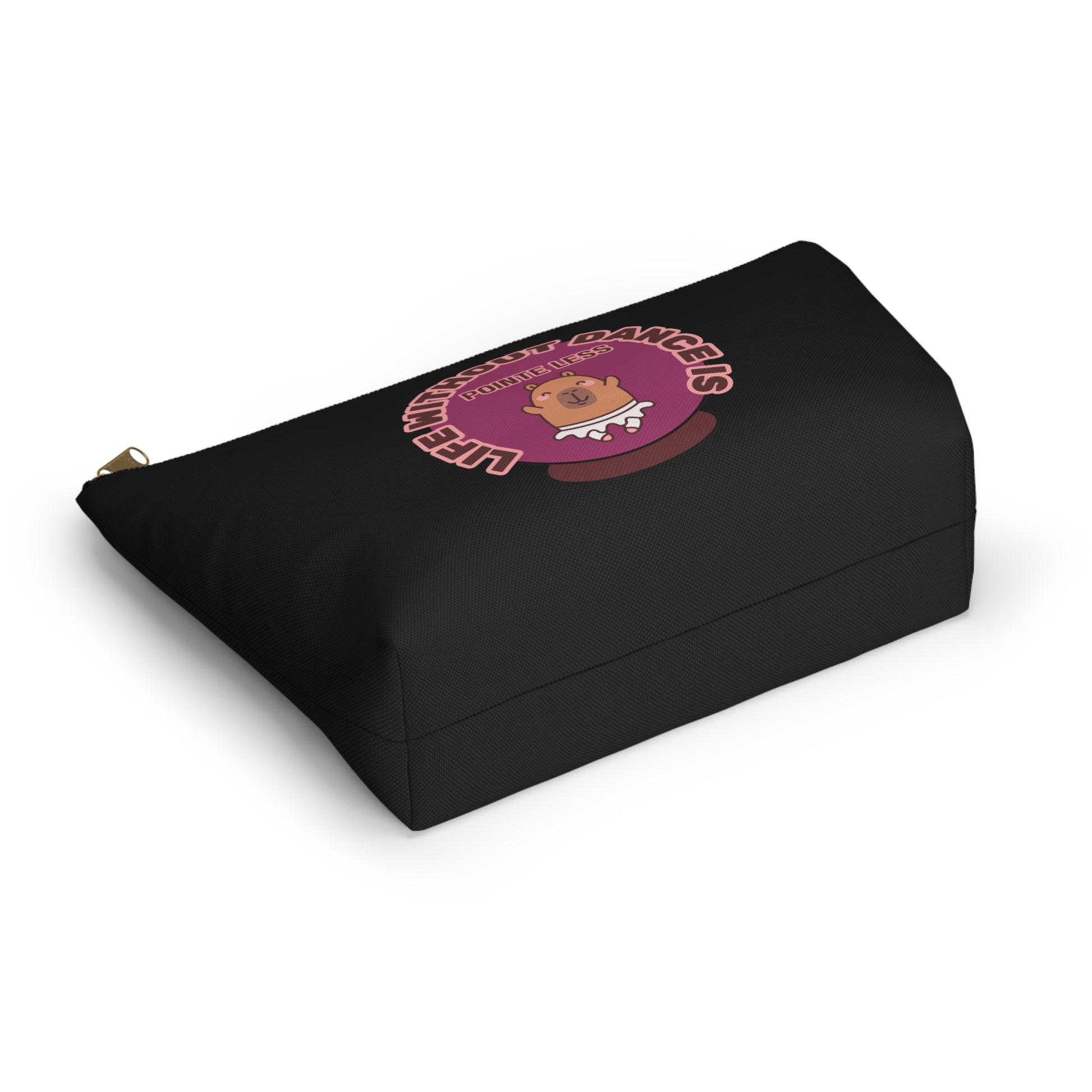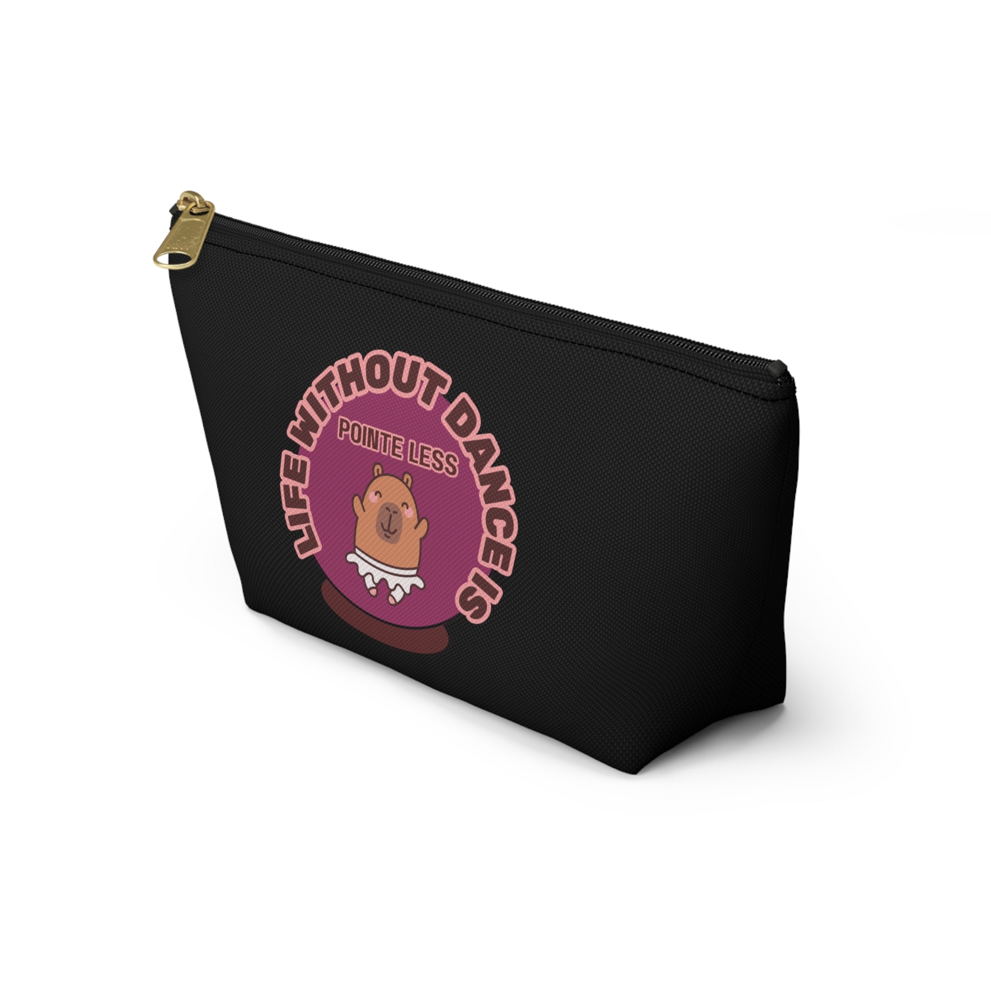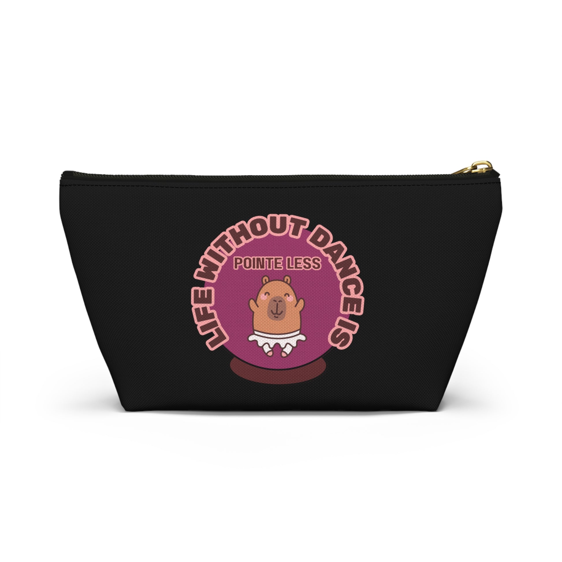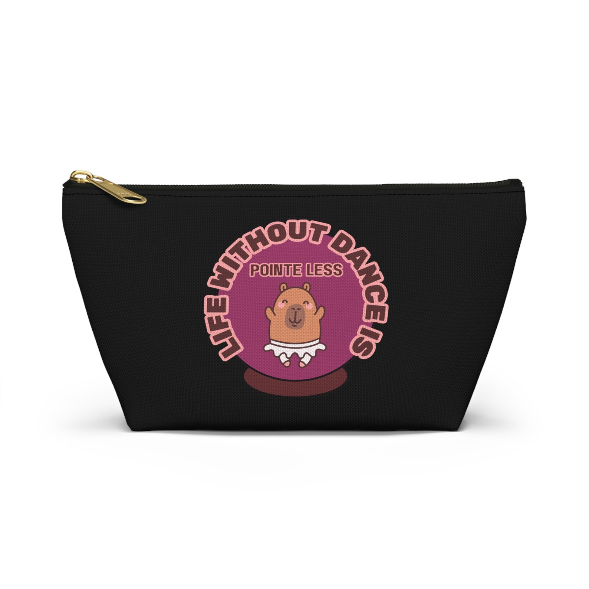 "Life Without Dance is Pointeless" Makeup Bag – Cute Dancing Capybara Graphic – Funny Ballet-Themed Zipper Pouch for Cosmetics, Accessories & Gifts