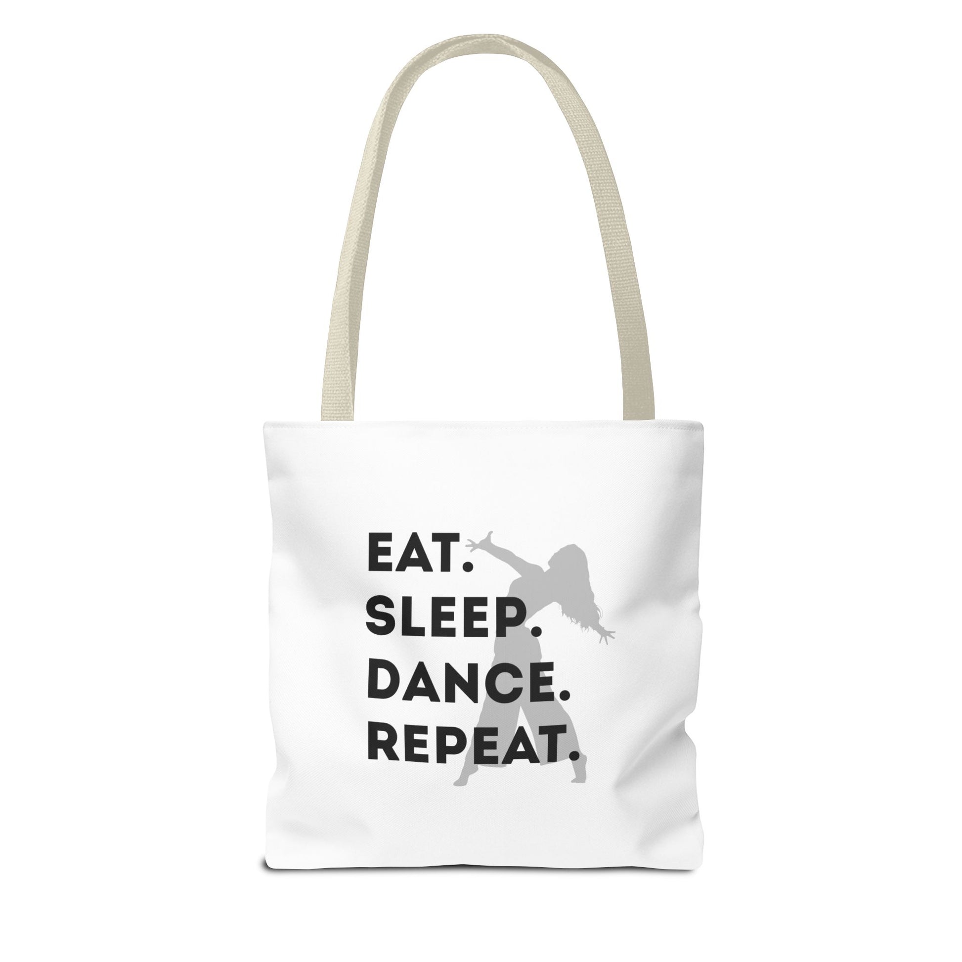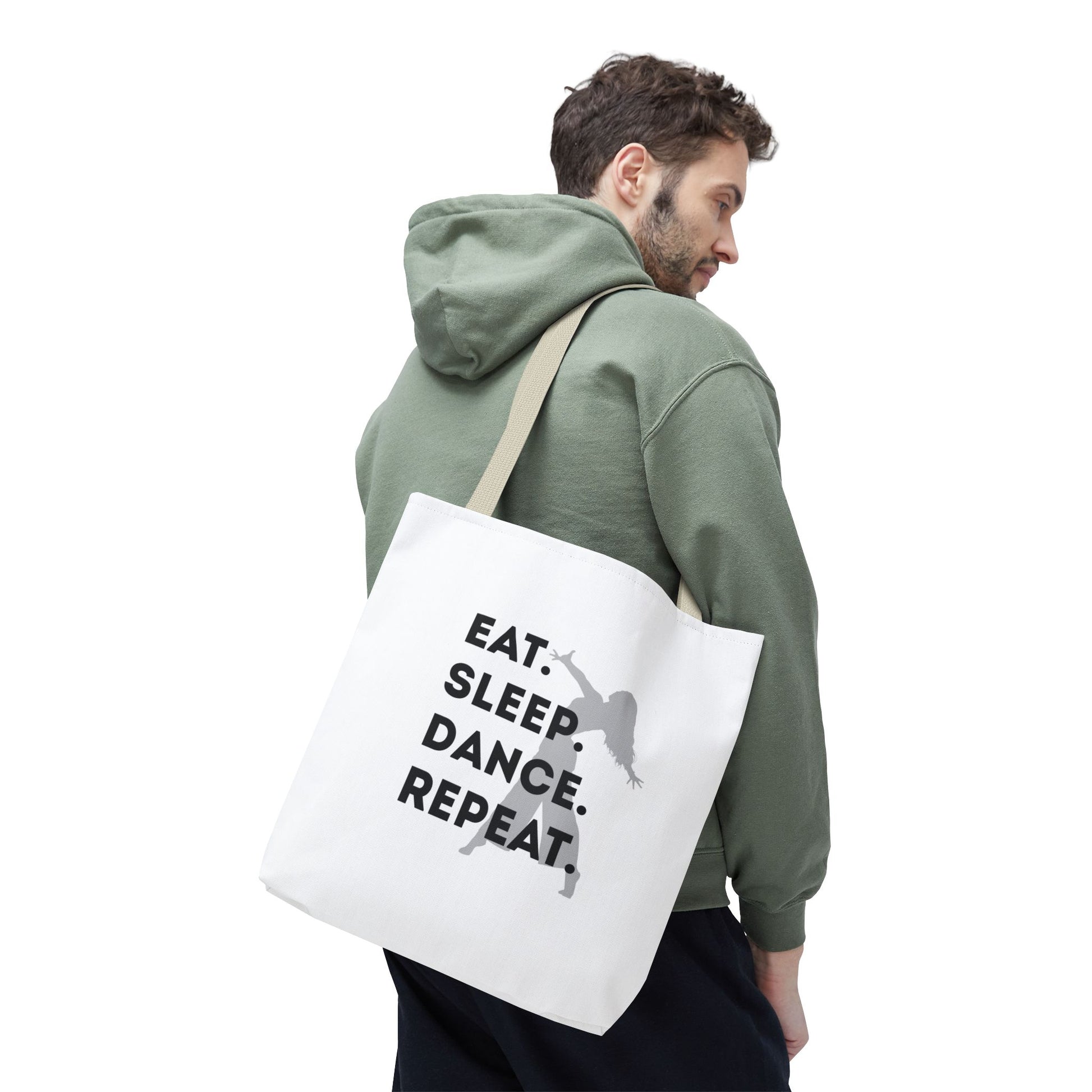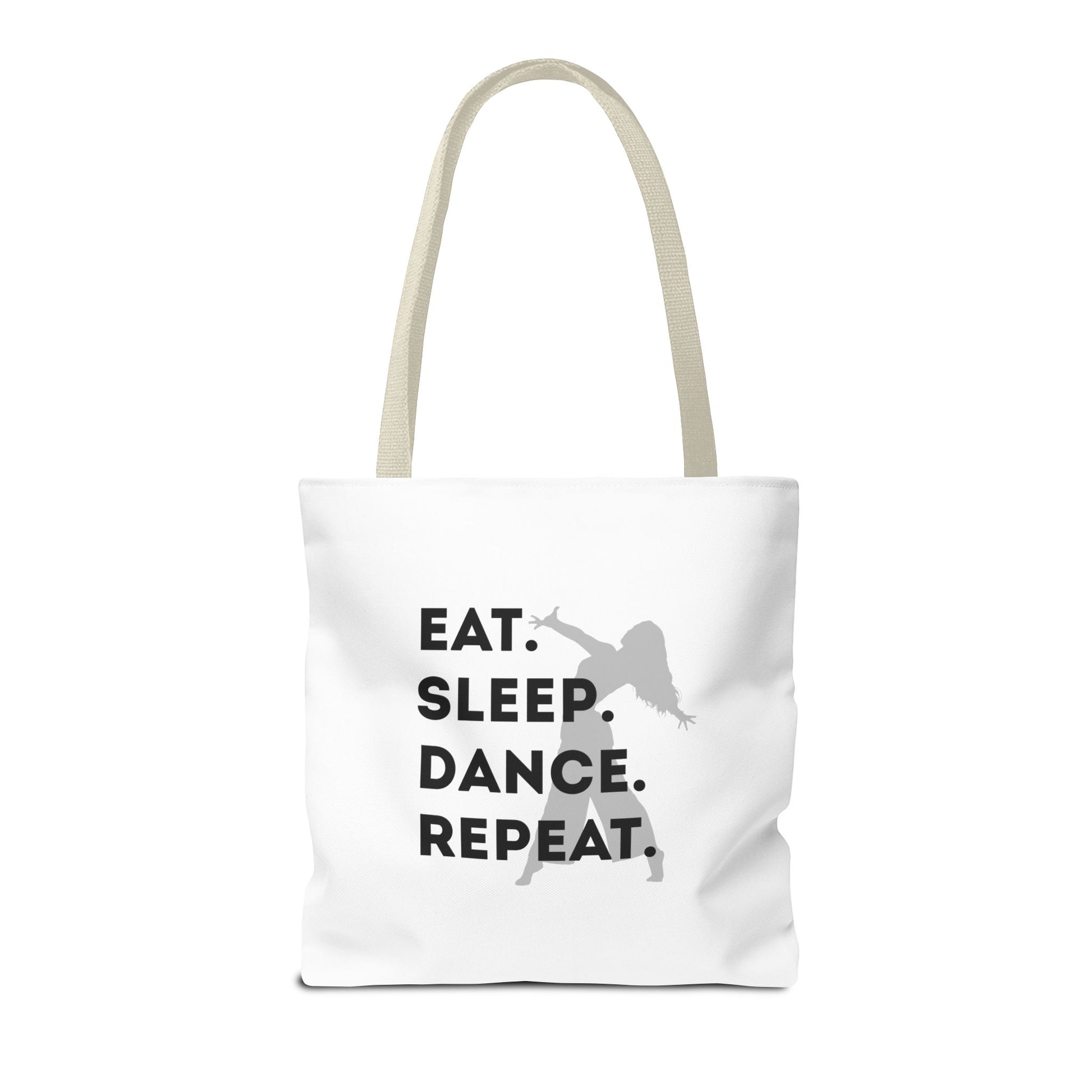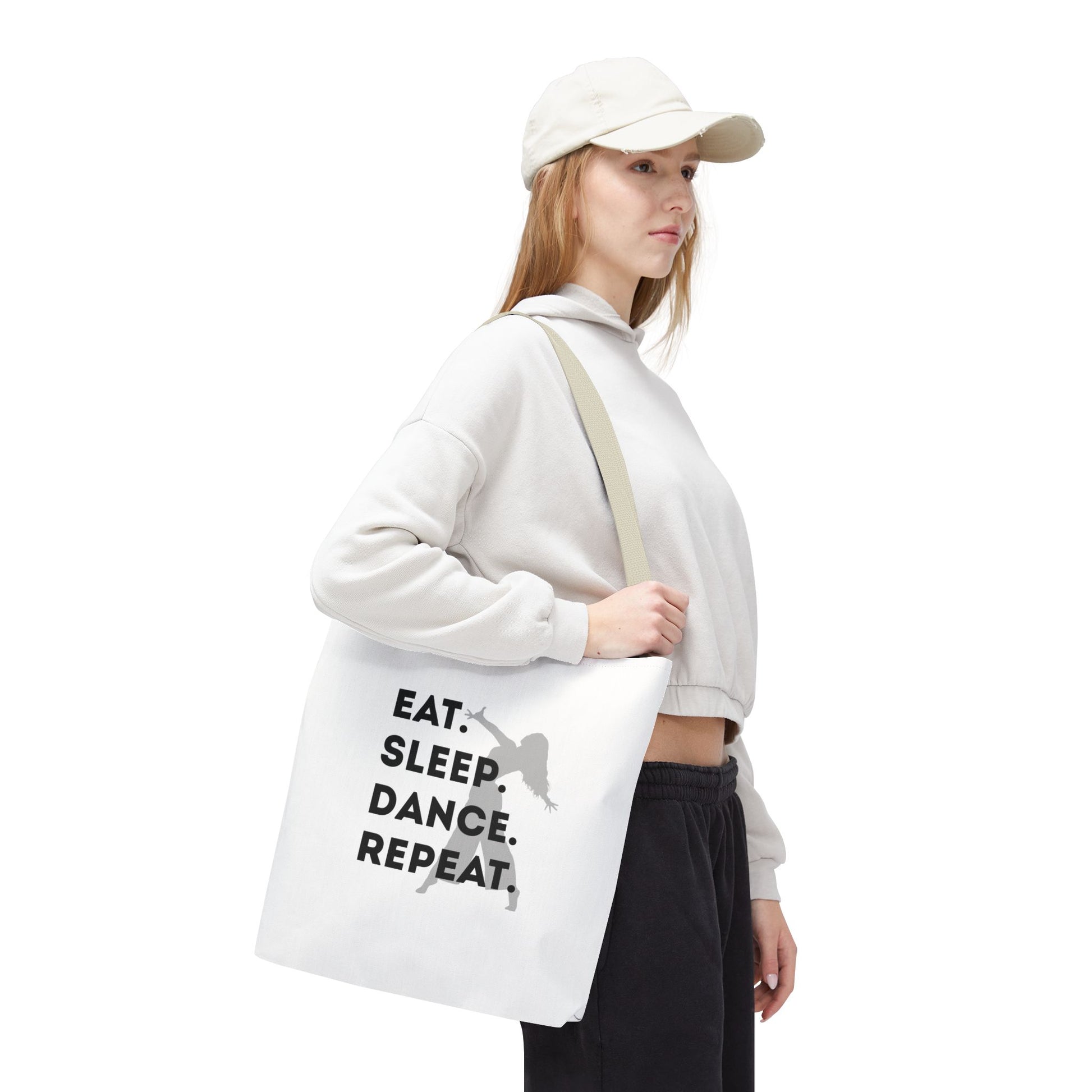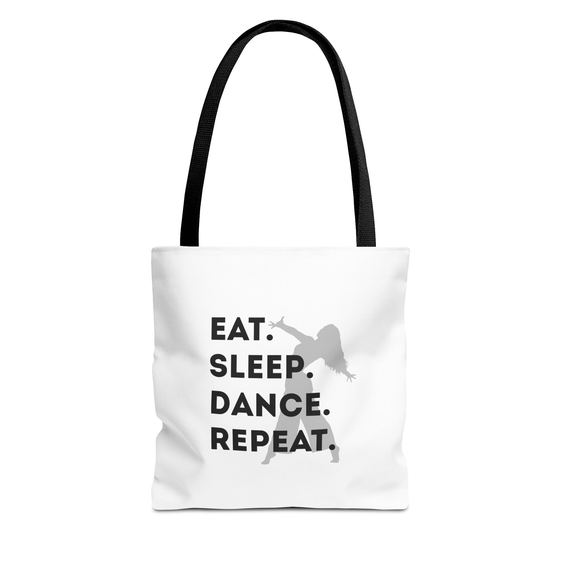 "Eat Sleep Dance Repeat" Canvas Tote Bag – Gray Dancer Silhouette Dance-Themed Reusable Shoulder Bag for Dancers, Studio, or Everyday Use