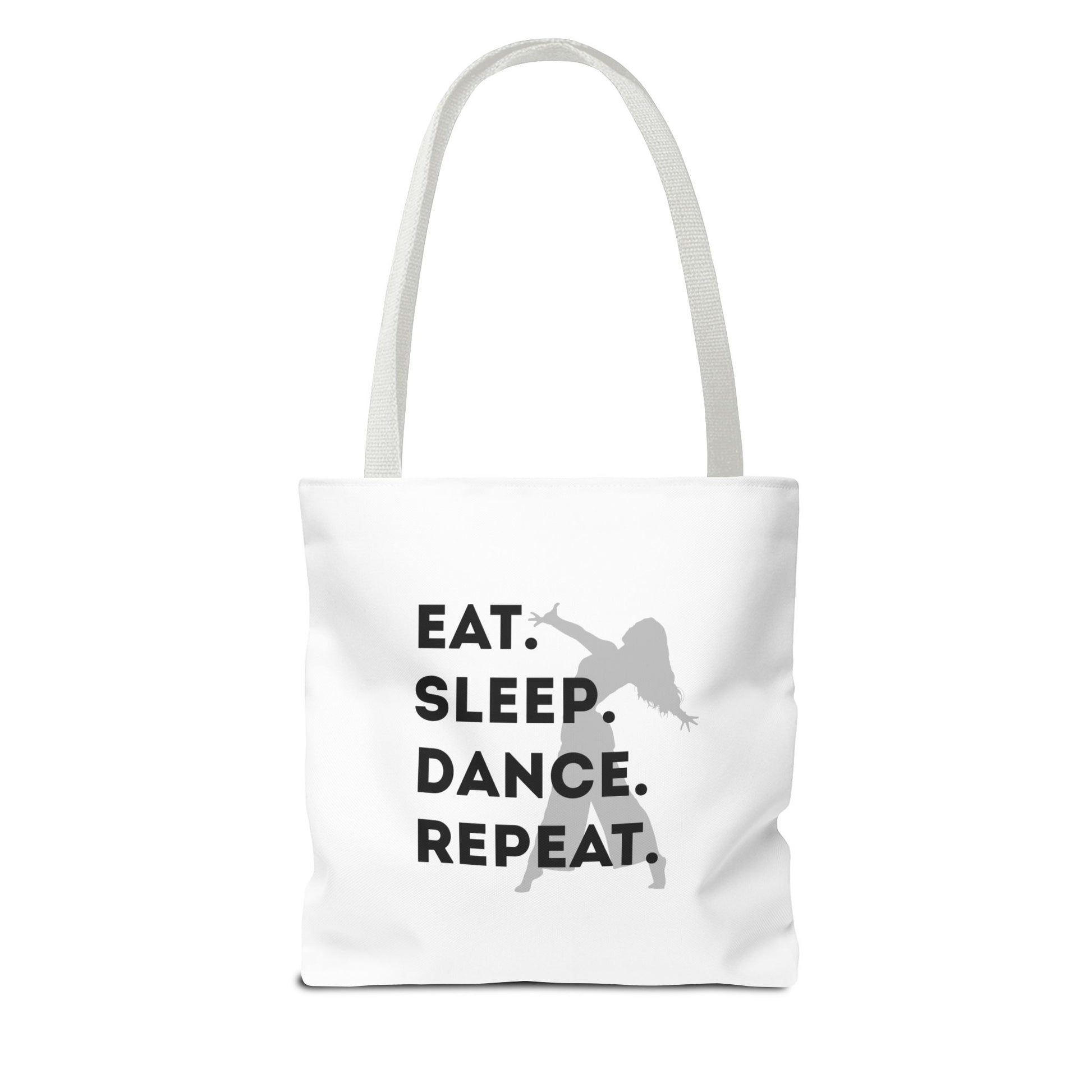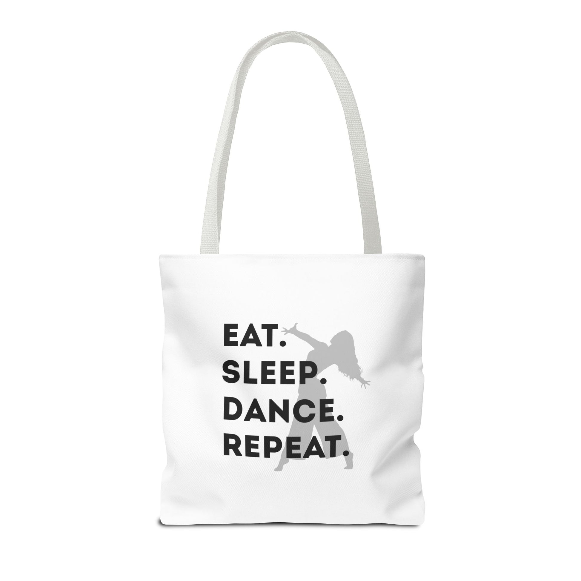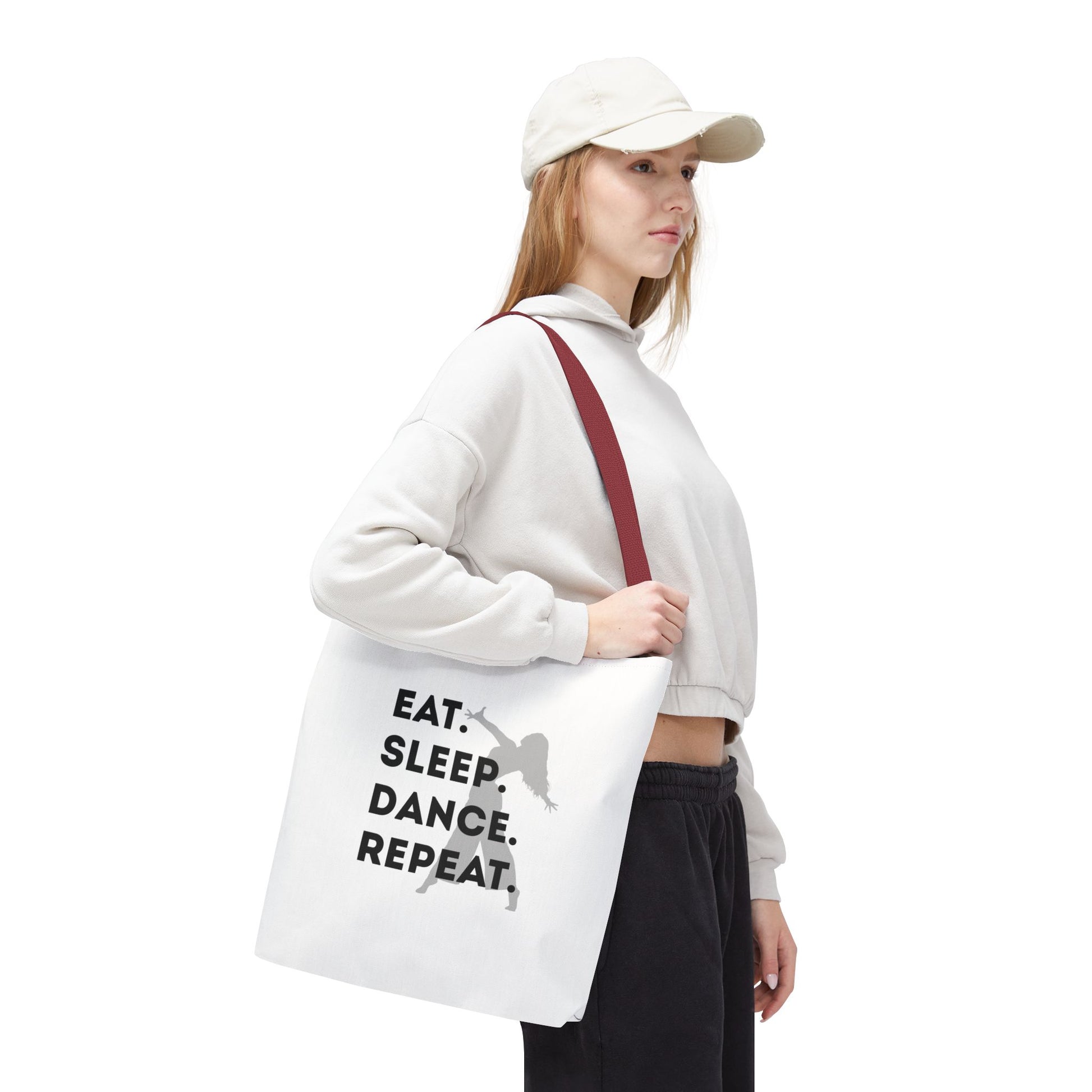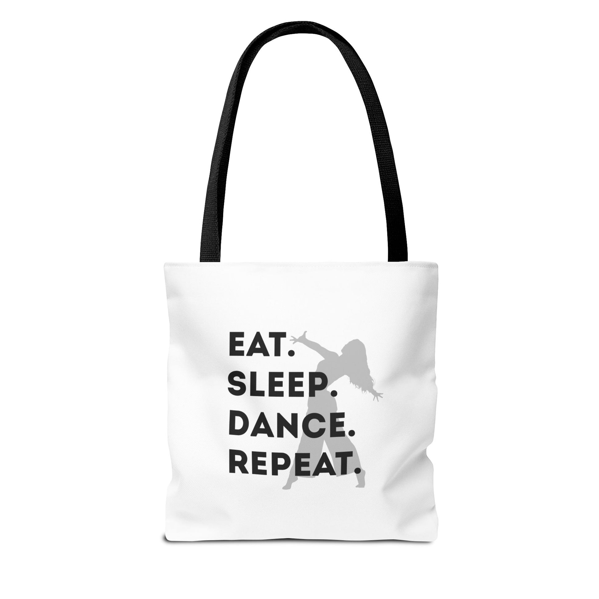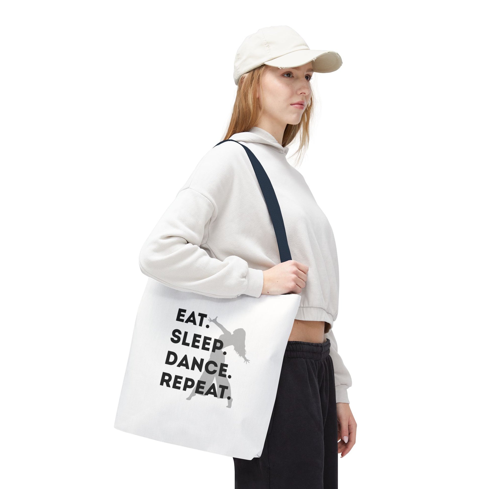 "Eat Sleep Dance Repeat" Canvas Tote Bag – Gray Dancer Silhouette Dance-Themed Reusable Shoulder Bag for Dancers, Studio, or Everyday Use