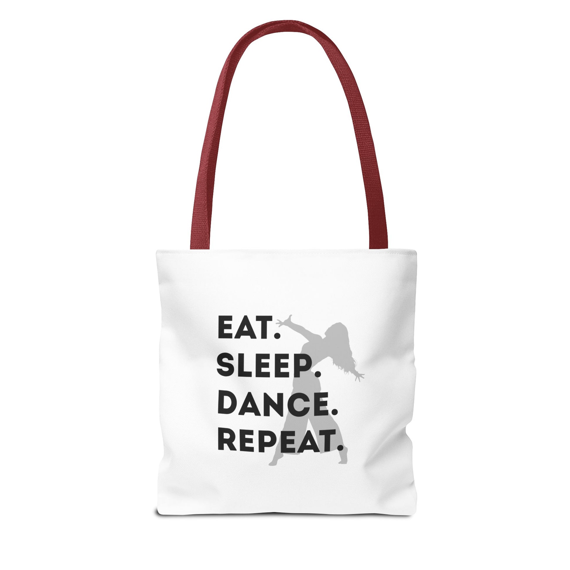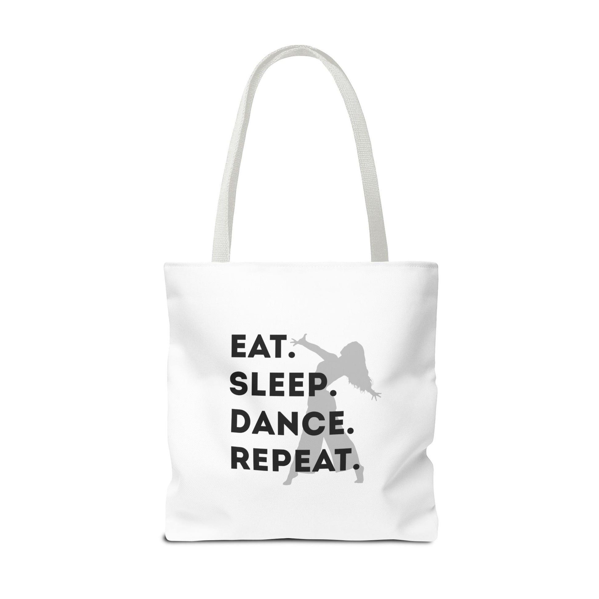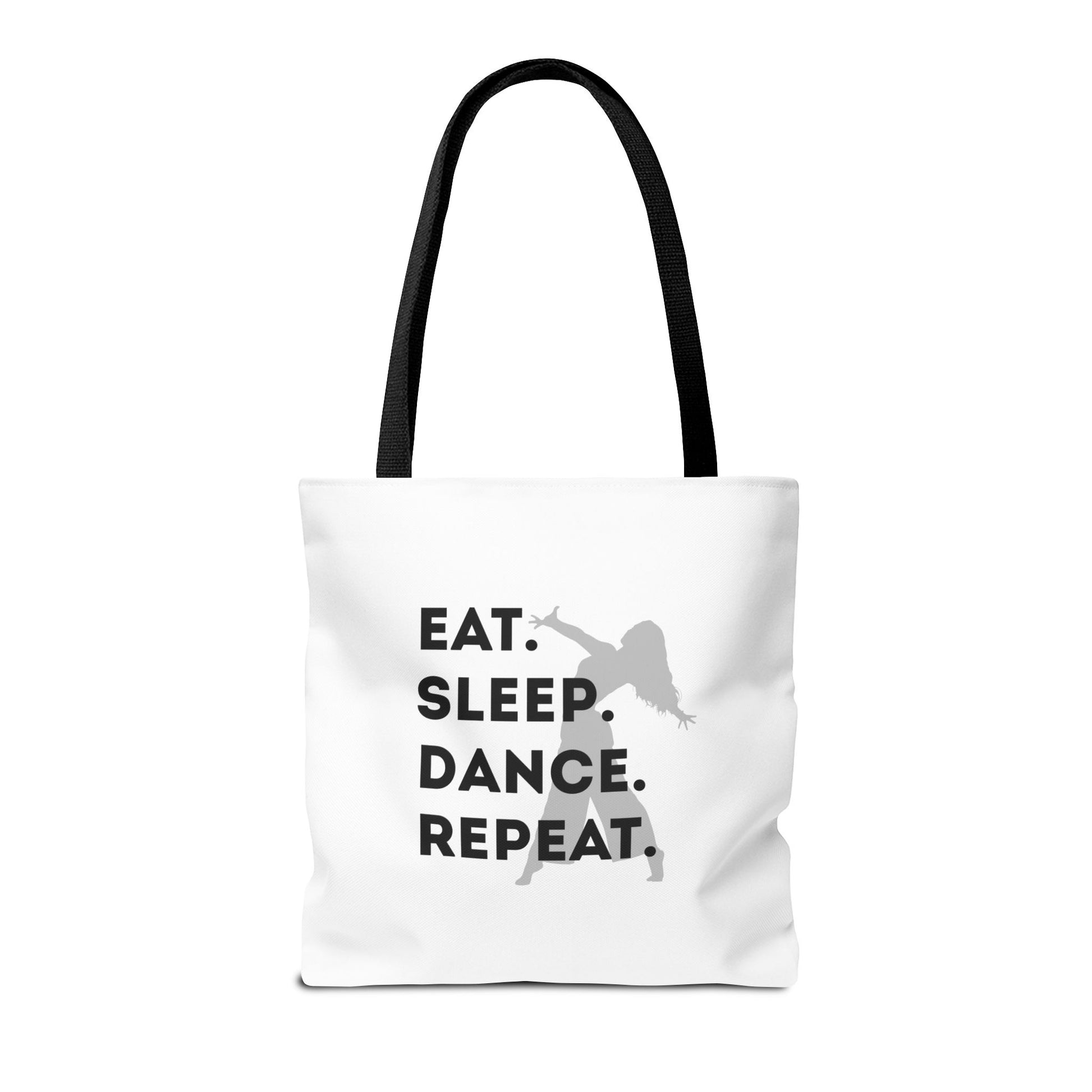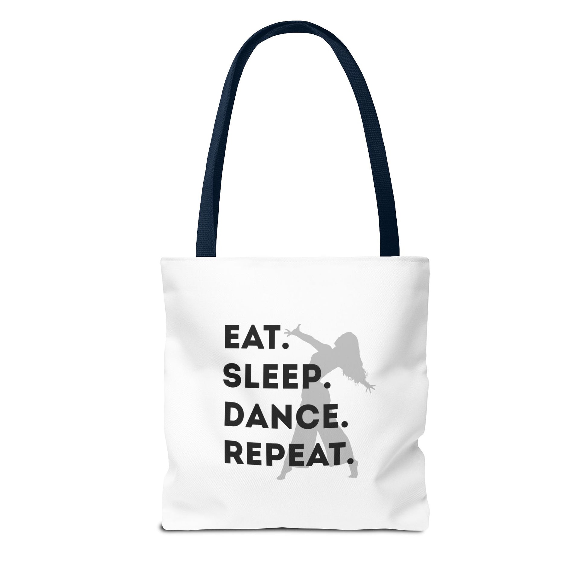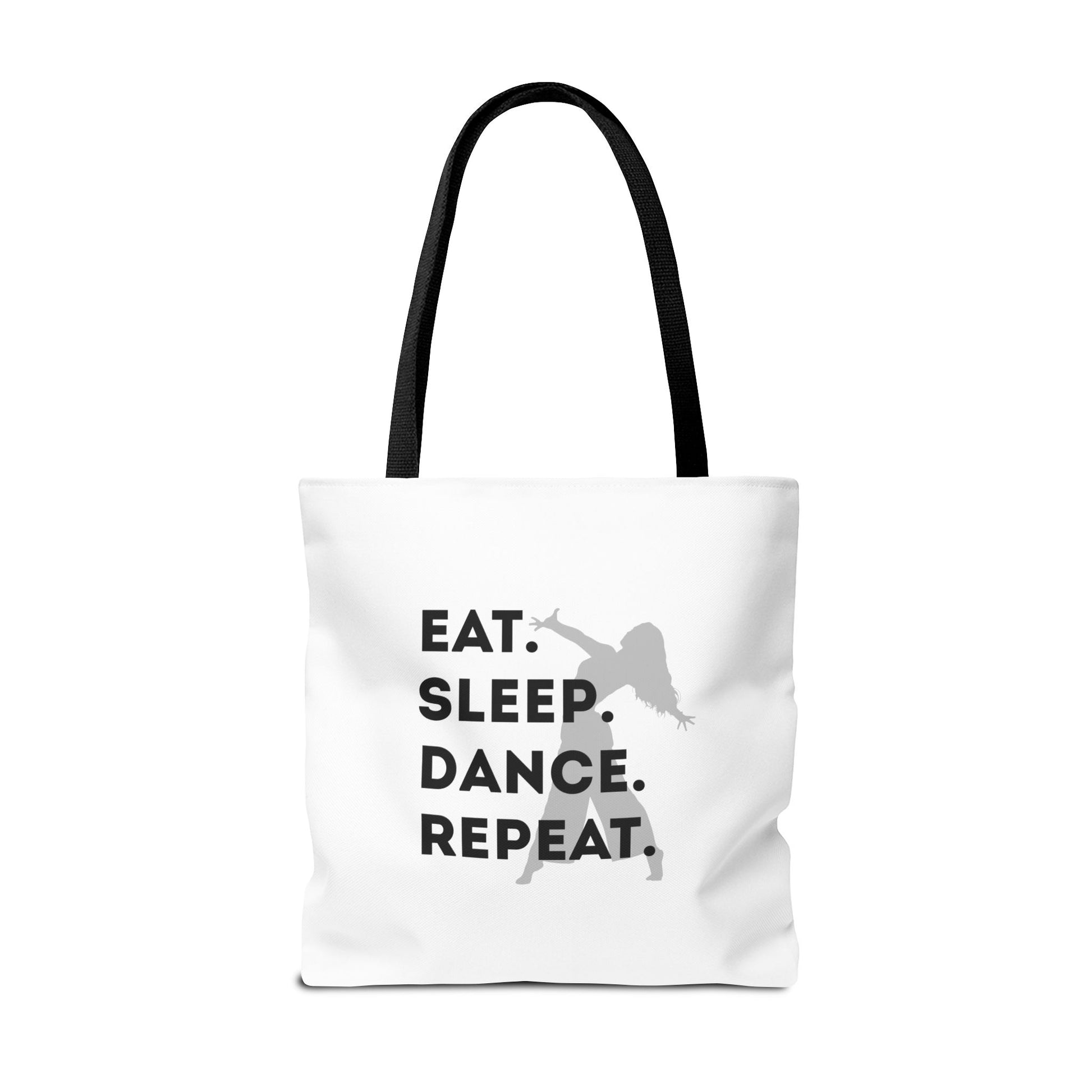 "Eat Sleep Dance Repeat" Canvas Tote Bag – Gray Dancer Silhouette Dance-Themed Reusable Shoulder Bag for Dancers, Studio, or Everyday Use