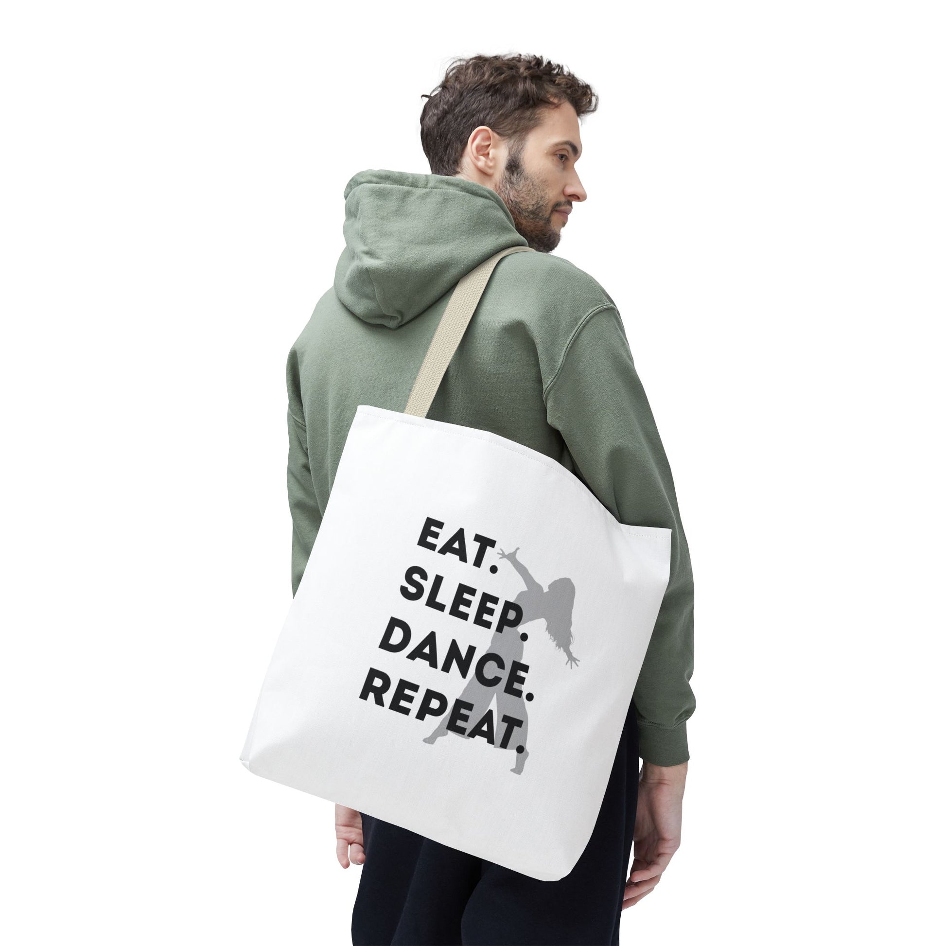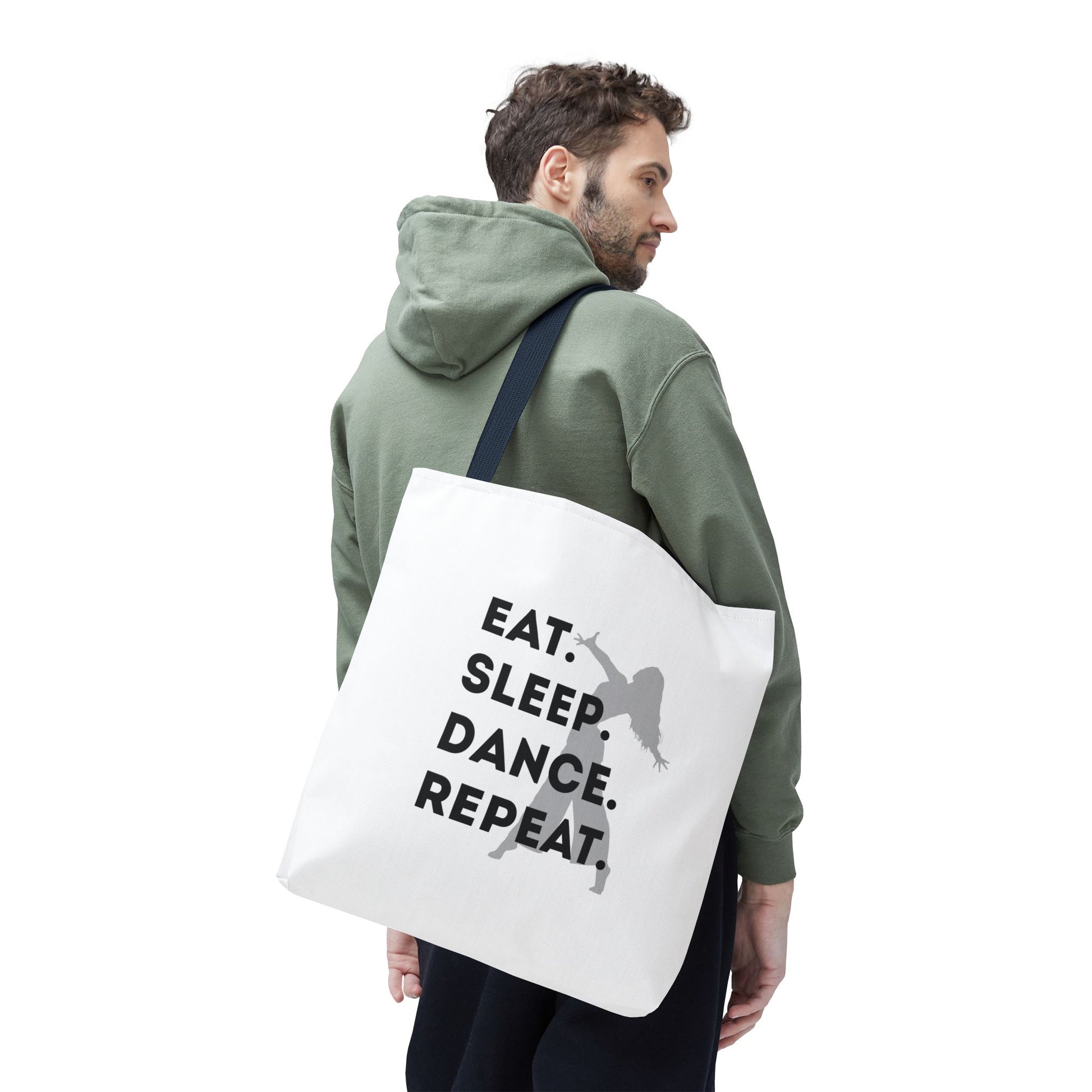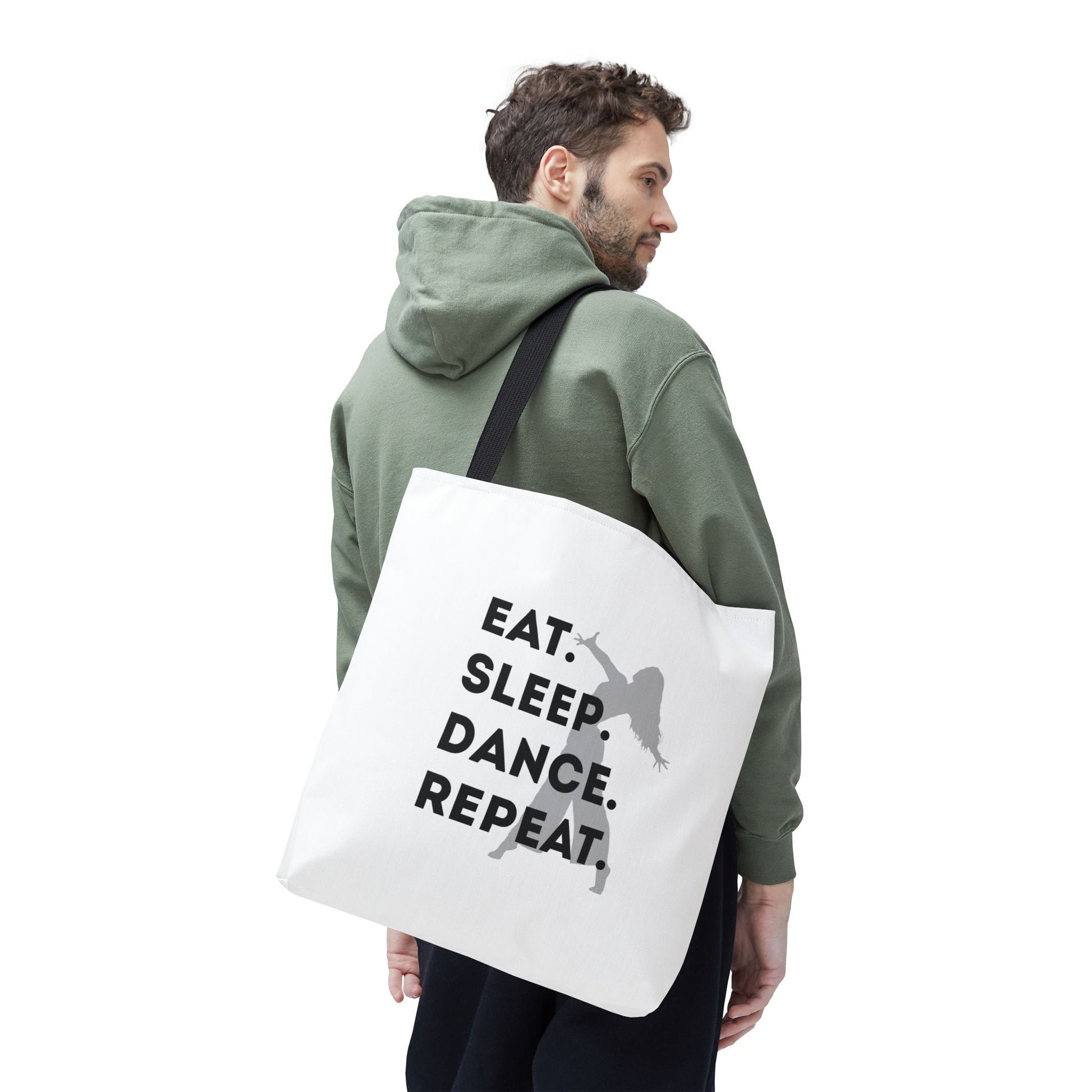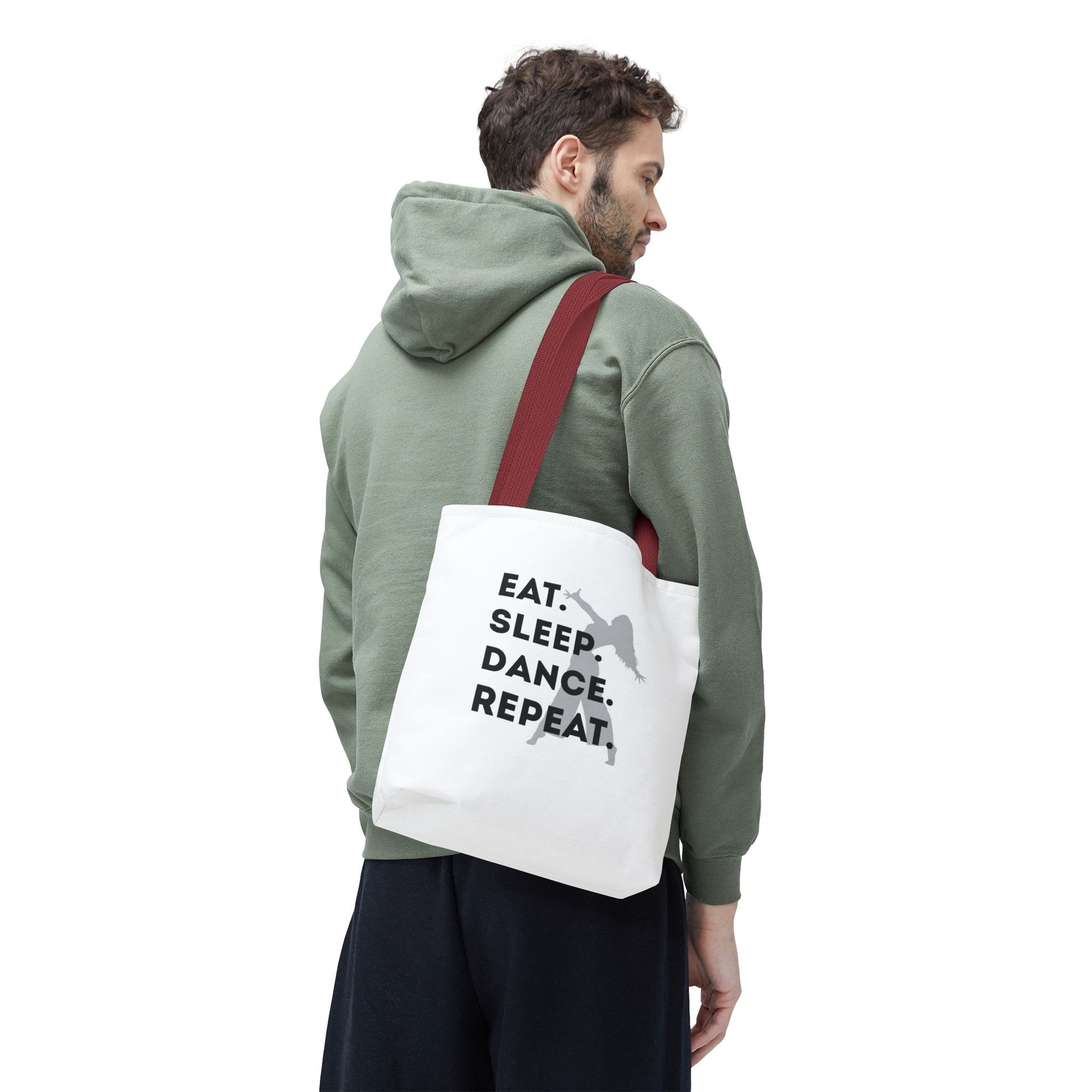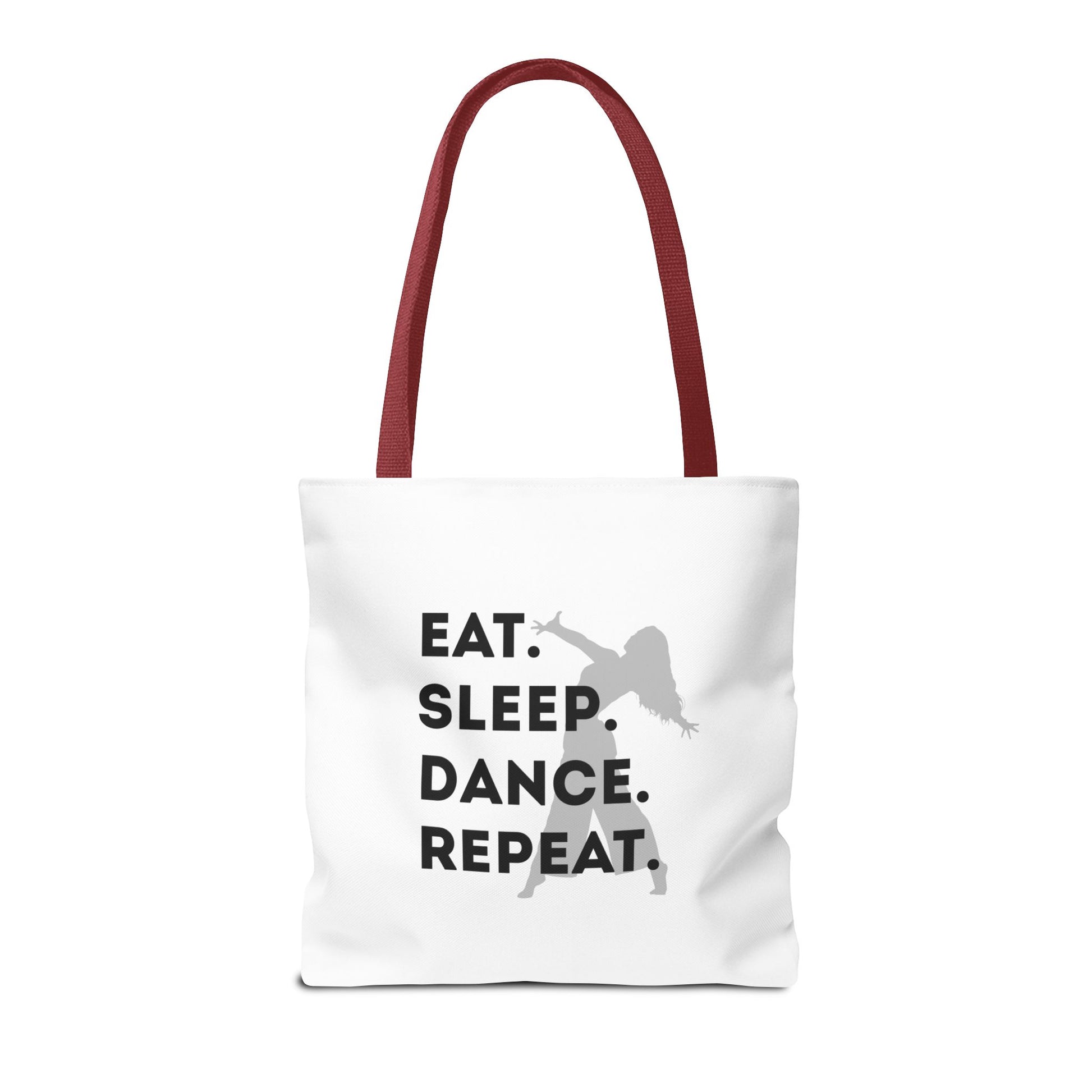 "Eat Sleep Dance Repeat" Canvas Tote Bag – Gray Dancer Silhouette Dance-Themed Reusable Shoulder Bag for Dancers, Studio, or Everyday Use