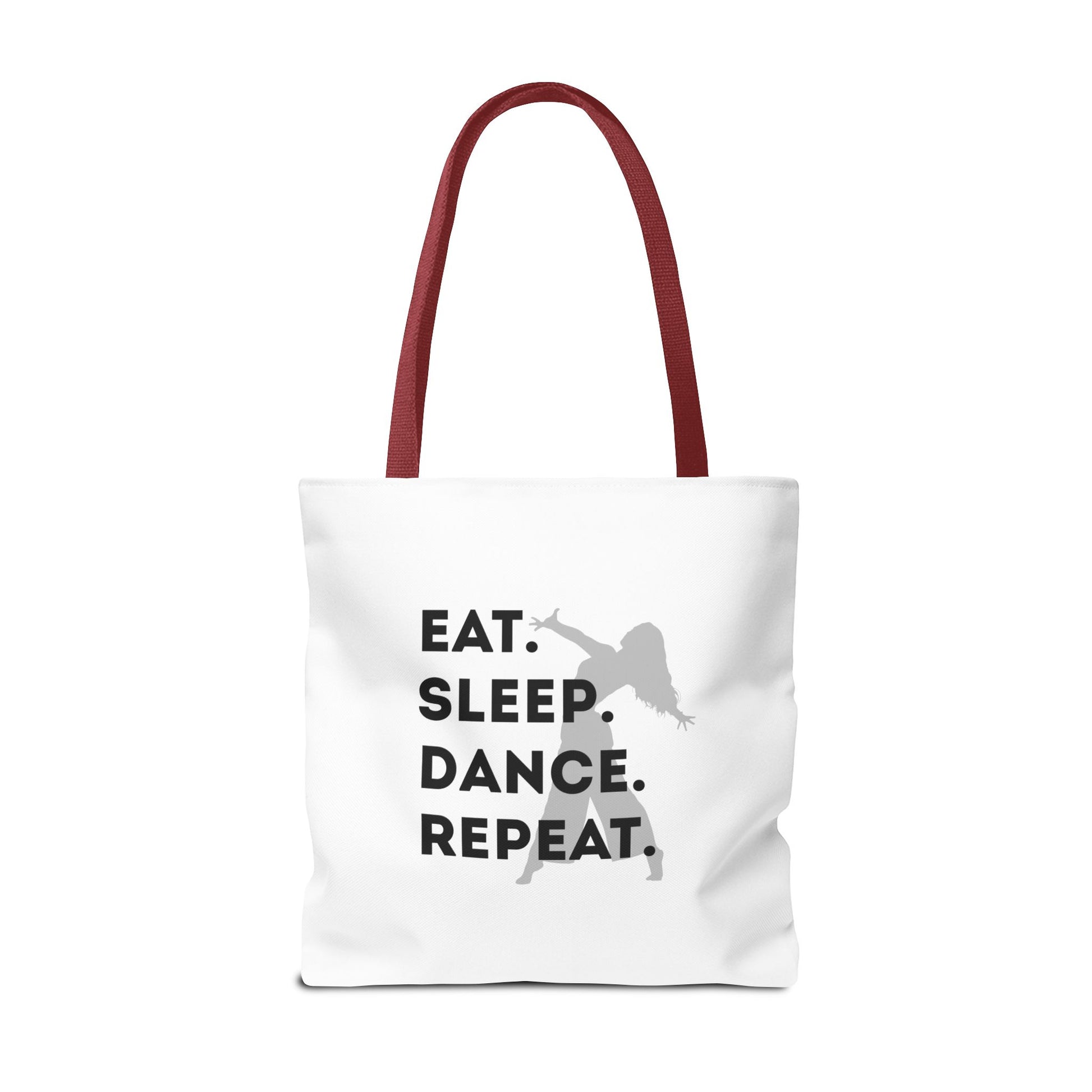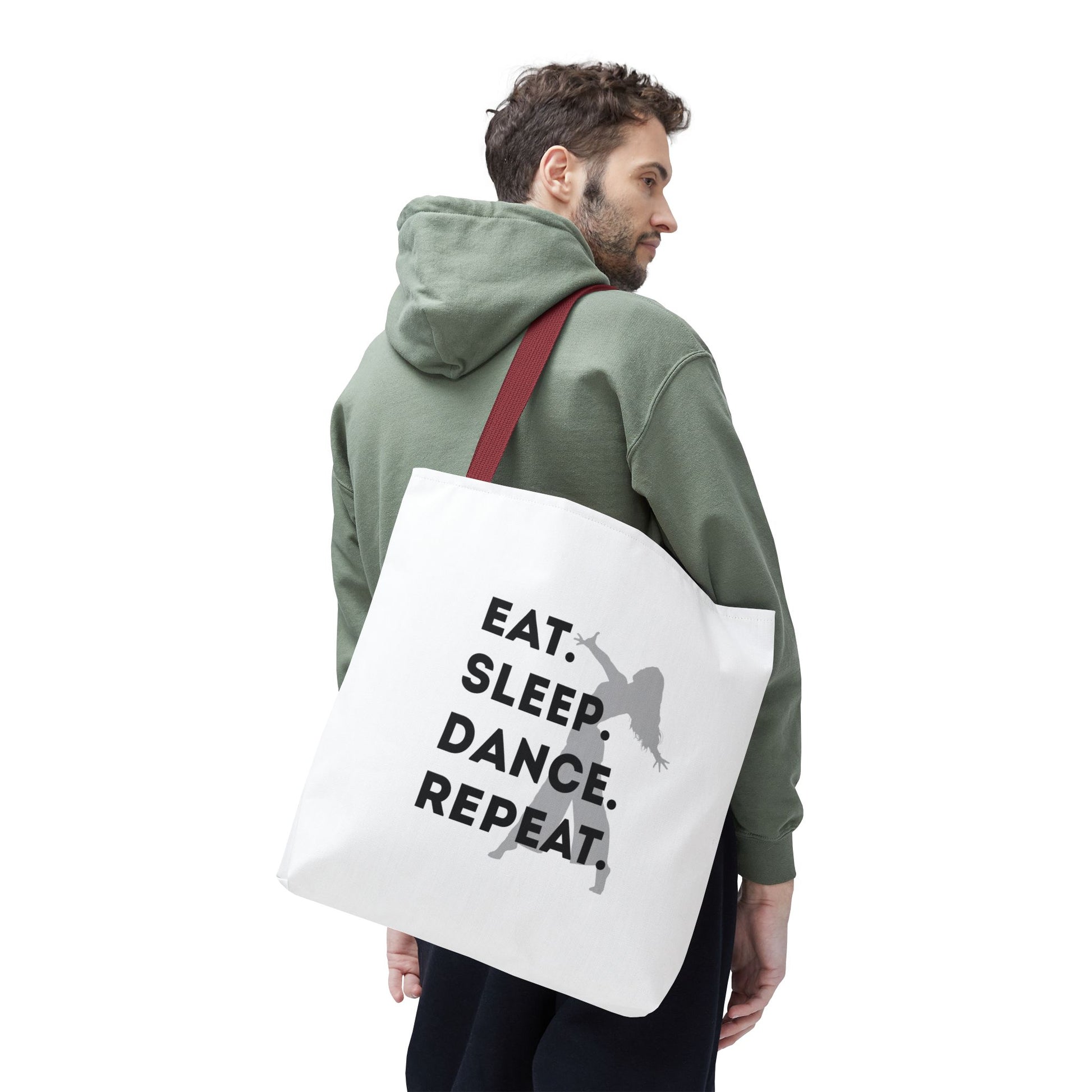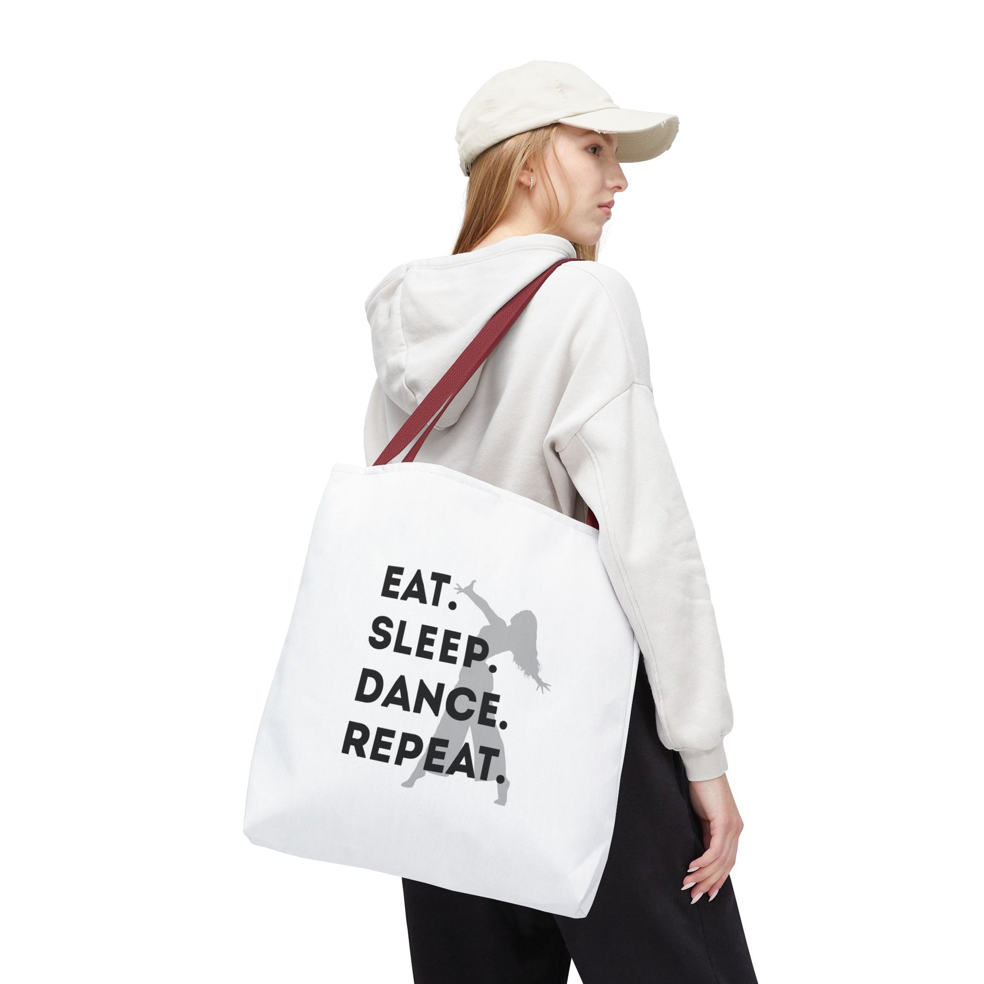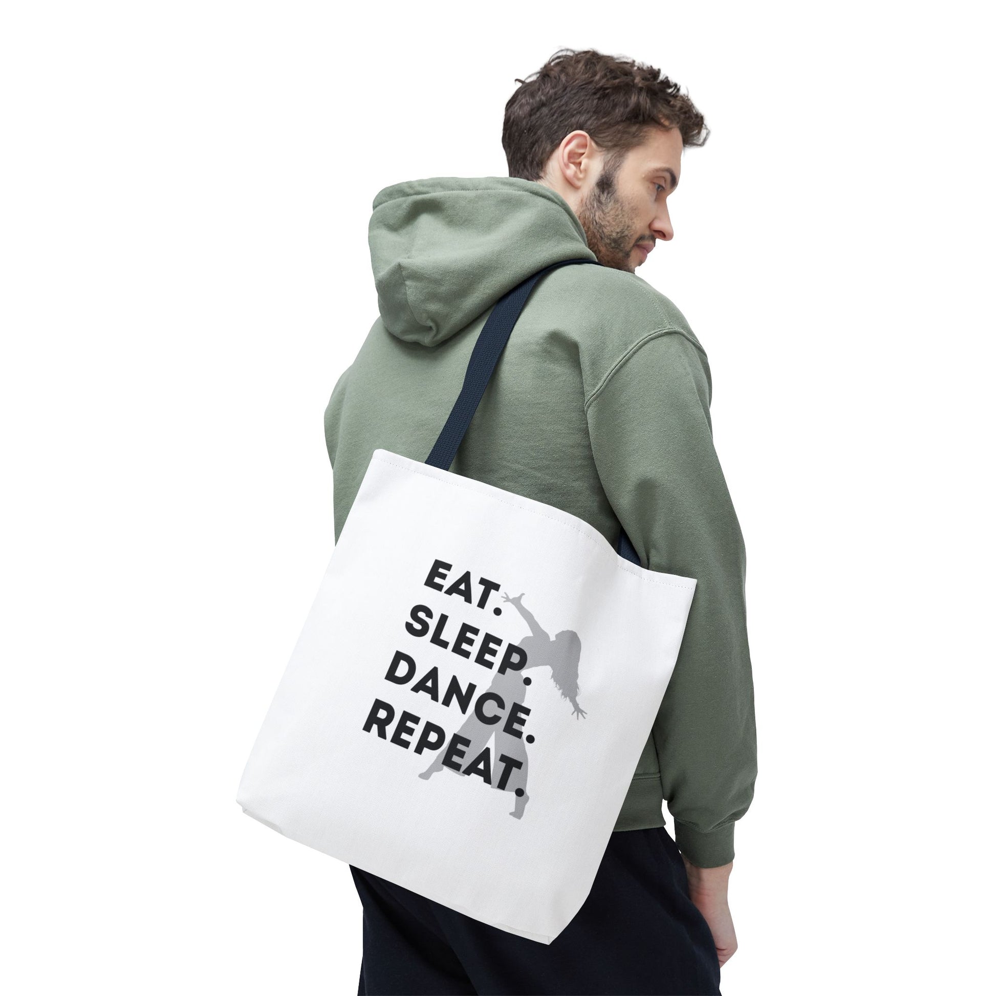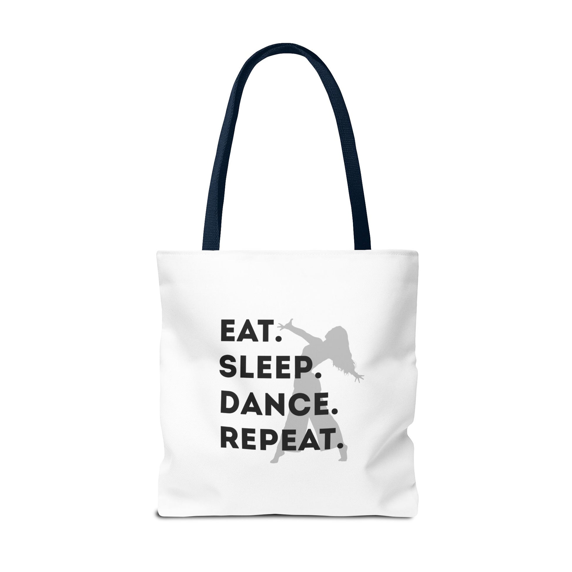 "Eat Sleep Dance Repeat" Canvas Tote Bag – Gray Dancer Silhouette Dance-Themed Reusable Shoulder Bag for Dancers, Studio, or Everyday Use