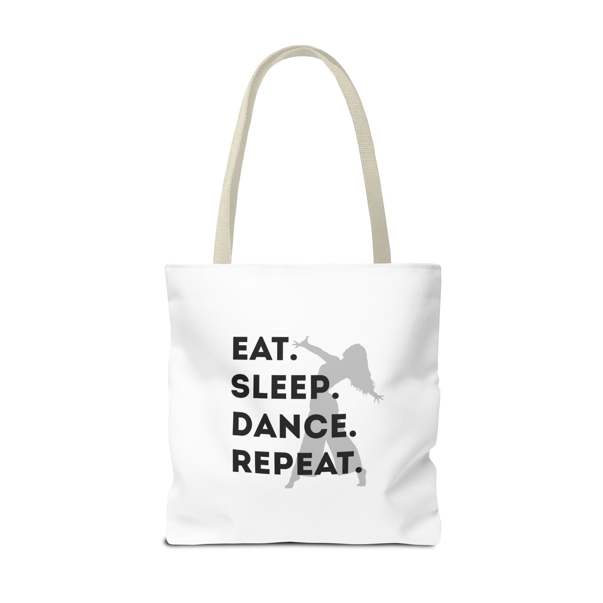 Ready to show the world your rhythm? Our "Eat. Sleep. Dance. Repeat." Canvas Tote Bag is made for movers, dreamers, and go-getters who live and breathe dance! Featuring a sleek gray silhouette of a dancer and bold text, this tote is both a fashion statement and a practical sidekick.