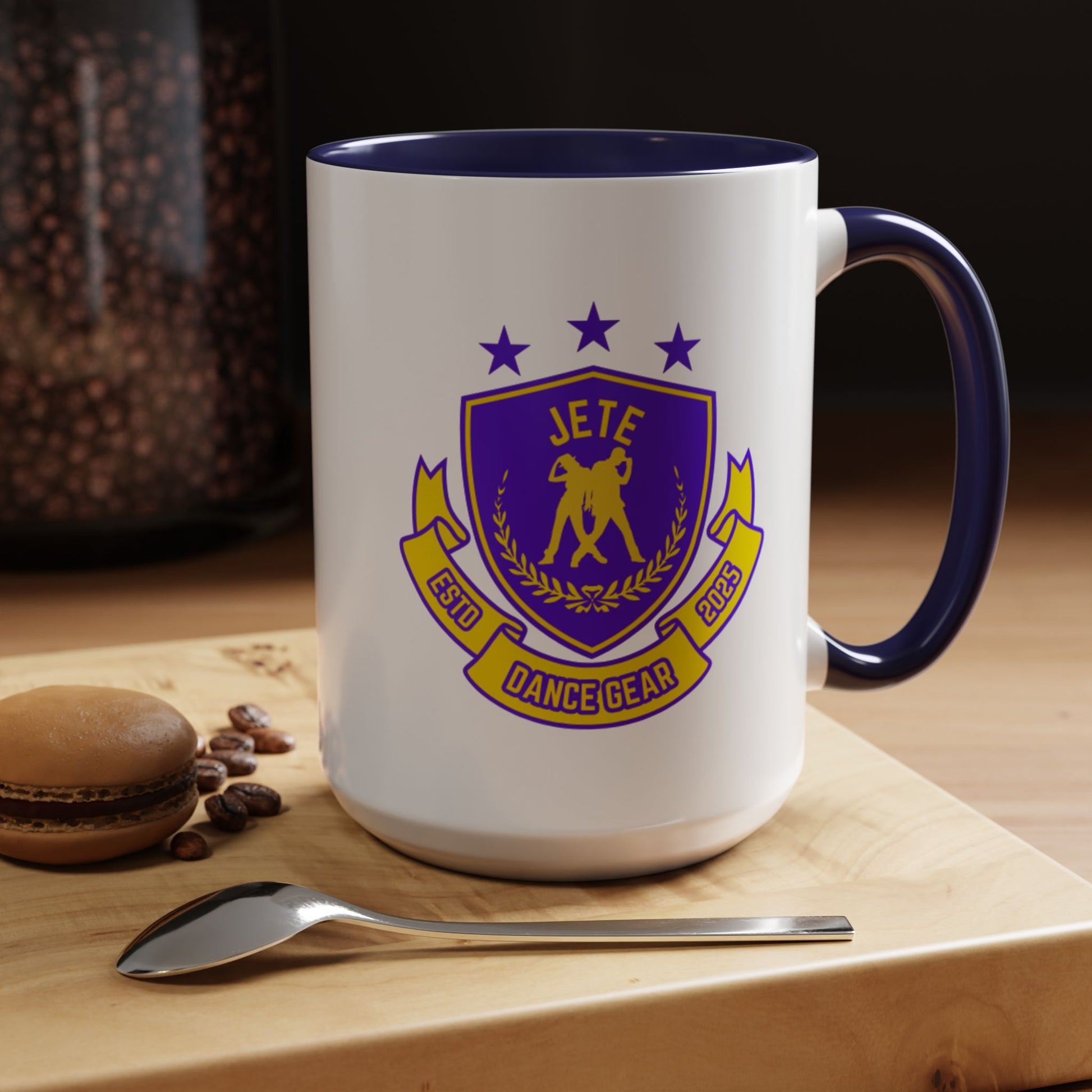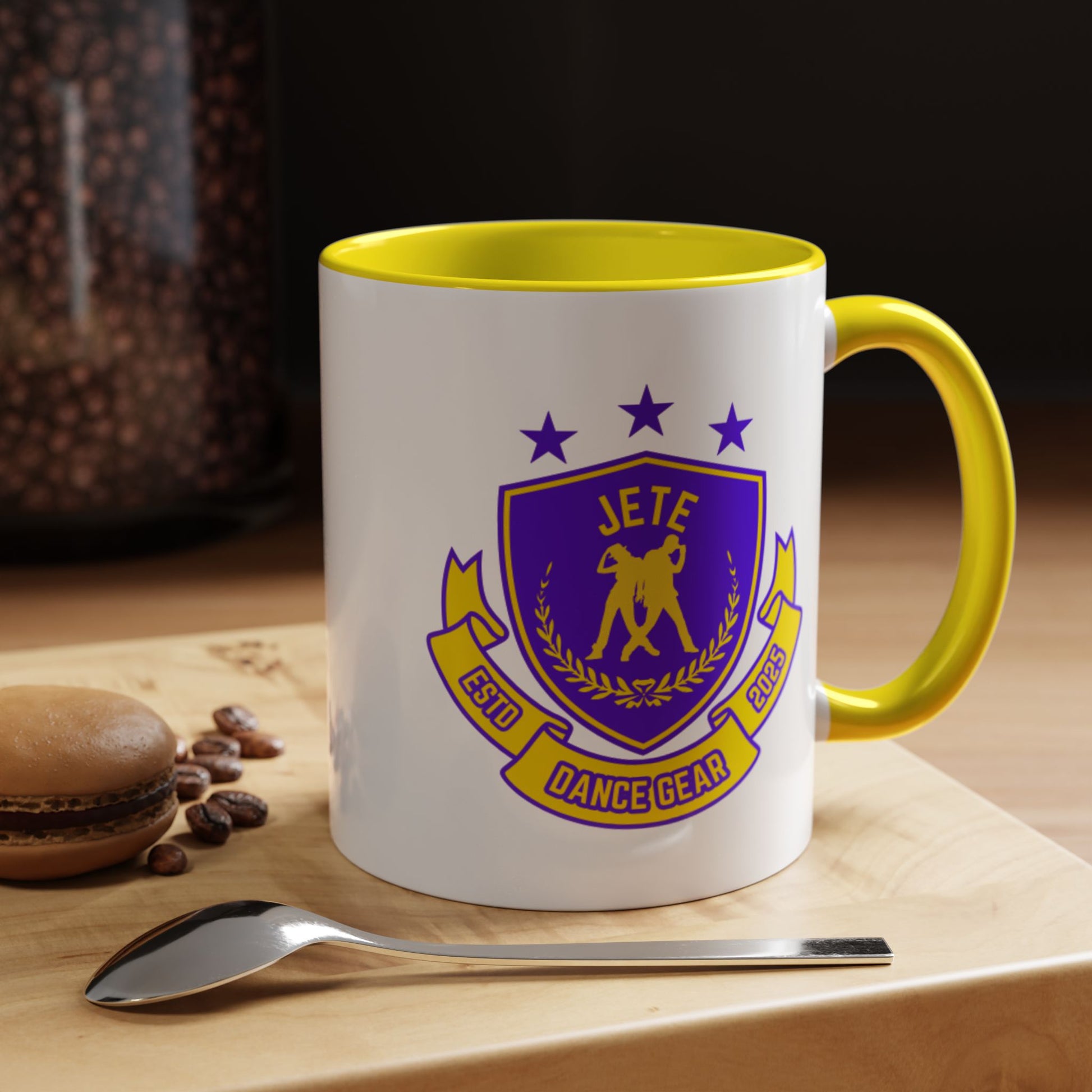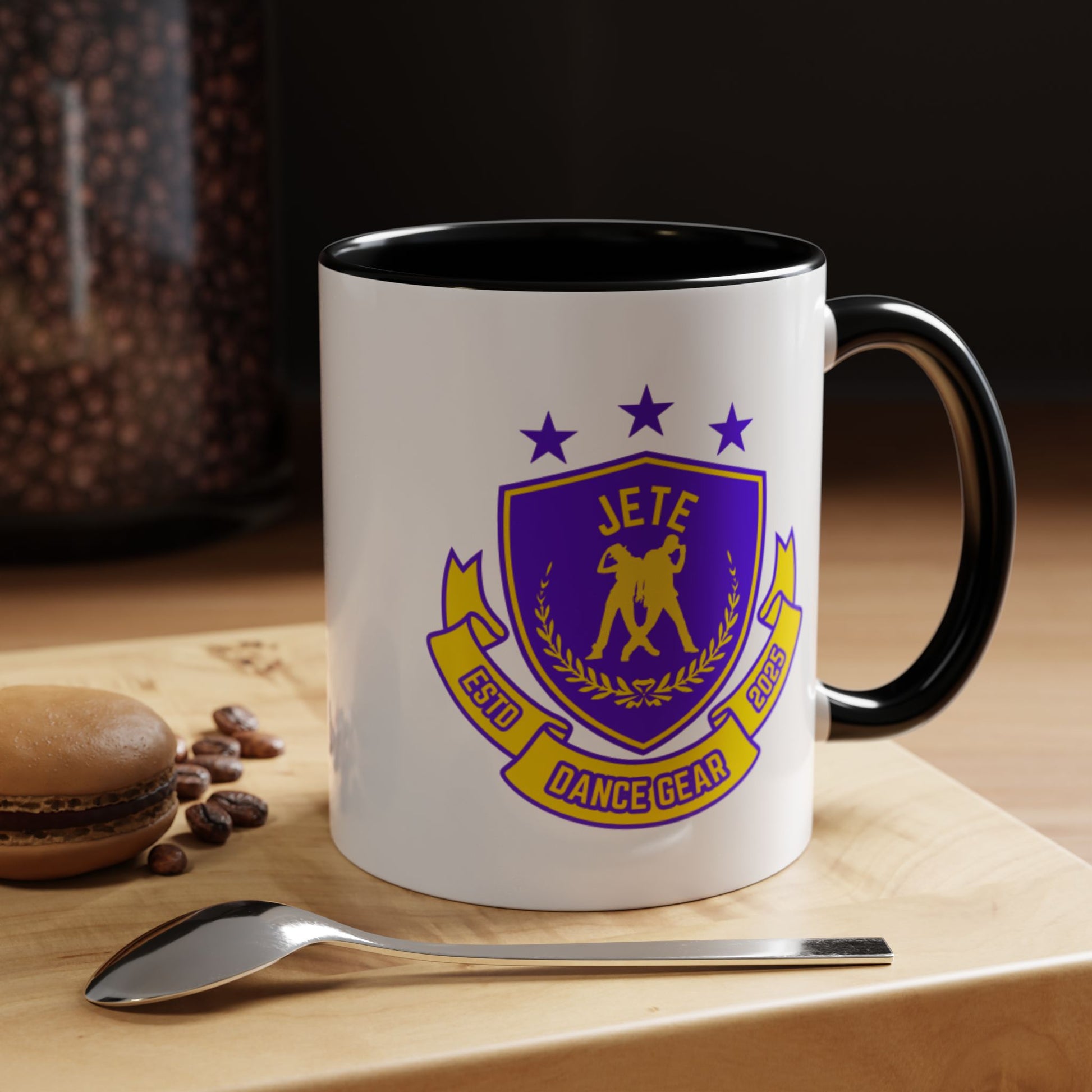 "Jeté Dance Gear Estd 2025" Accent Coffee Mug – Collegiate Style Ceramic Mug for Dancers and Studio Pride