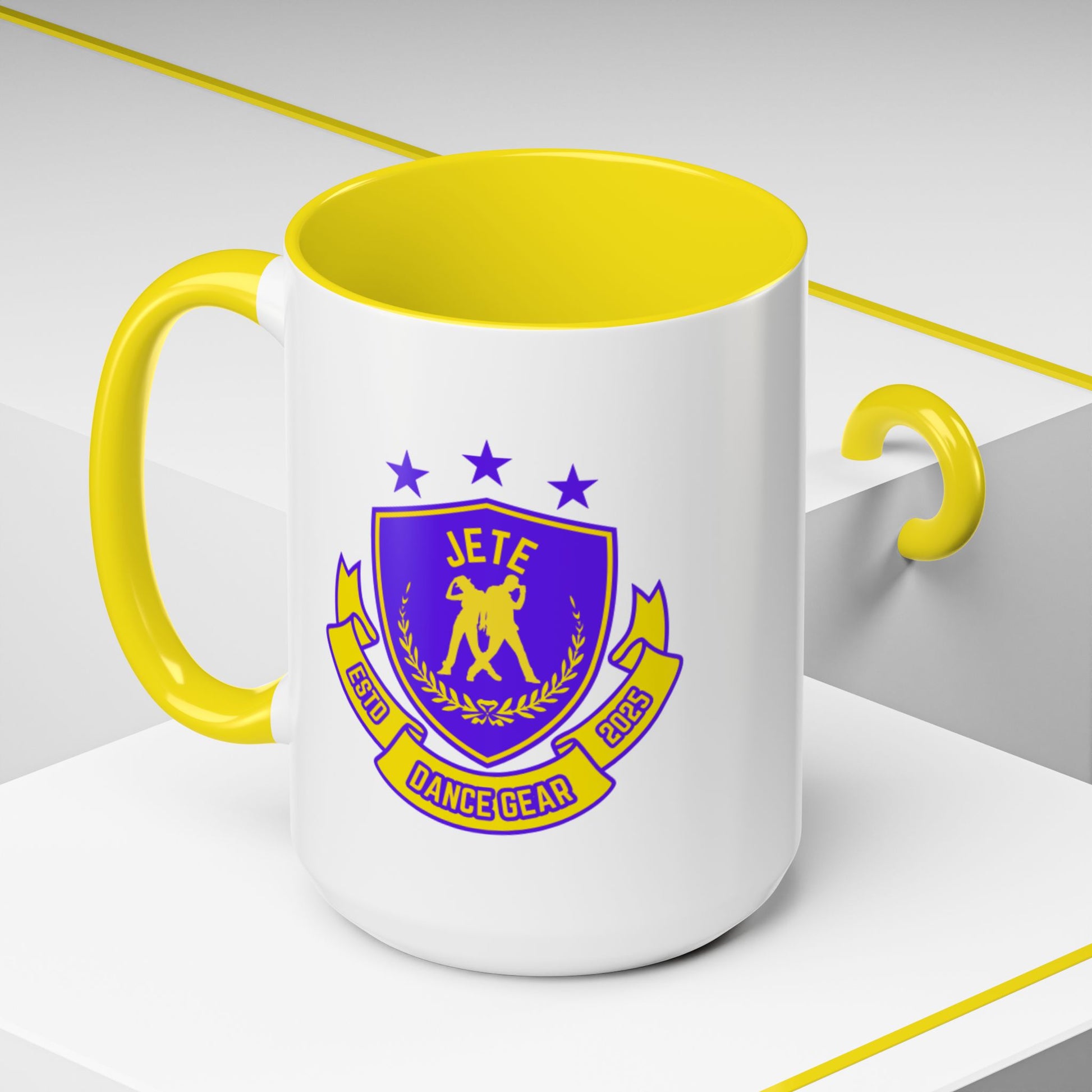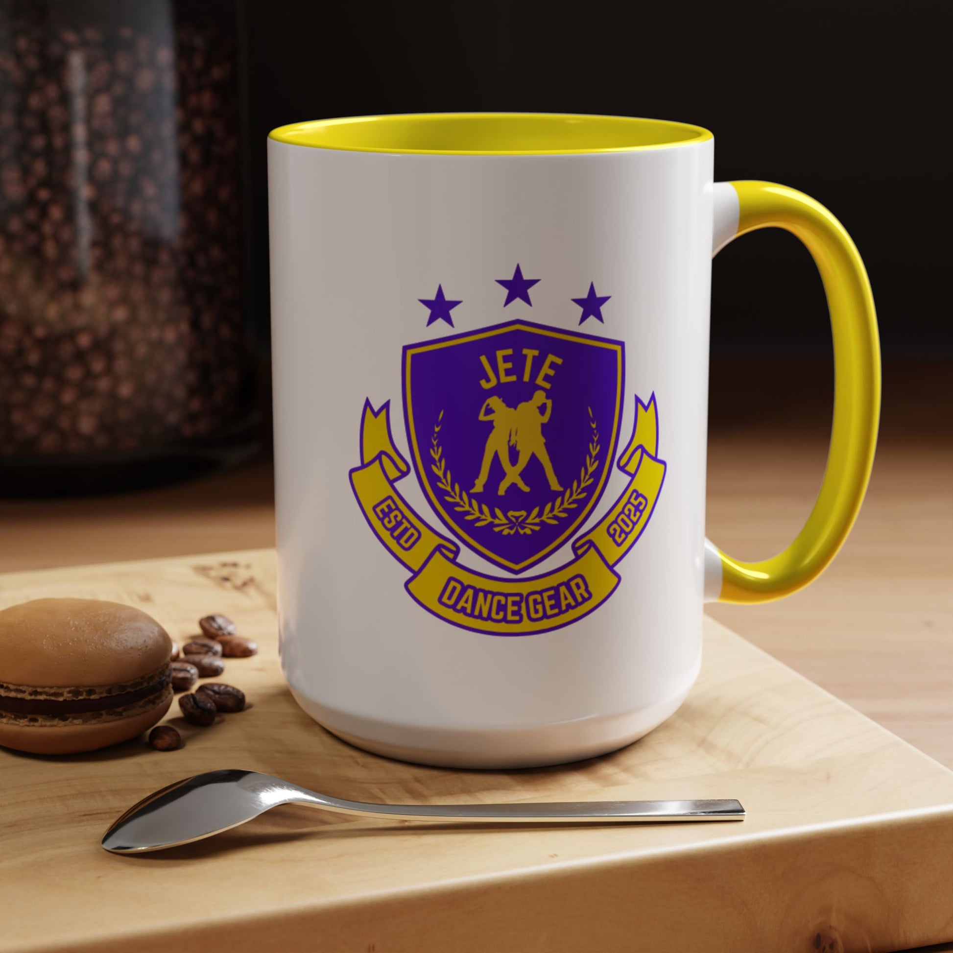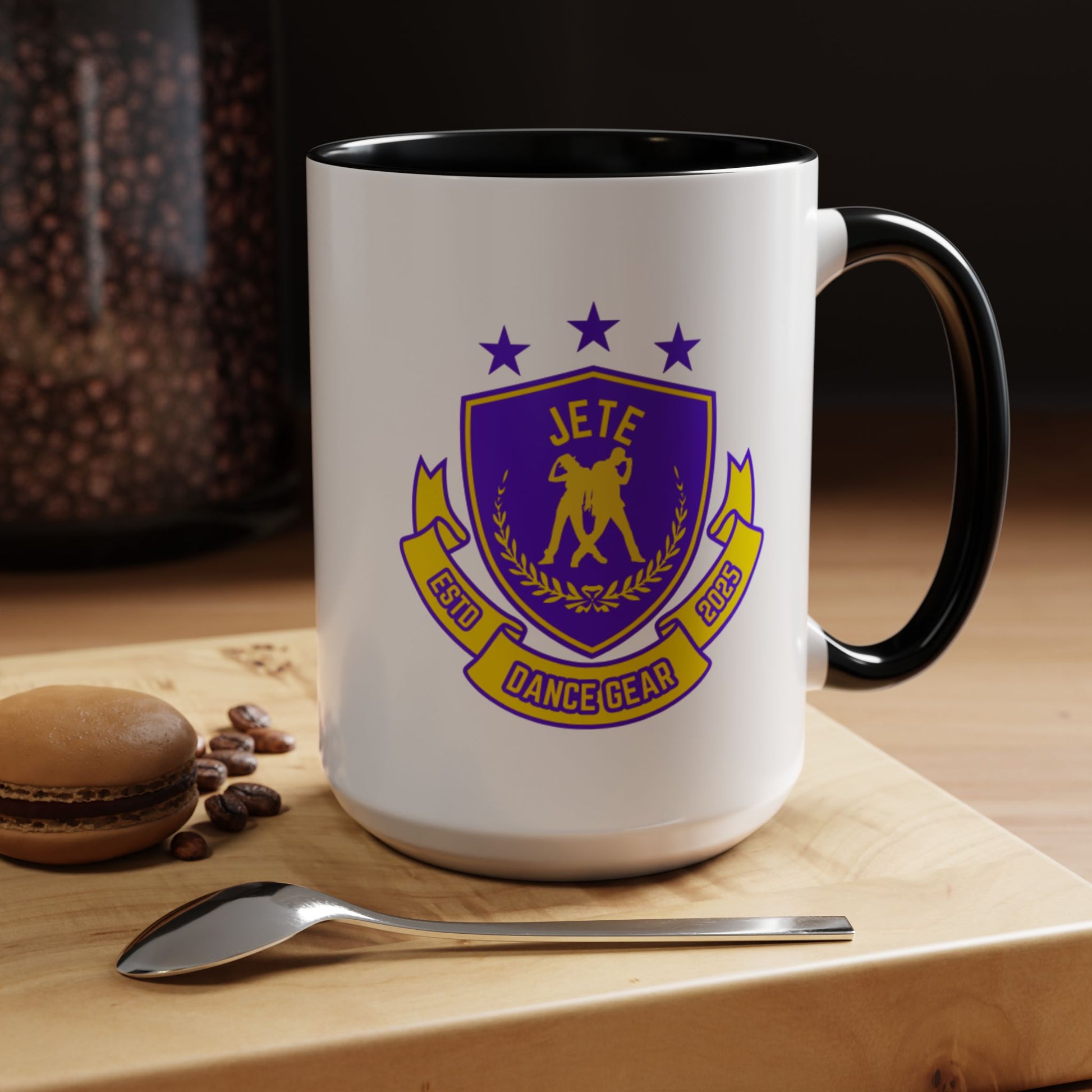 "Jeté Dance Gear Estd 2025" Accent Coffee Mug – Collegiate Style Ceramic Mug for Dancers and Studio Pride