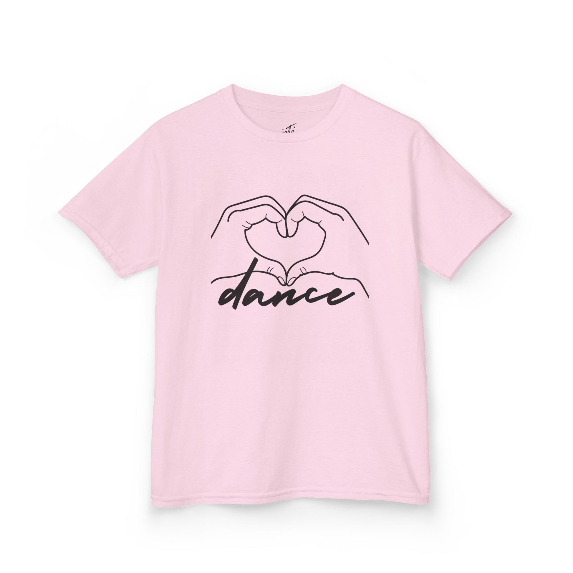 This kids tee features hands forming a heart with the word dance, a joyful design that celebrates movement, passion, and pure fun. Soft, breathable, and comfy, it is perfect for dance class, playtime, and turning through everyday adventures.