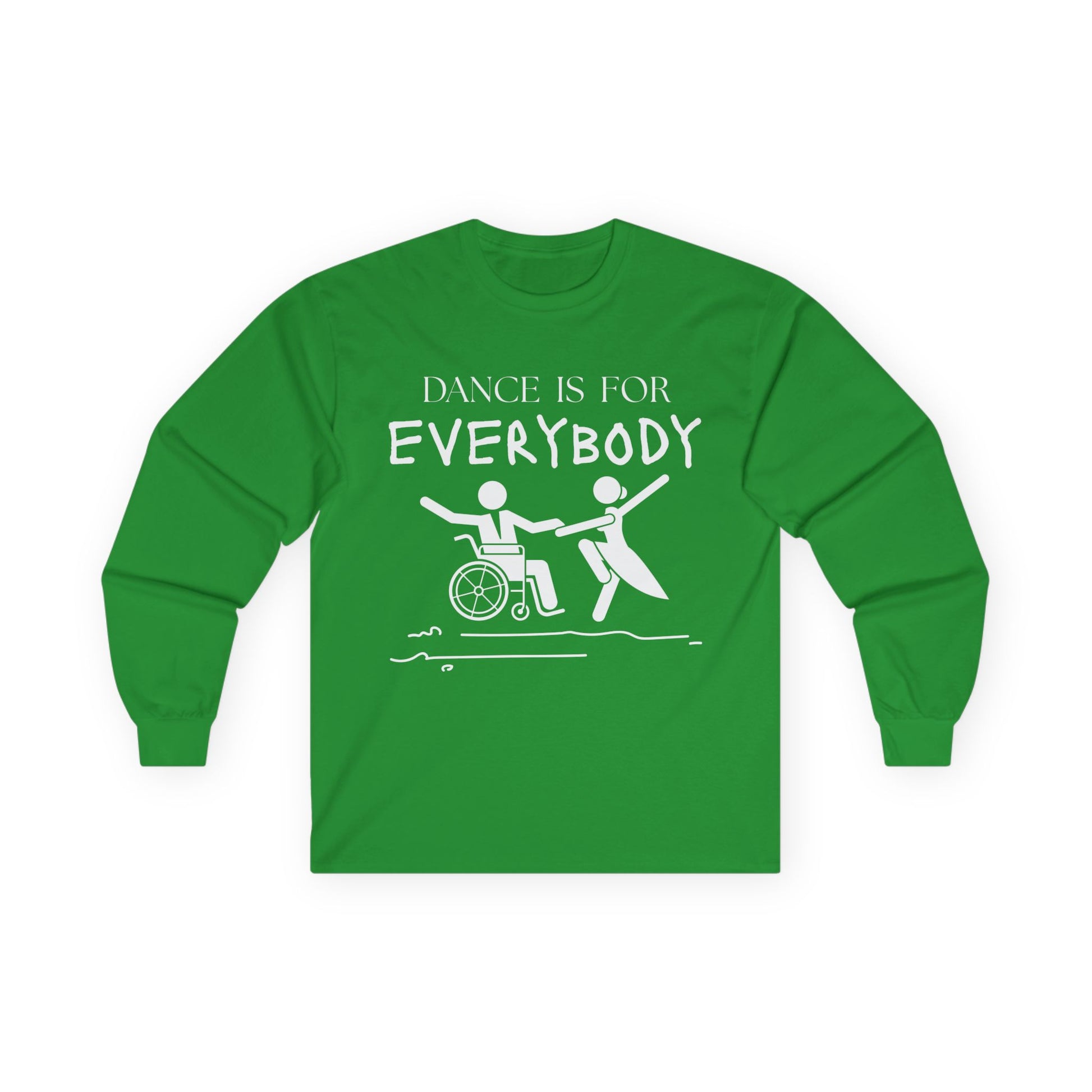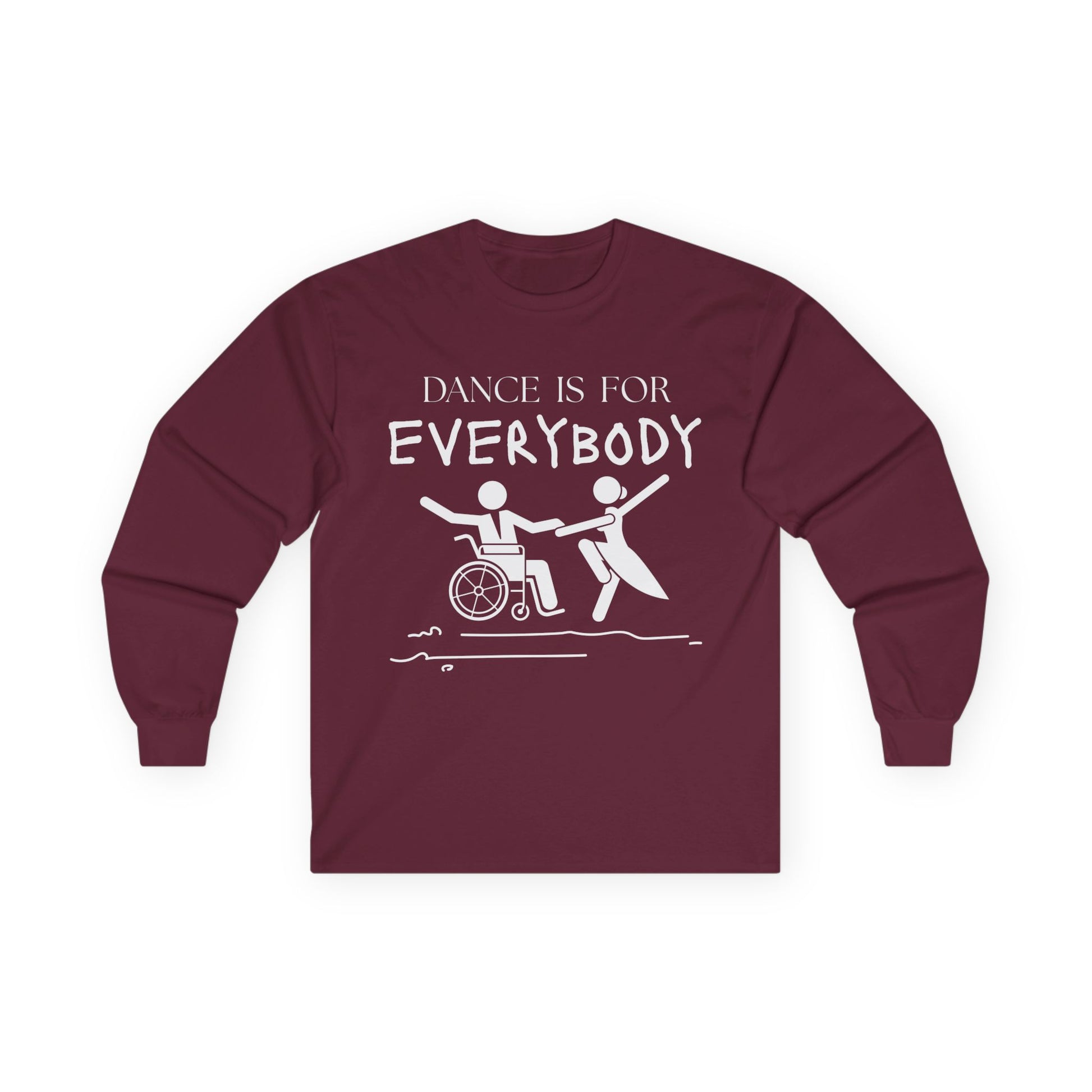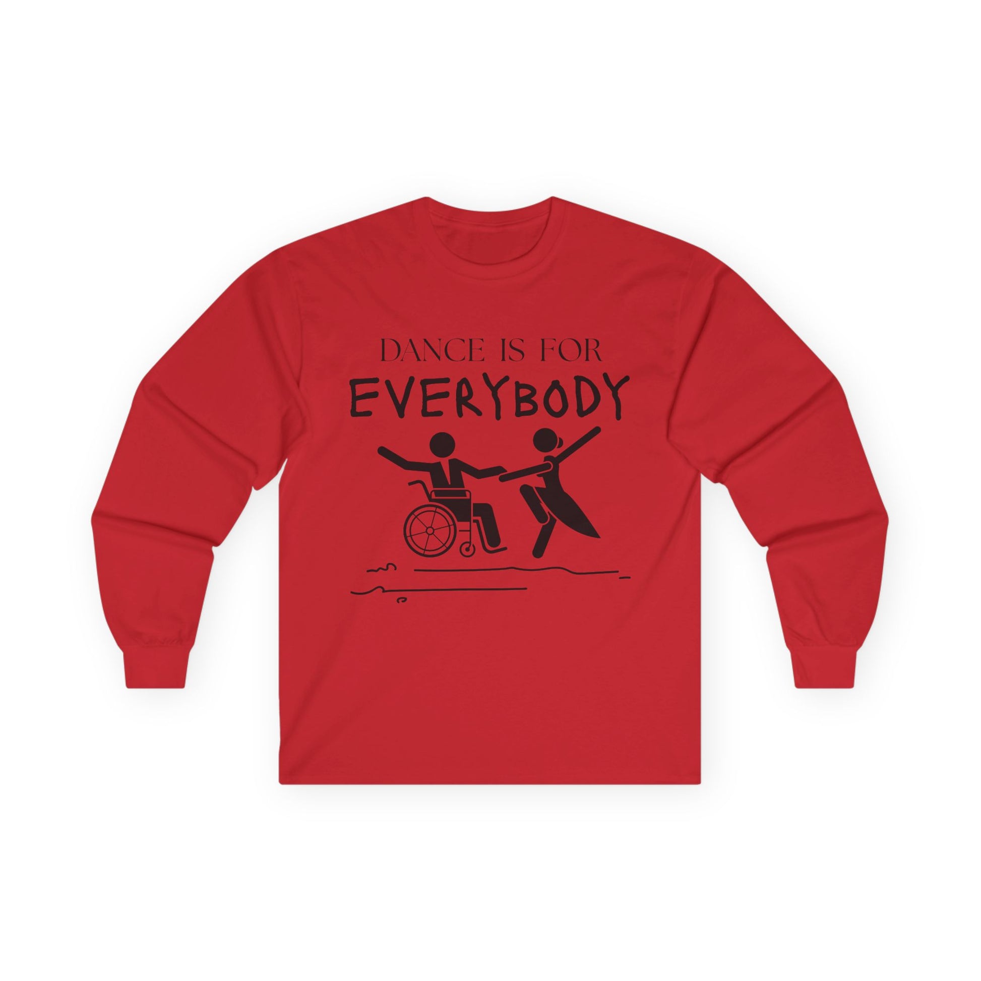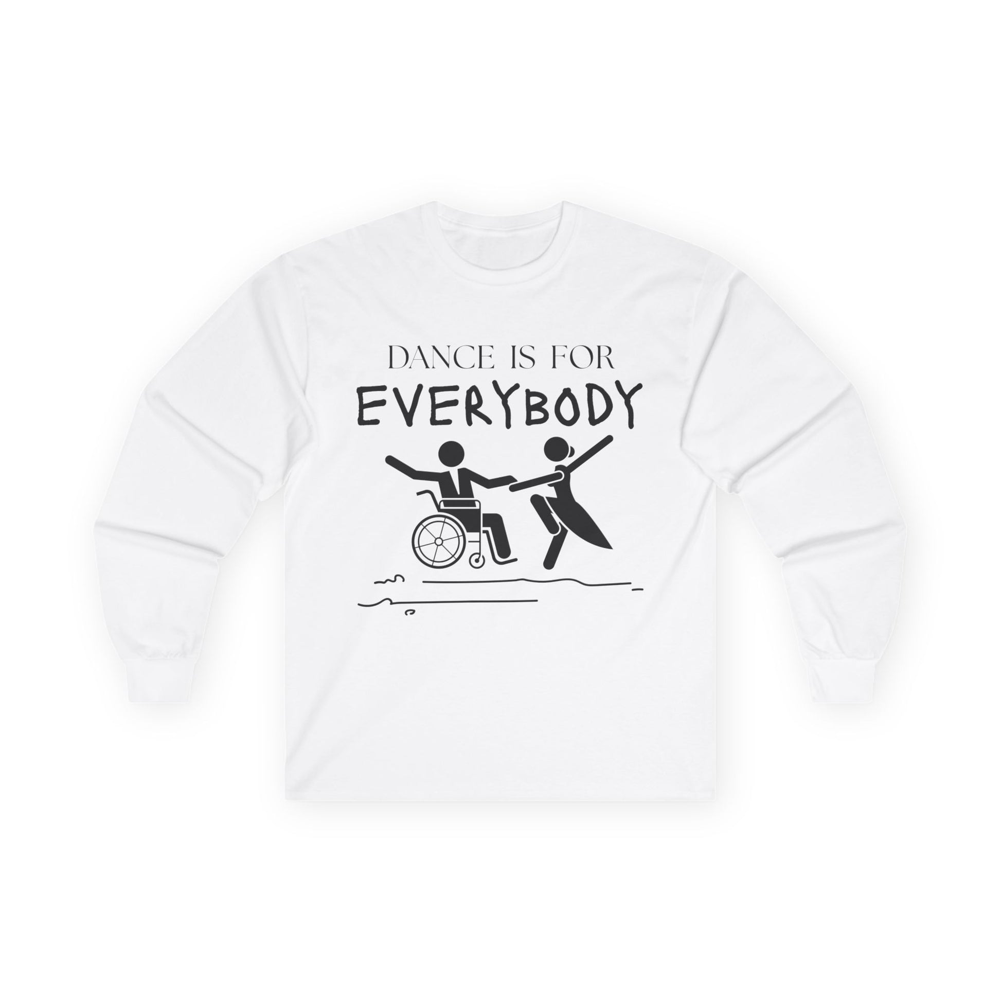 Celebrate movement, joy, and everyone’s right to dance with our “Dance is for Everybody” Unisex Long Sleeve Tee! Designed to make a statement both in and out of the studio, this tee reminds the world that dance knows no limits, it’s for every body, every age, every background, and every ability.