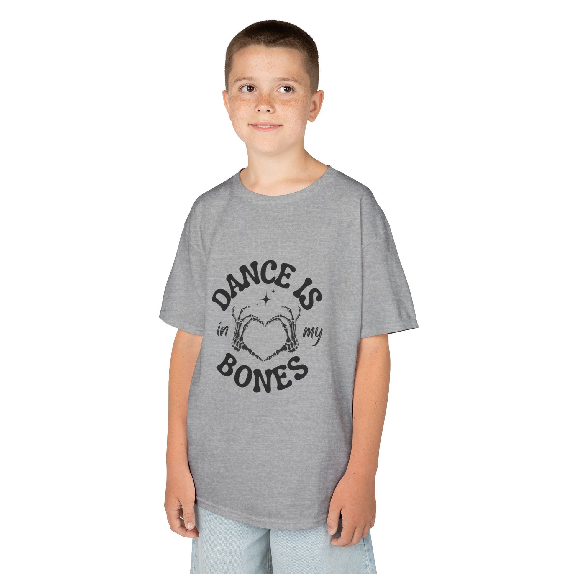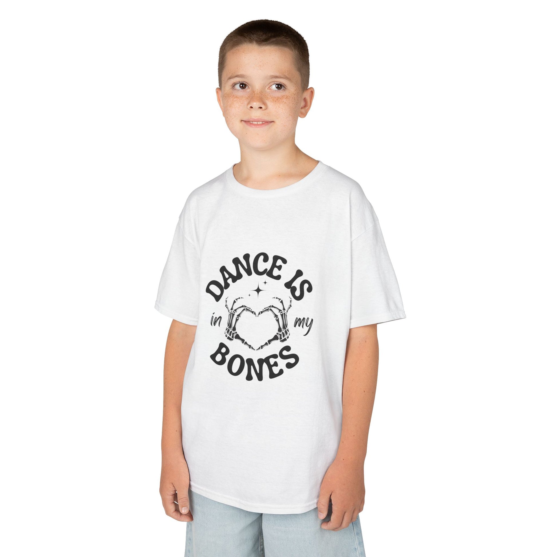 “Dance Is in My Bones” Halloween Dance T-Shirt with Cute Skeleton Heart Graphic - Kids Heavy Cotton™ Tee