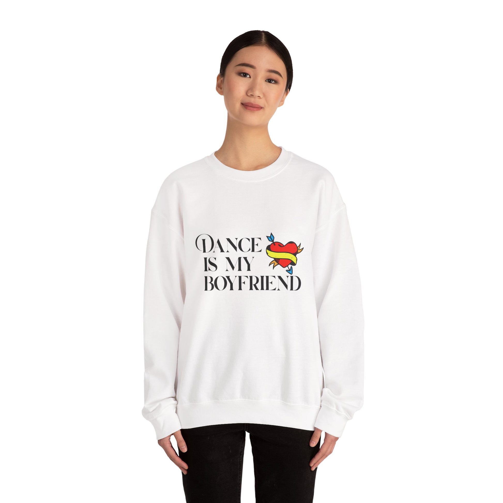 Dance Is My Boyfriend Unisex Crewneck Sweatshirt – Cute Heart Tattoo Graphic Dance Lover Pullover