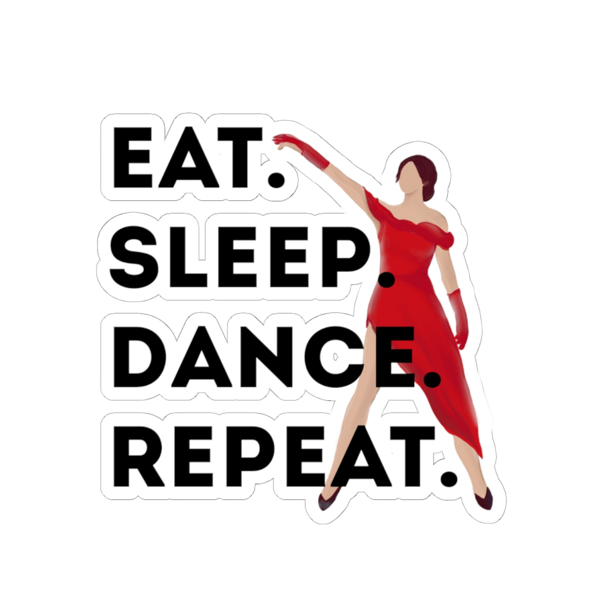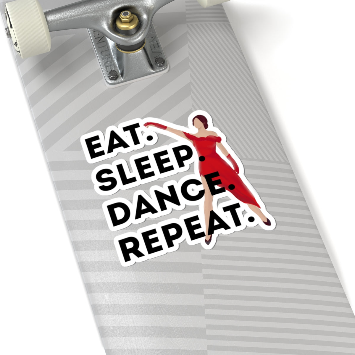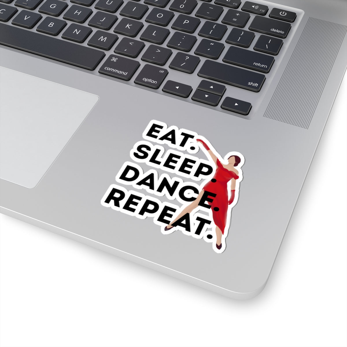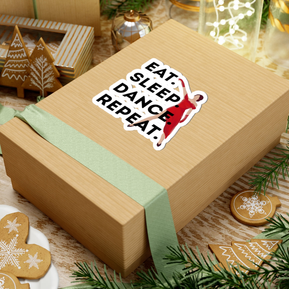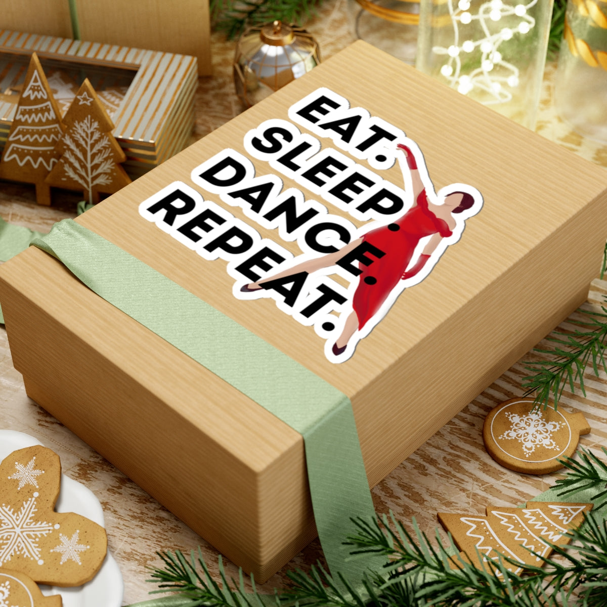 "Eat Sleep Dance Repeat" Kiss-Cut Sticker – Bold Dancer Graphic – Fun Dance-Themed Vinyl Sticker for Laptops, Journals & Water Bottles