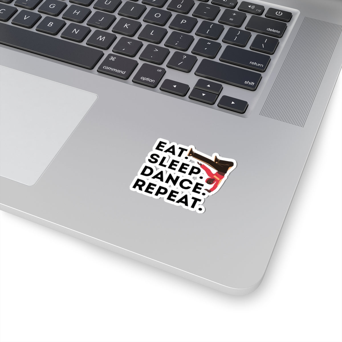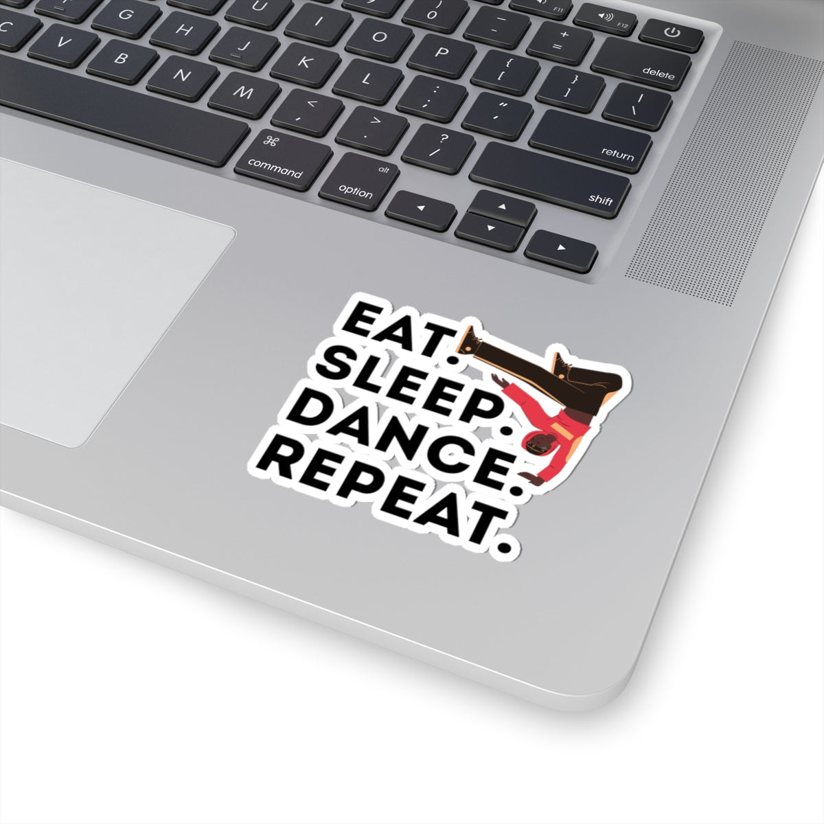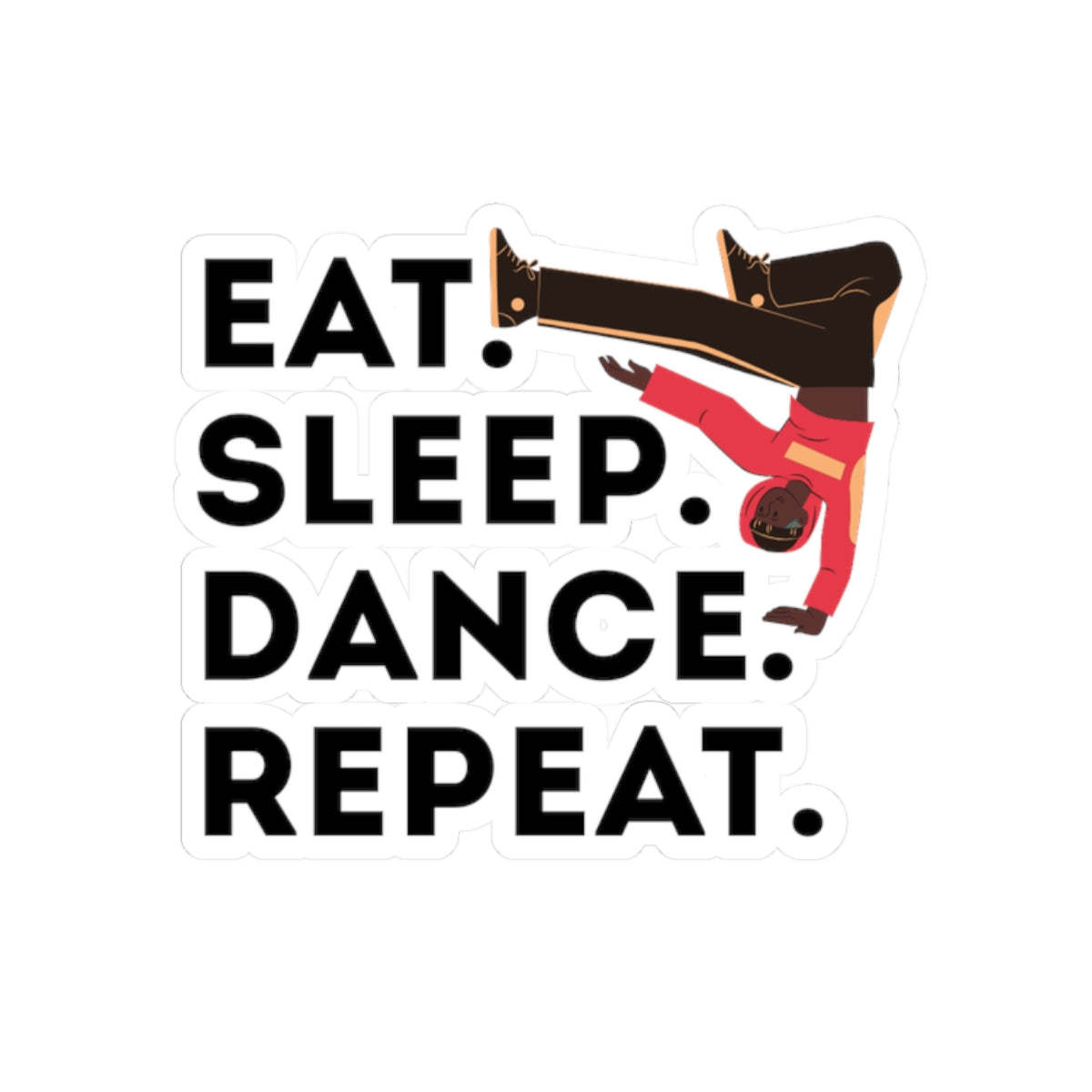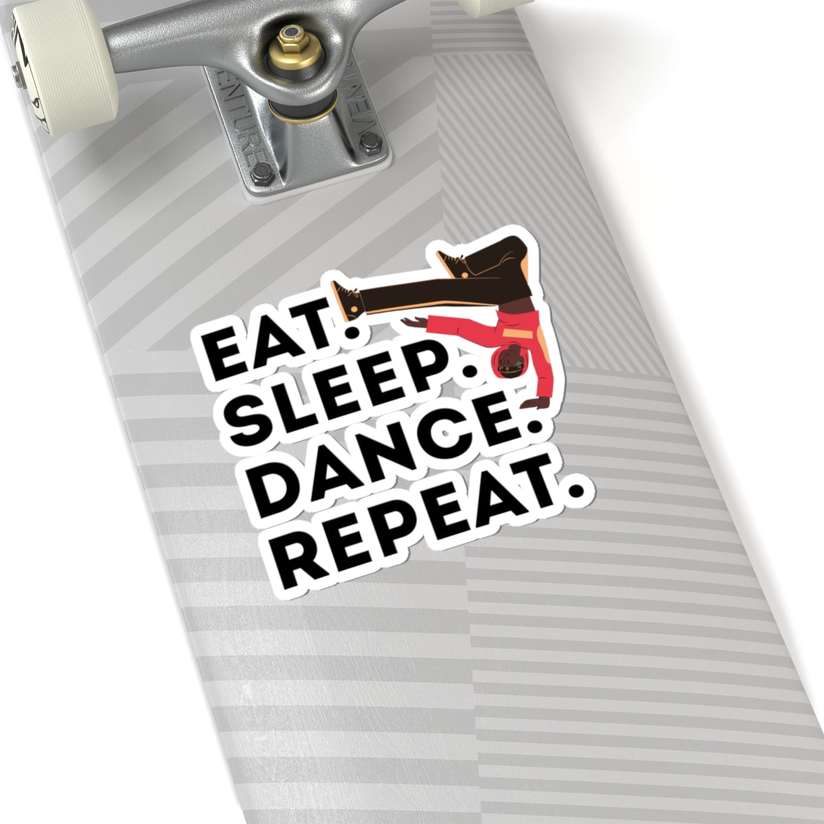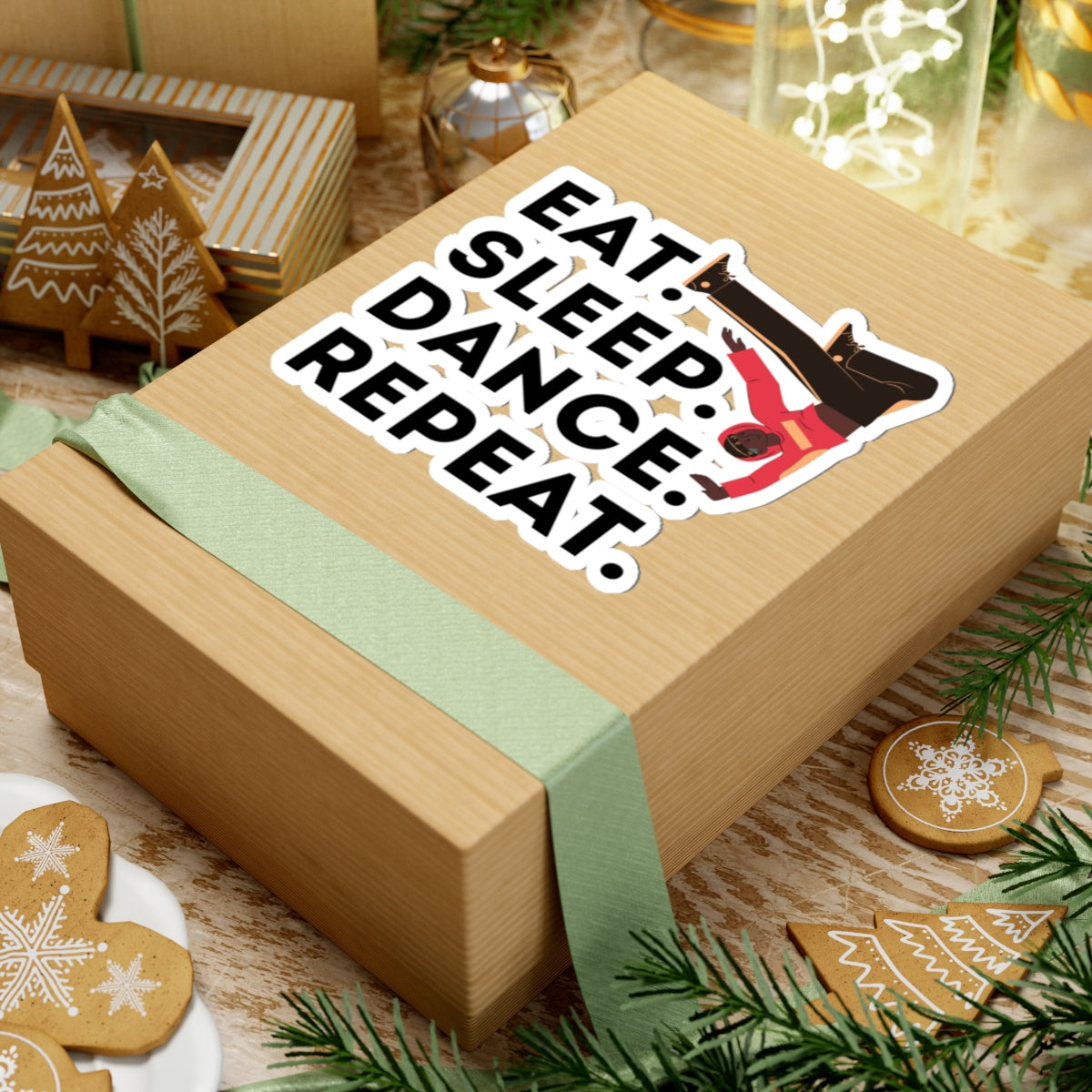"Eat Sleep Dance Repeat" Kiss-Cut Sticker – Bold B-Boy Breakdancer Graphic – Hip Hop Dance-Themed Vinyl Sticker for Laptops, Journals & Water Bottles